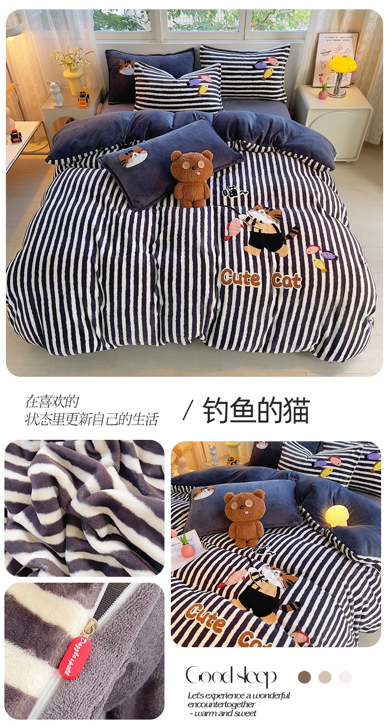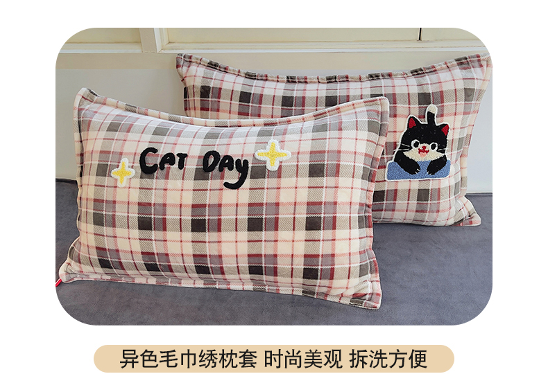 炫拼家纺 2025新款高克重牛奶绒毛巾绣卡通四件套-可孚系列 可孚-咖啡猫
