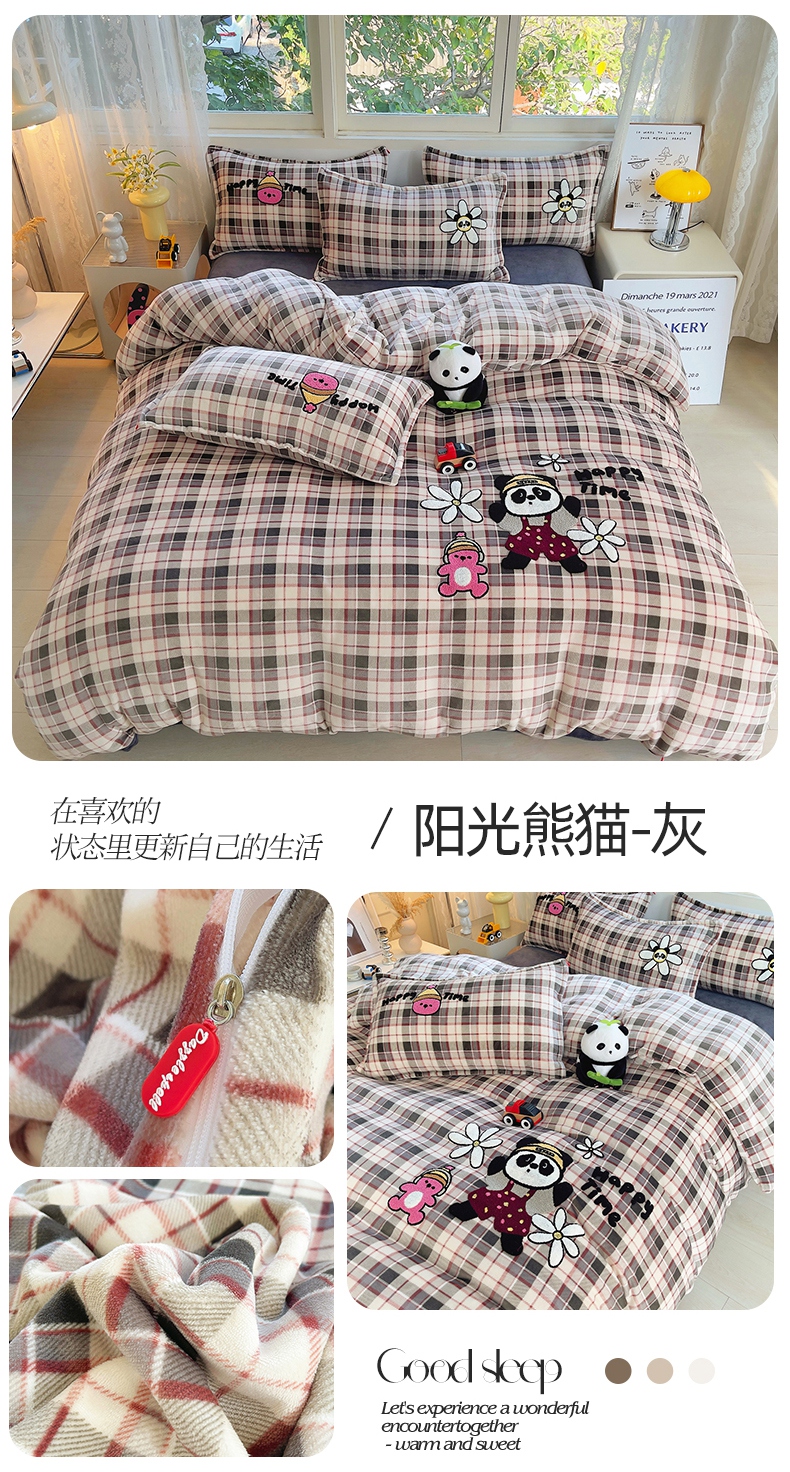 (总)炫拼家纺 2025新款高克重牛奶绒毛巾绣卡通四件套-可孚系列,可孚-阳光熊猫-灰,可孚-钓鱼的猫,可孚-咖啡猫,可孚-美式熊,可孚-狮王辛巴,可孚-条纹狗,可孚-阳光熊猫-红