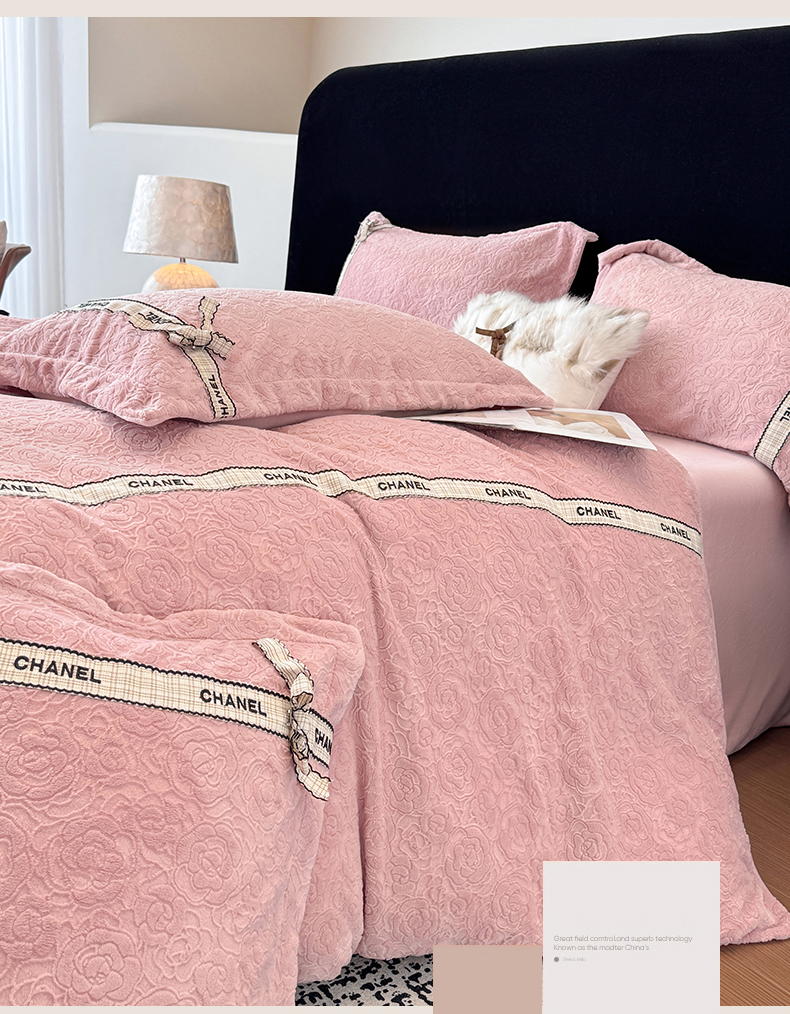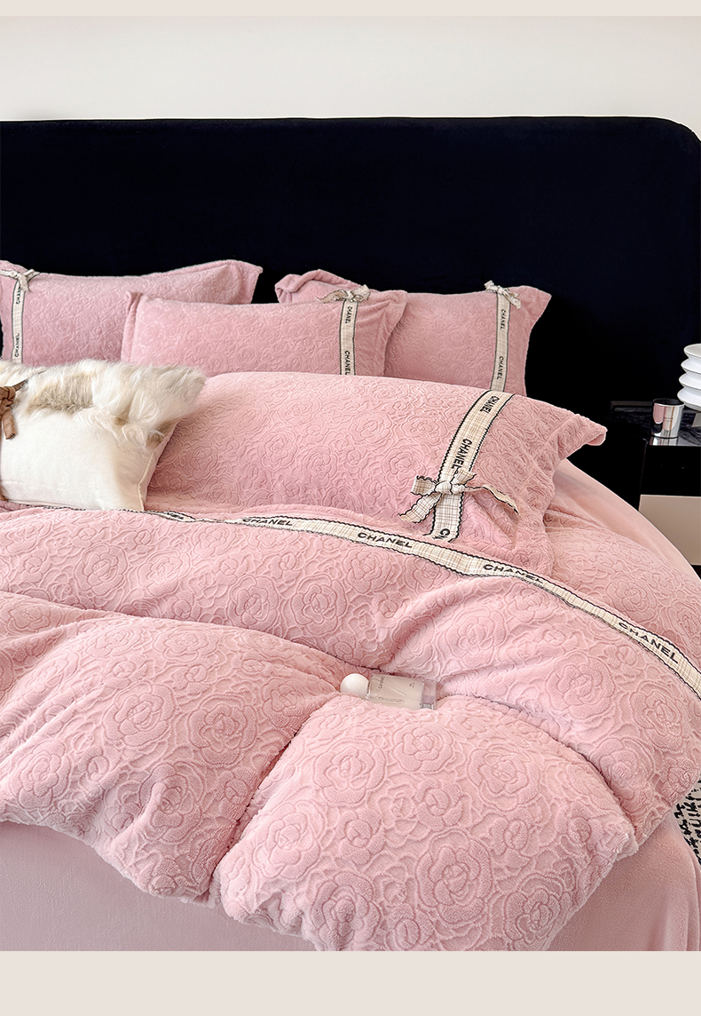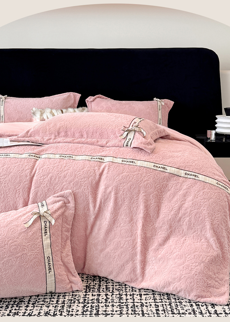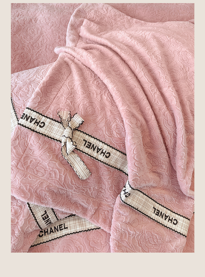商品名称:金喜 2025新款230克全消光雕花绒四件套牛奶绒四件套-山茶花影 山茶花影-珊瑚粉
