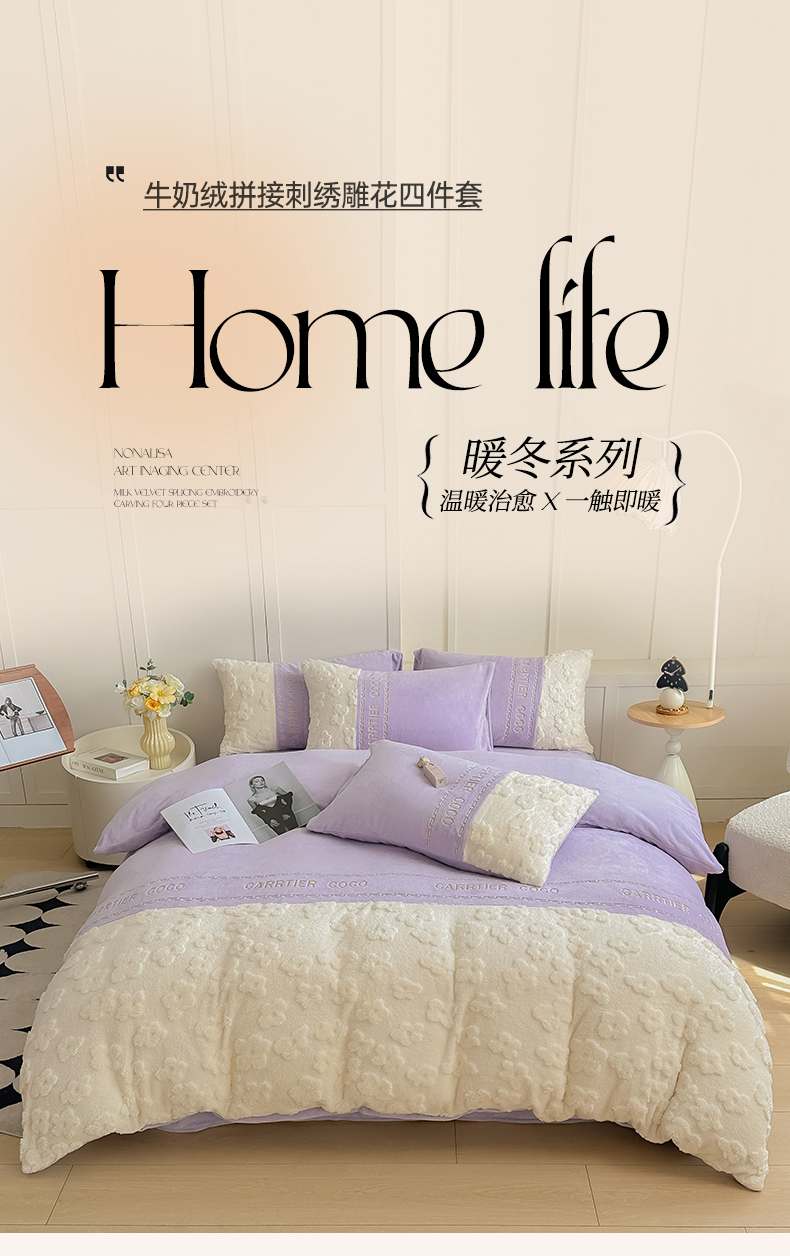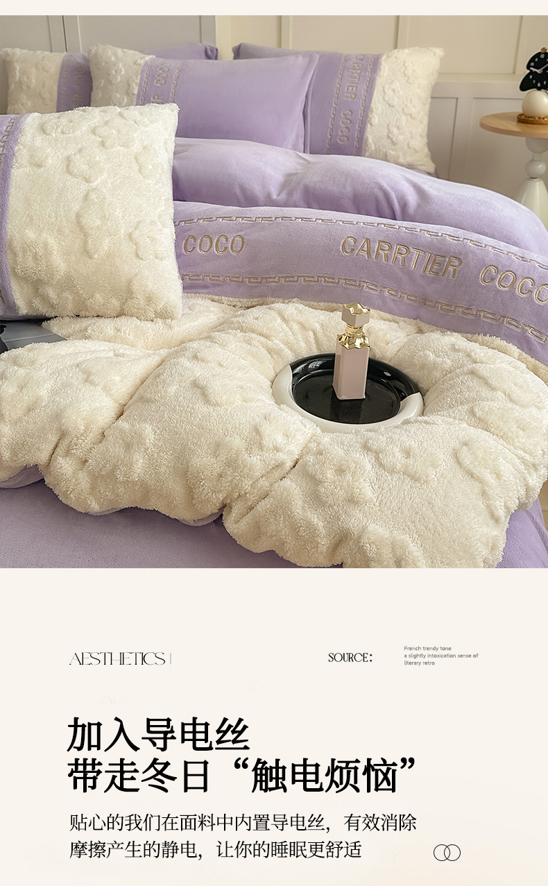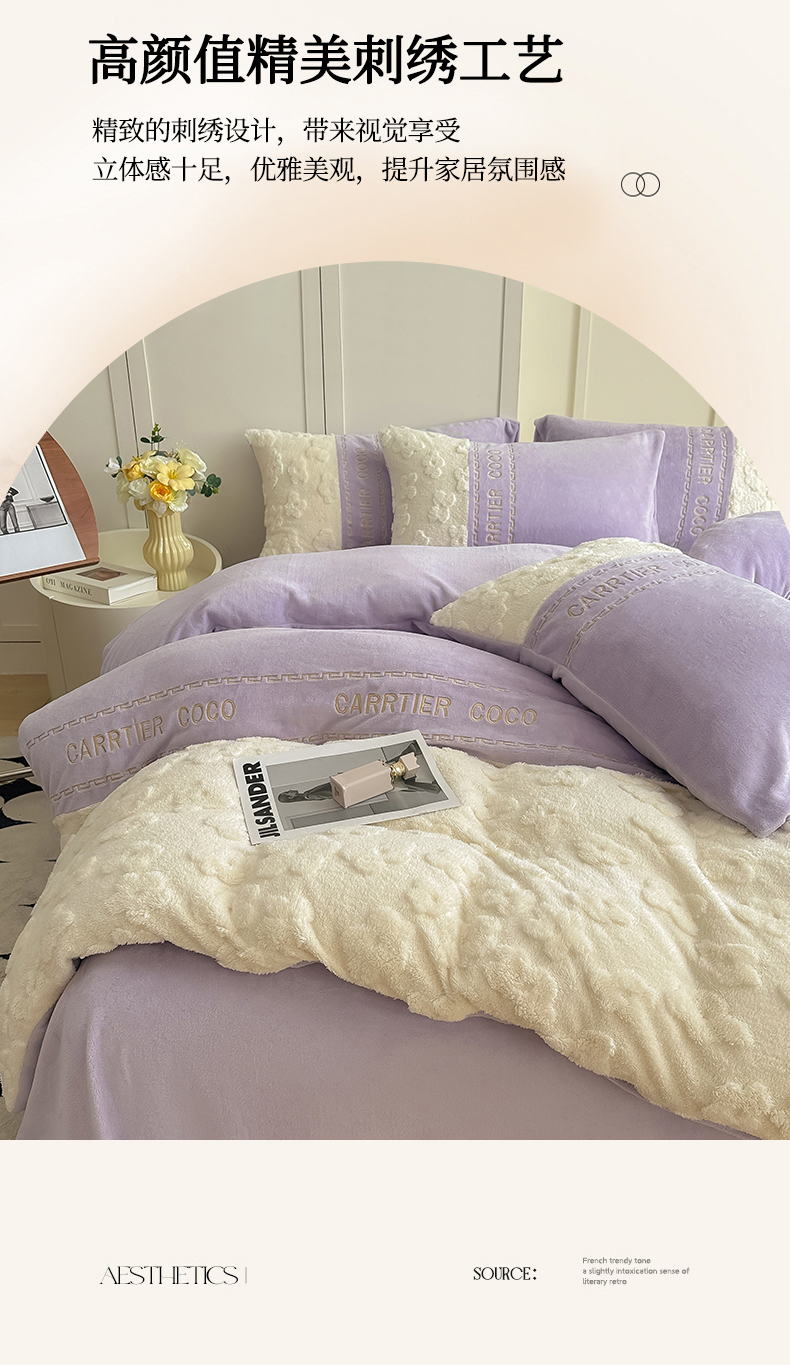 当前位置: 91家纺网 > 商品网购 > 床品套件 > 四件套 > 牛奶绒四件套 > 灰鲸 2025新款牛奶绒拼接刺绣四件套-安娜 安娜-露娜紫