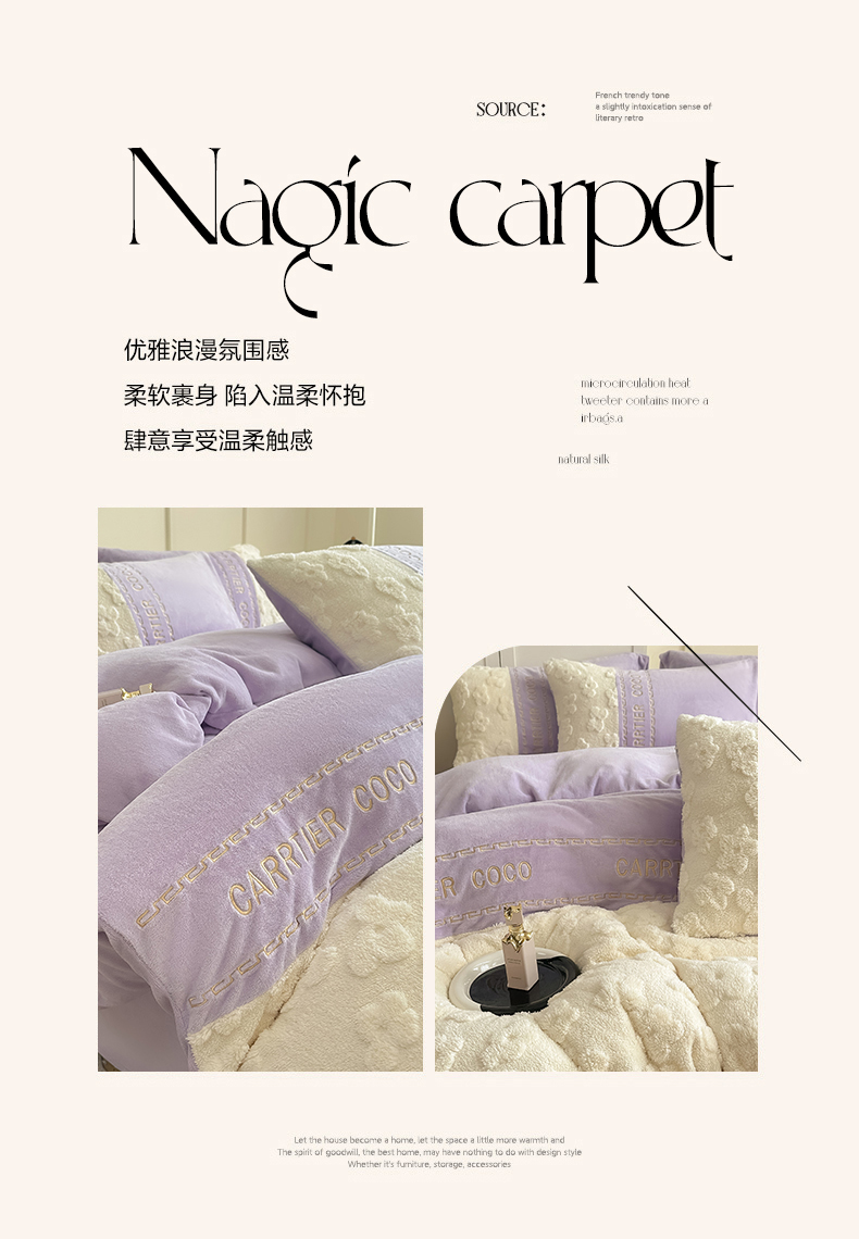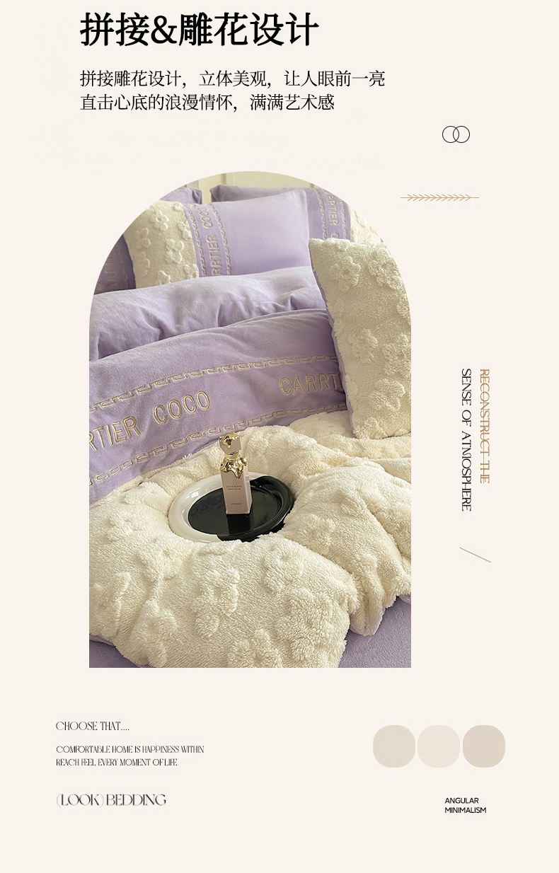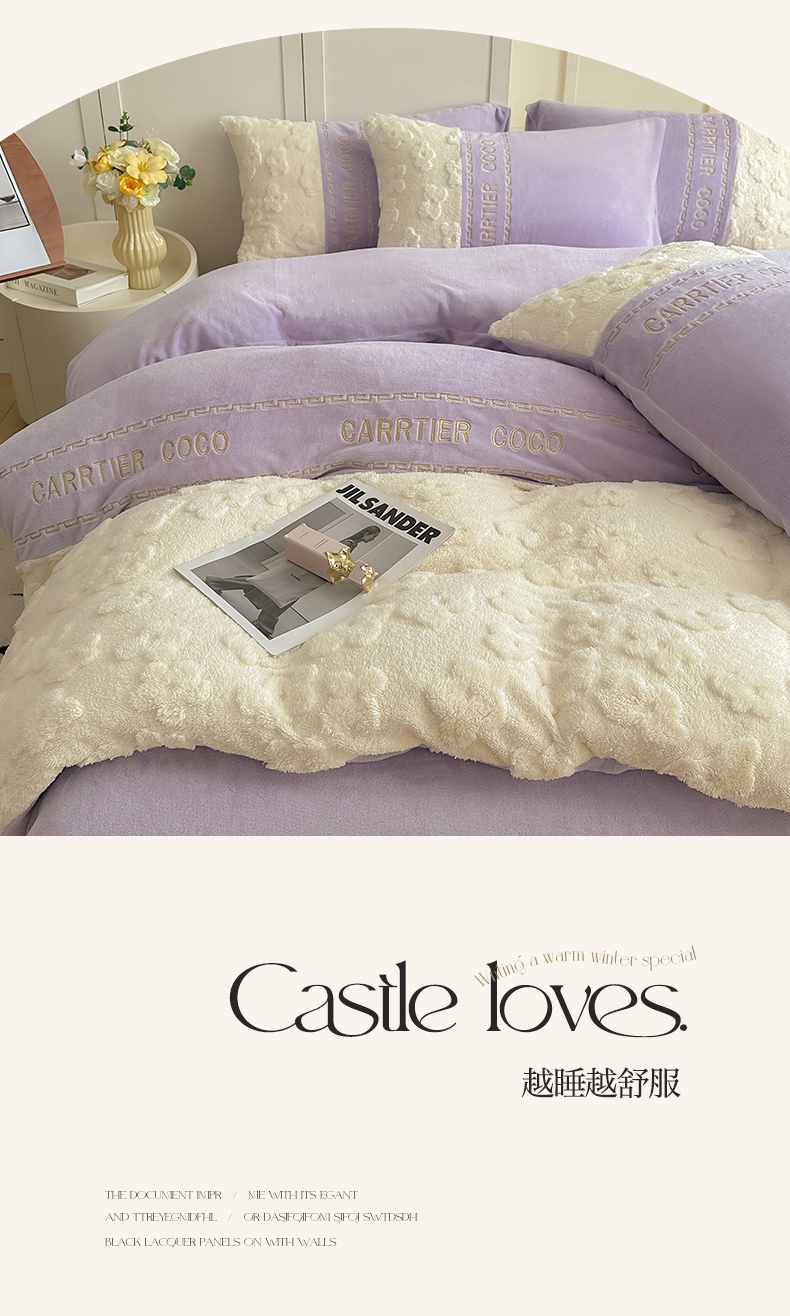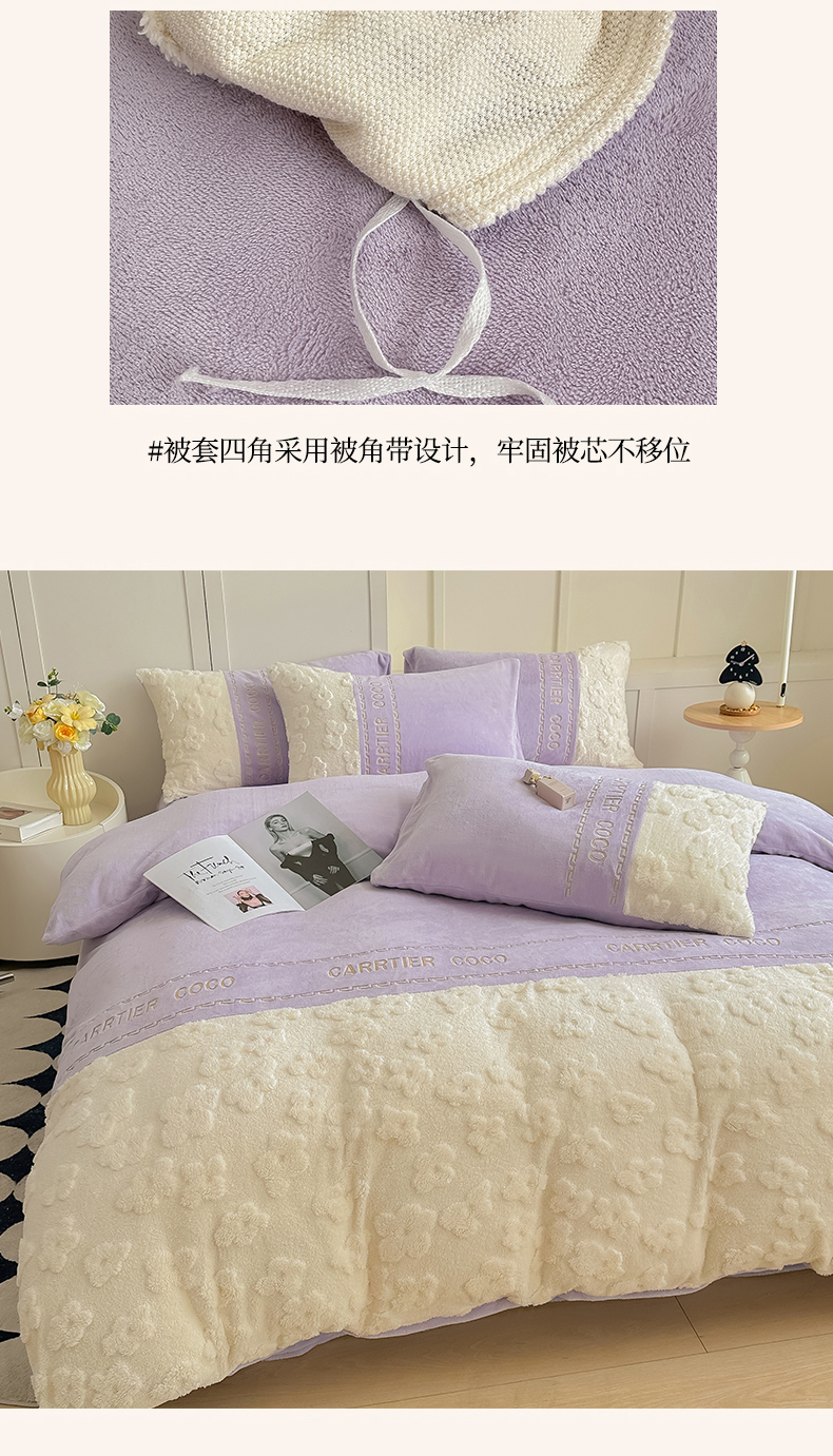 当前位置: 91家纺网 > 商品网购 > 床品套件 > 四件套 > 牛奶绒四件套 > 灰鲸 2025新款牛奶绒拼接刺绣四件套-安娜 安娜-露娜紫