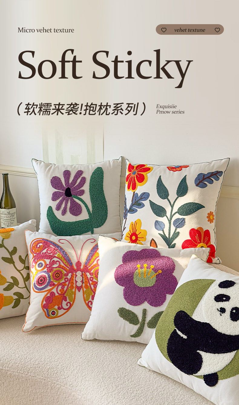 (总)诺可 2025新款全棉毛巾绣抱枕跨境花物语系列,组合,模特图,彩色石,蝶影,繁华拾光,粉蝴蝶,禾穗,花环,花卉-橙,花卉-粉,花雾,花盏,岚山,林礼,绿蝴蝶,蔓藤,木瑾花,南瓜,霓虹,柠檬叶,山奈,石榴蓝,石榴紫,树叶,禧朵,夏日铃兰,向阳花,星葵,叶坊,雨棠,枝瑾,紫蝴蝶,紫蕊,磨毛布单抱枕芯