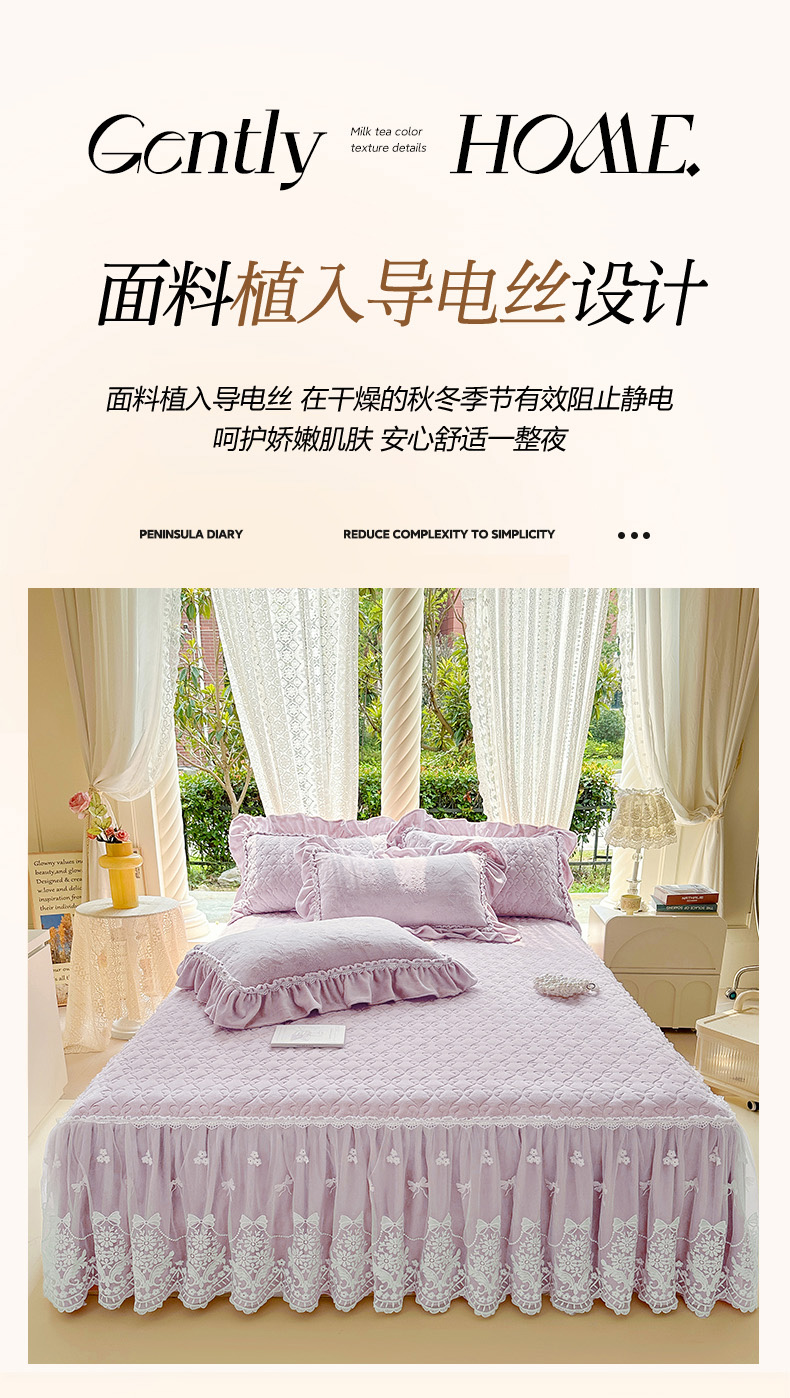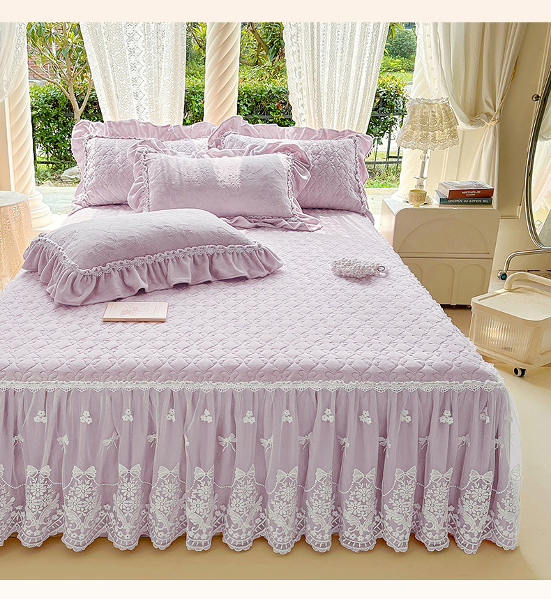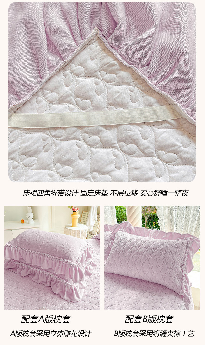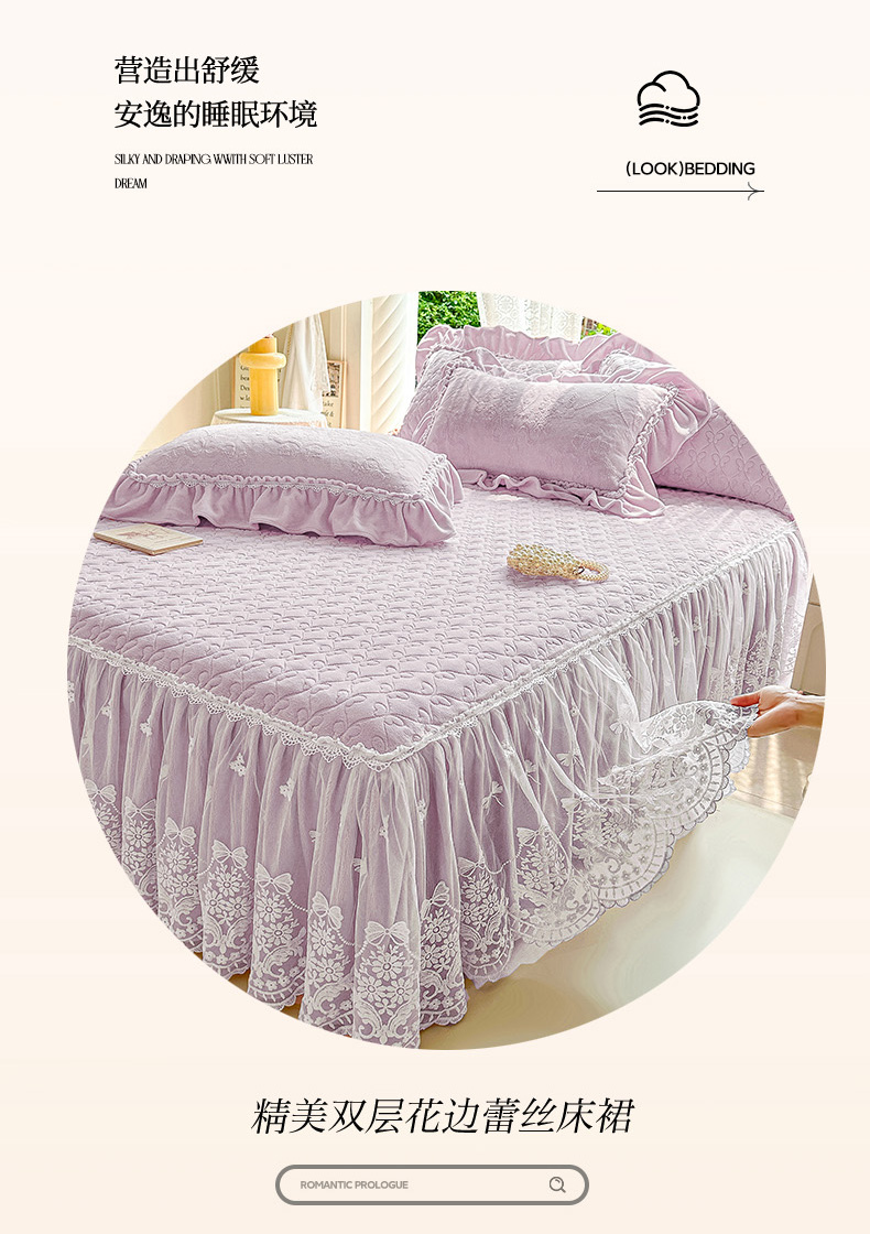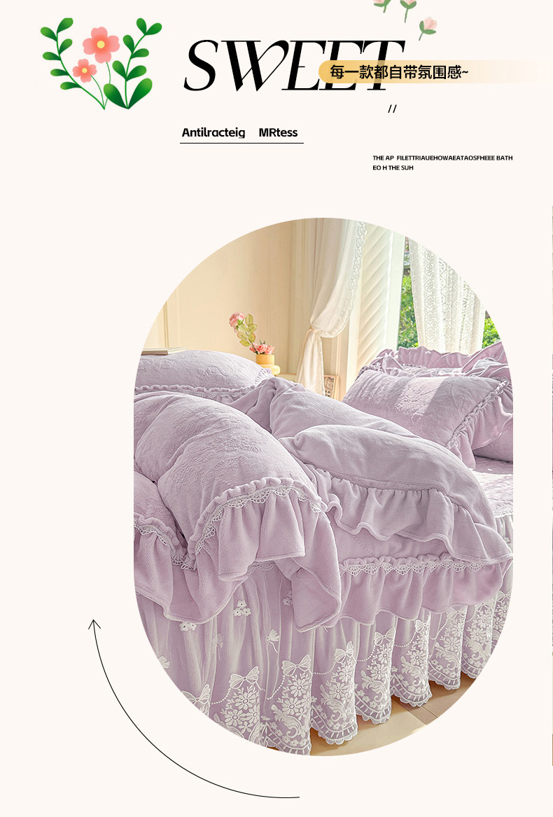 当前位置: 91家纺网 > 商品网购 > 床品套件 > 四件套 > 其它四件套 > 罗艺轩 【控价】2025新款立体雕花牛奶绒加厚保暖床裙款四件套-安琪儿 安琪儿-紫