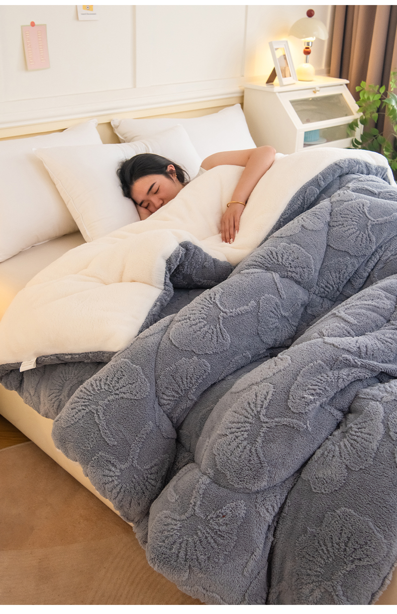 畅销被业 2025新款塔芙绒羊羔绒提花冬被子被芯-小银杏叶系列 小银杏叶-浅灰