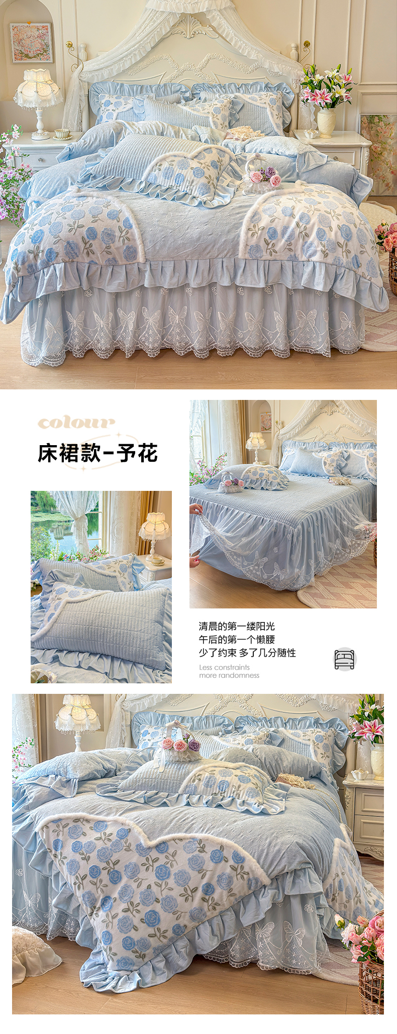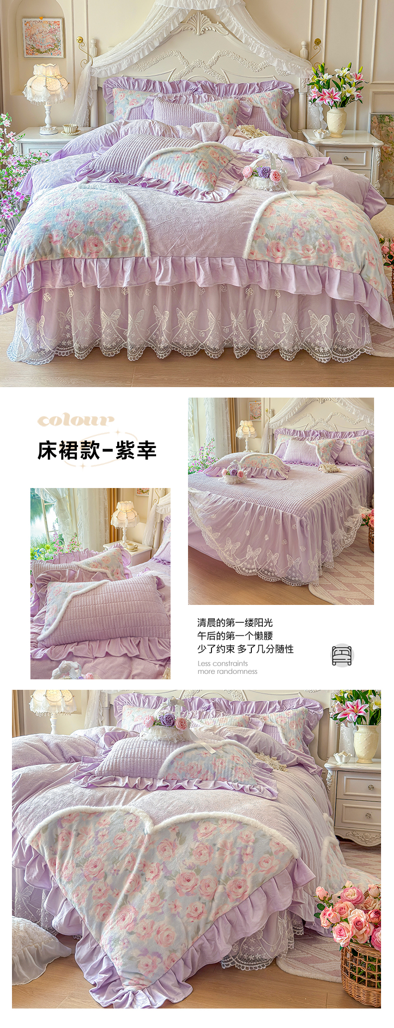 (总)宜凡家纺 2025新款兔绒提花牛奶绒夹棉床裙四件套,爱心 少女粉,爱心 粉紫,爱心 驼色,蝶舞 大红,蝶舞 米色,蝶舞 浅紫,蝶舞 玉色,简爱 苍青,简爱 豆沙紫,简爱 玉色,樱桃 苍青,樱桃 豆沙紫,樱桃 奶油白