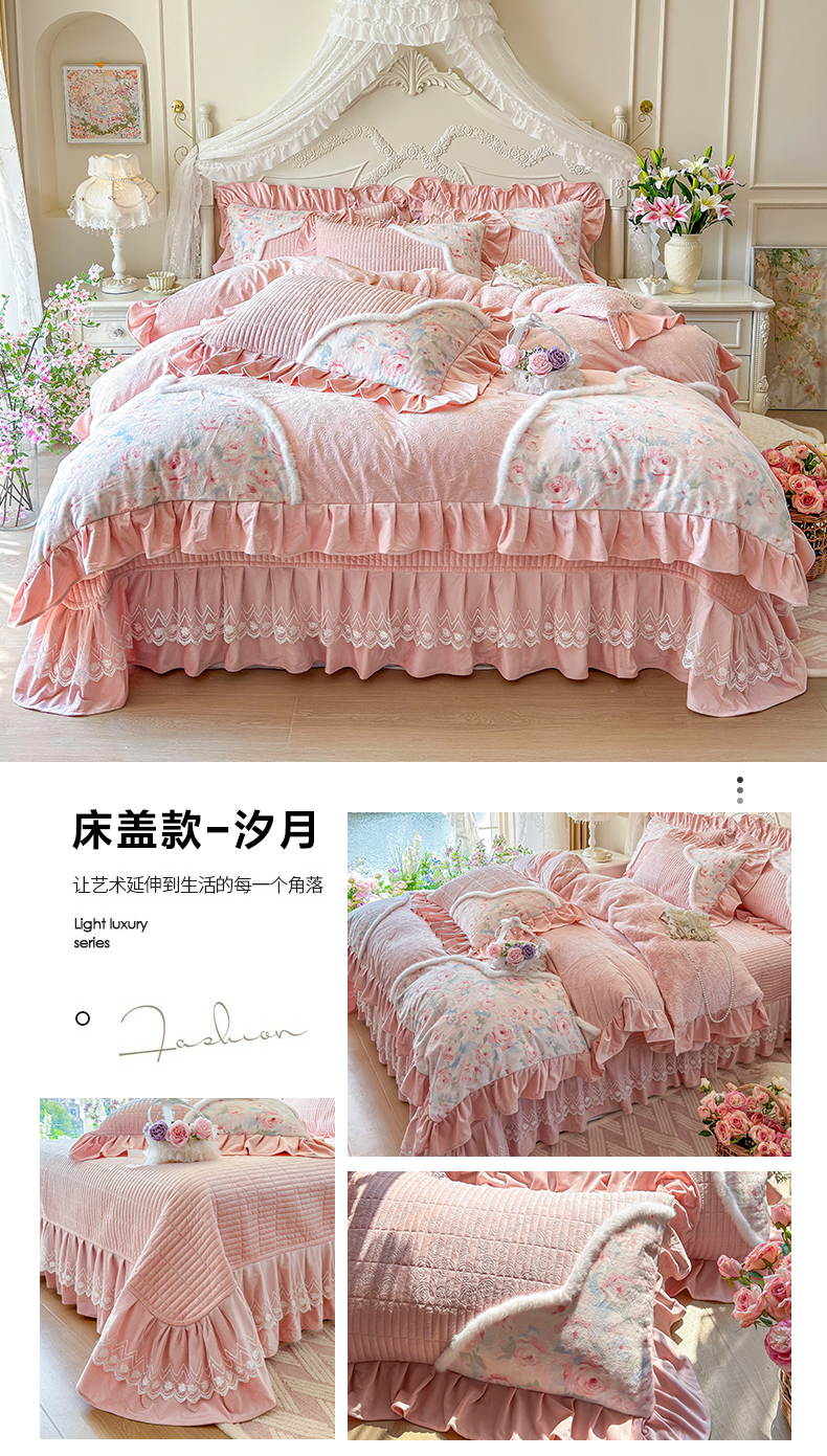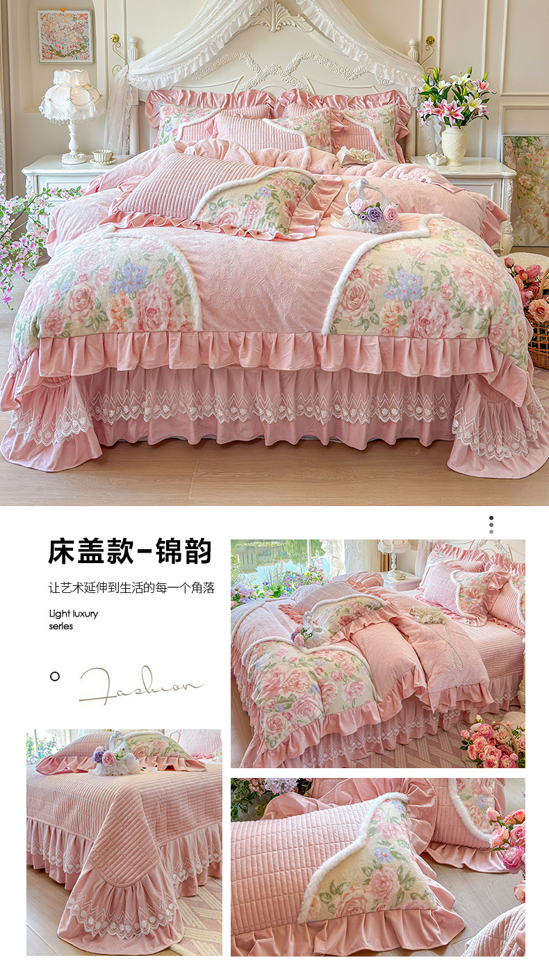 (总)宜凡家纺 2025新款兔绒提花牛奶绒夹棉床裙四件套,爱心 少女粉,爱心 粉紫,爱心 驼色,蝶舞 大红,蝶舞 米色,蝶舞 浅紫,蝶舞 玉色,简爱 苍青,简爱 豆沙紫,简爱 玉色,樱桃 苍青,樱桃 豆沙紫,樱桃 奶油白