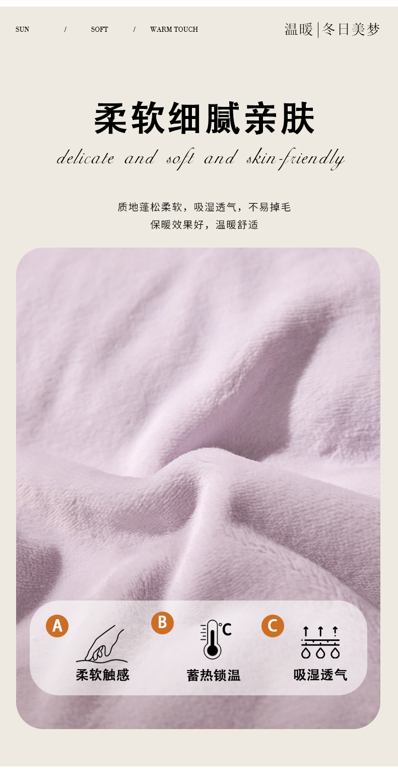 商品名称:618家纺 2025新款樱花绒单品四件套系列-单被套 雾紫
