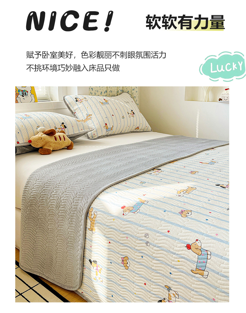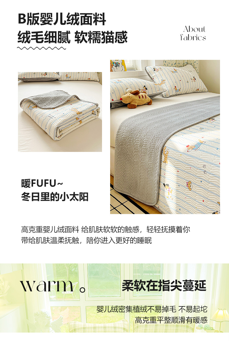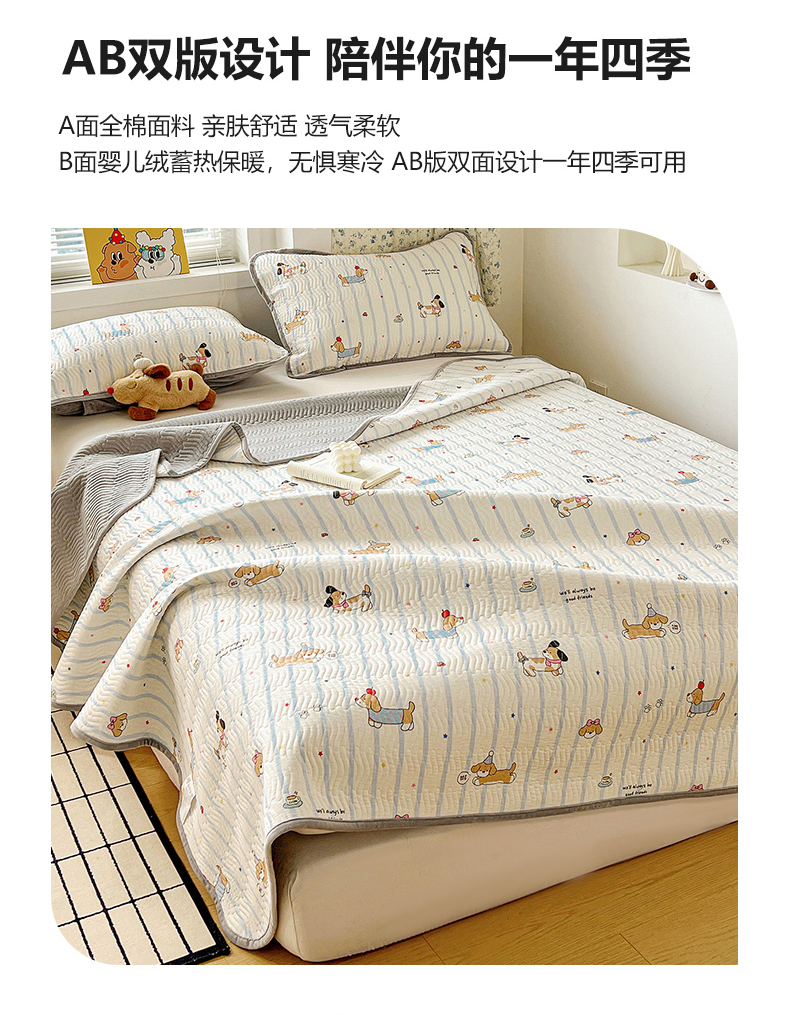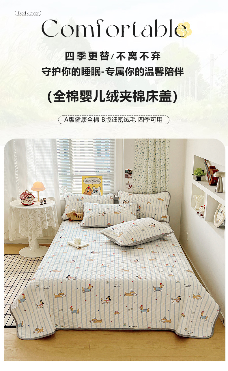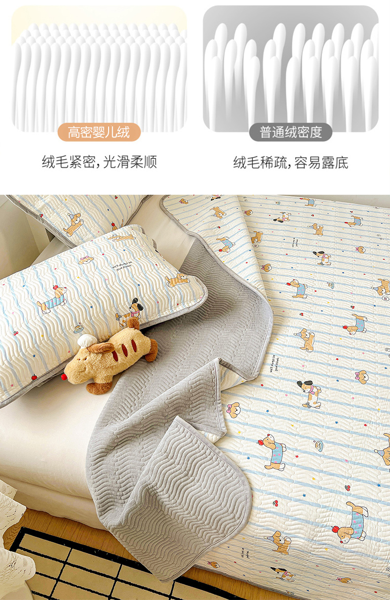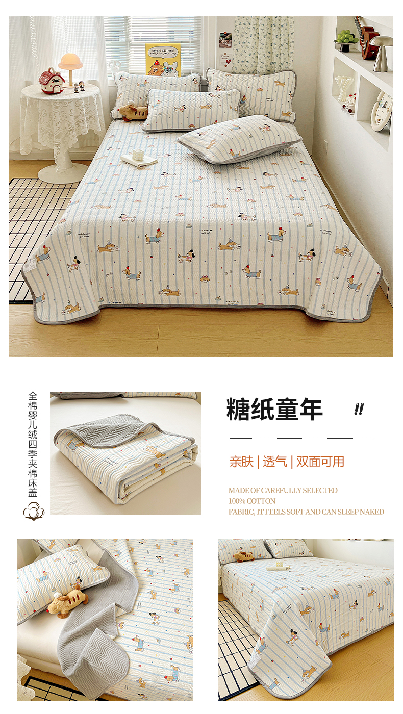 • 91家纺网 家纺一手货源 找家纺 梦精灵 2025新款棉加绒床盖全棉学生床夹棉床盖双面可用纯棉床单(棉加绒枕套) 棉加绒-糖纸童年