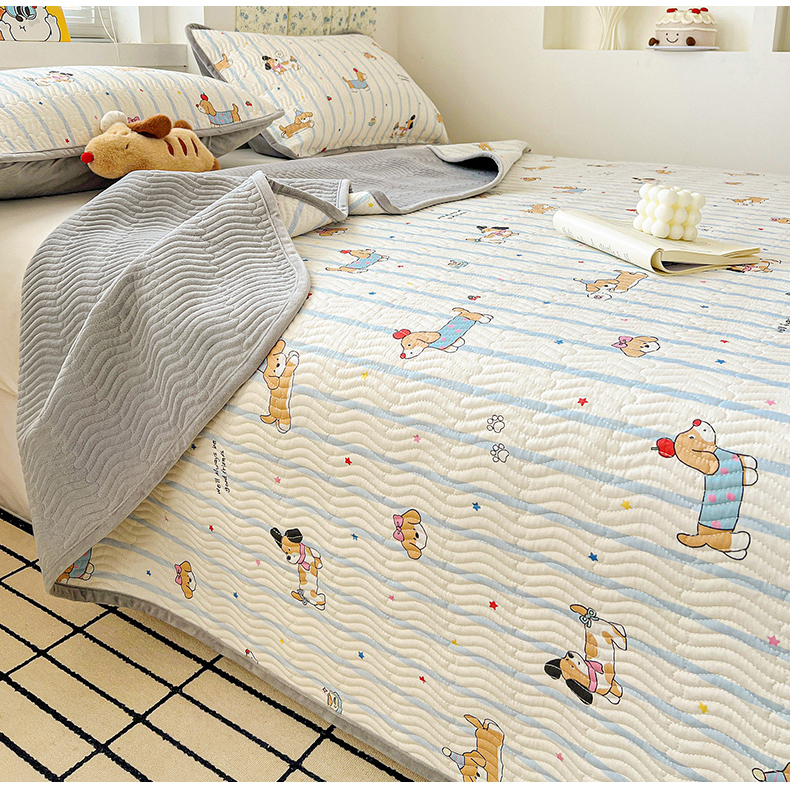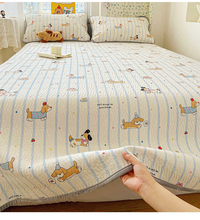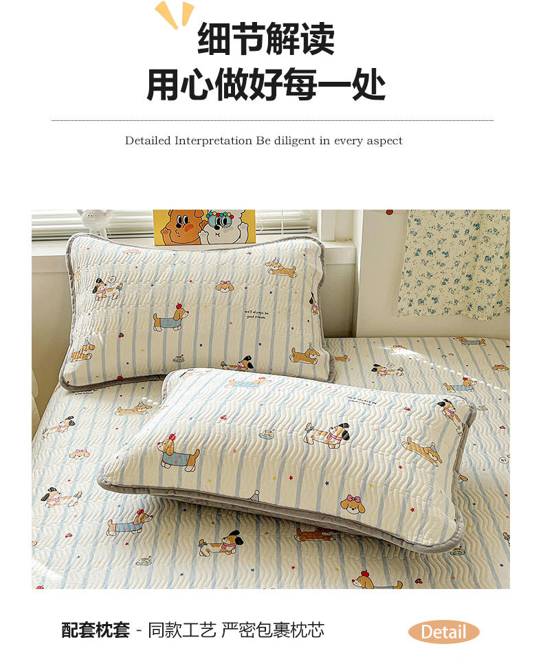 梦精灵 2025新款棉加绒床盖全棉学生床夹棉床盖双面可用纯棉床单(棉加绒枕套) 棉加绒-糖纸童年