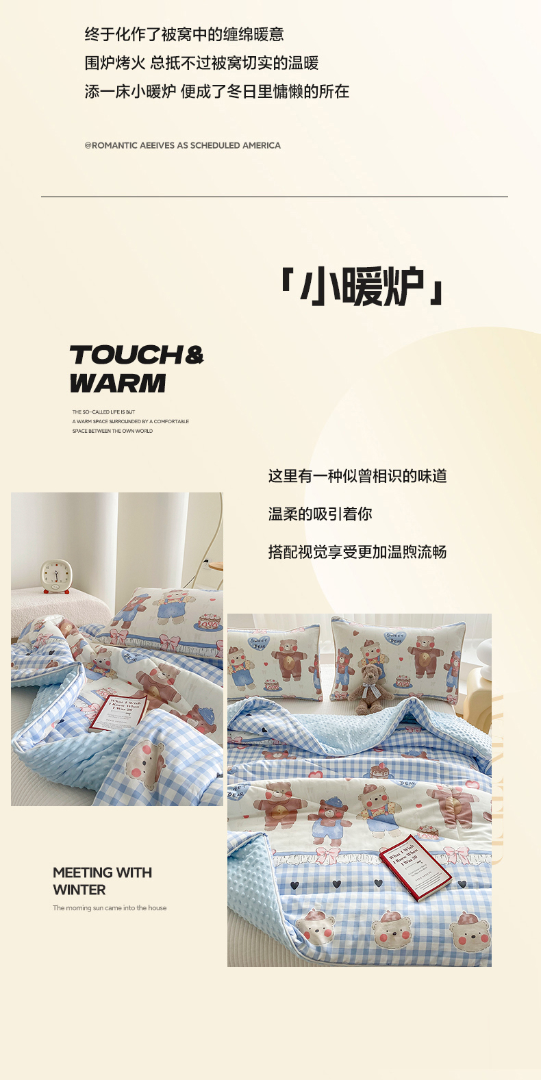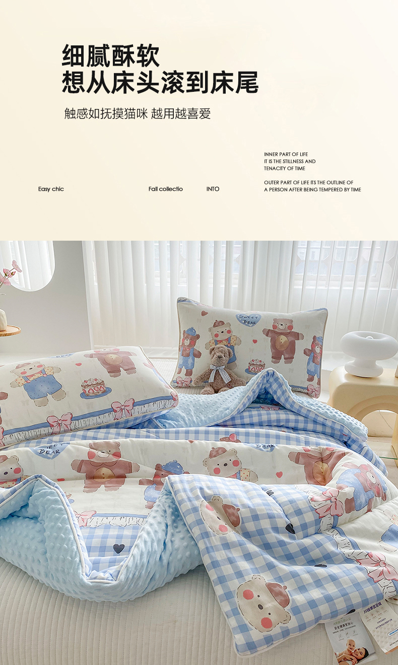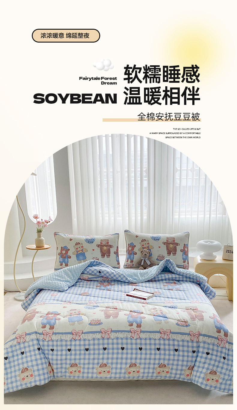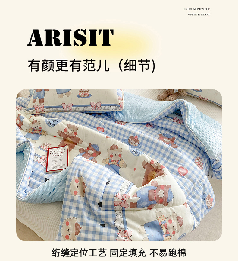 商品名称:青螺家纺 2025新款高密全棉嵌绳宝宝绒春秋豆豆被 支持定制花色和冬被 有量来门市优惠 洛丽塔 爱心熊熊