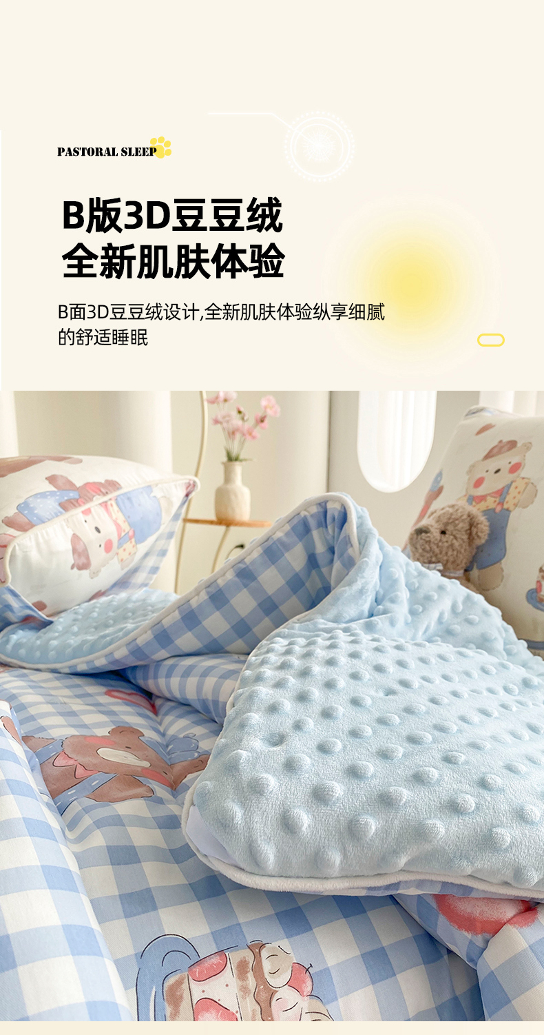 (总)青螺家纺 2025高密全棉嵌绳宝宝绒豆豆被春秋被冬被 一圈踩棉 四角不跑棉 直播,爱丽丝兔,超熊仔,花玉兔,洛丽塔 爱心熊熊,洛丽塔 开心派对,洛丽塔 甜蜜熊,绅士小熊,小樱桃,郁金香