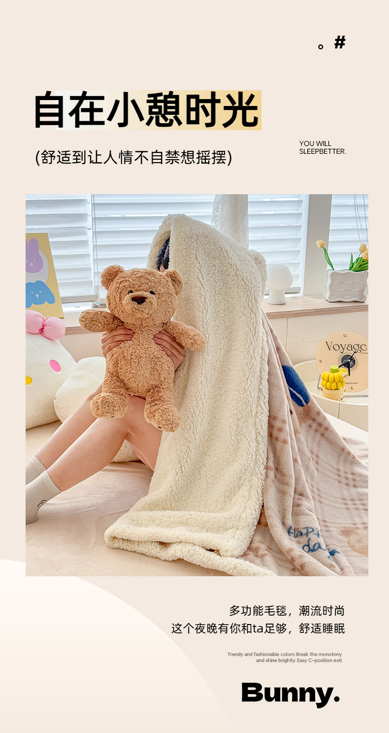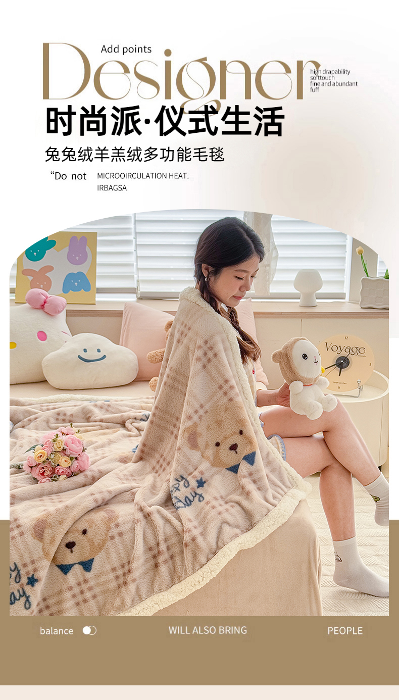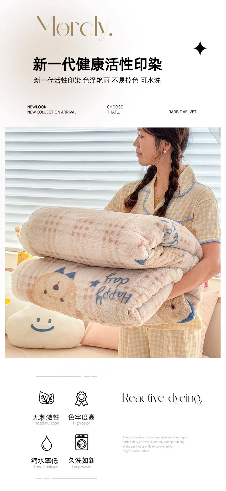 商品名称:KA家纺 2025新款兔毛绒毛毯 印花牛奶绒盖毯 多功能被套毯 兔绒毯 可爱熊宝