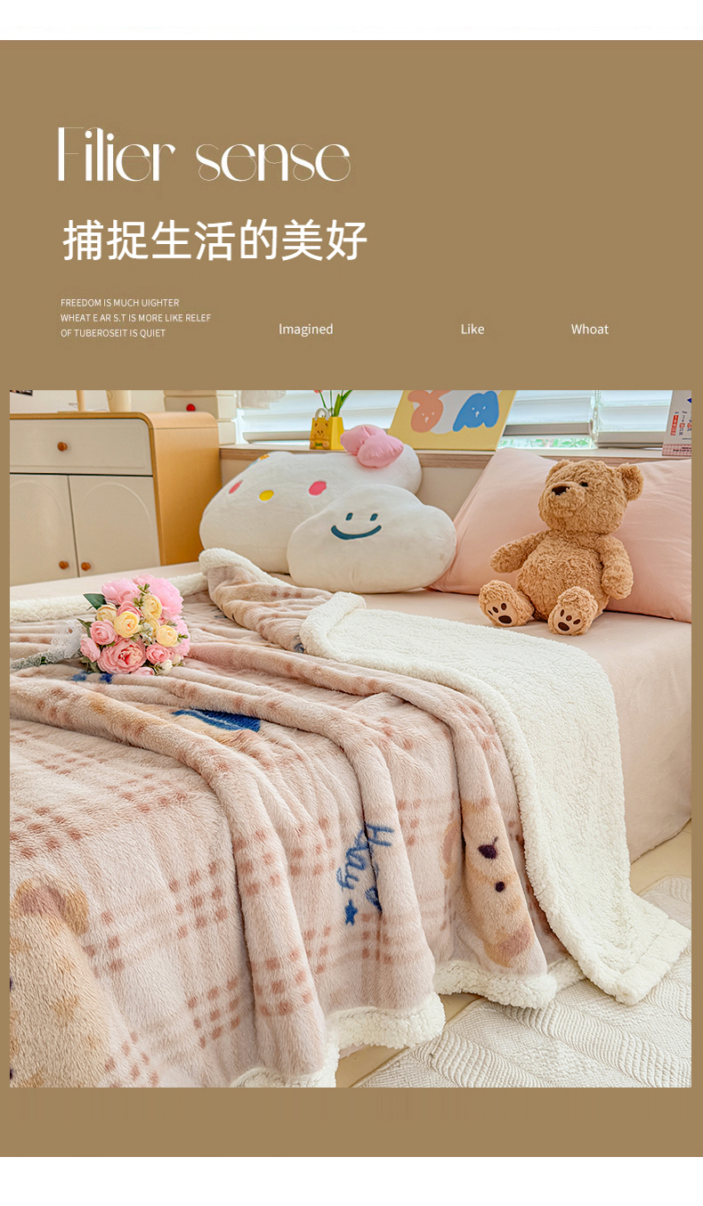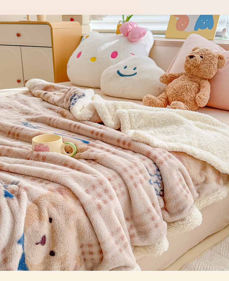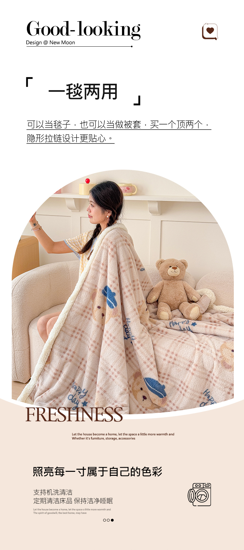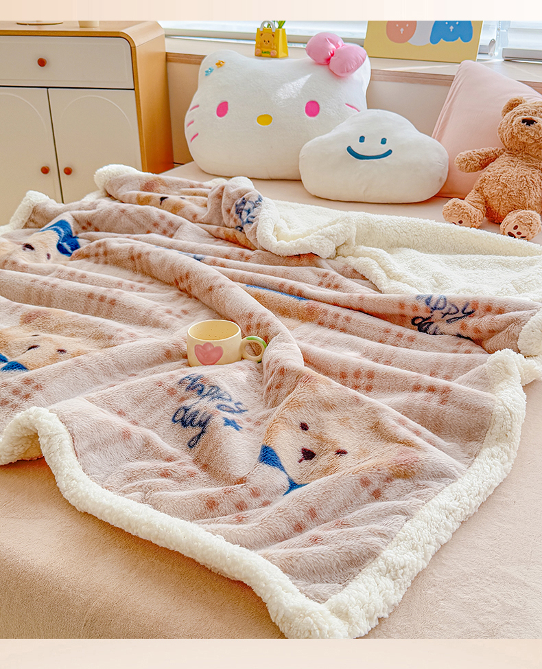 商品名称:KA家纺 2025新款兔毛绒毛毯 印花牛奶绒盖毯 多功能被套毯 兔绒毯 可爱熊宝