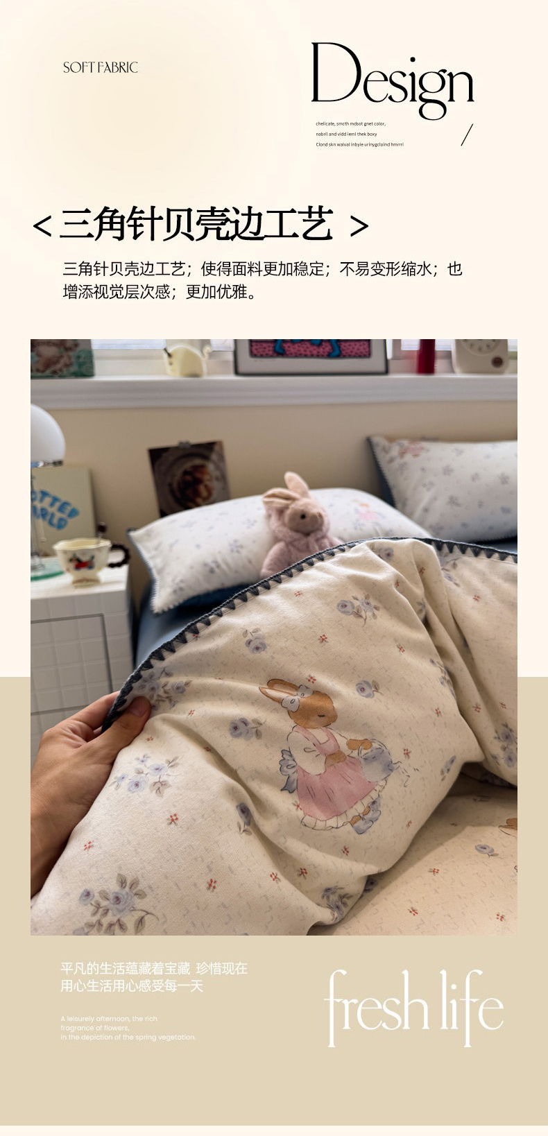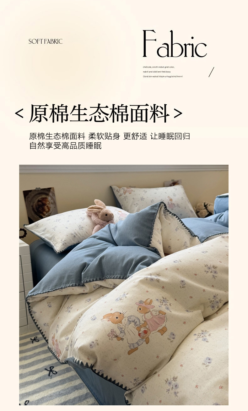 当前位置: 91家纺网 > 商品网购 > 床品套件 > 四件套 > 普通磨毛四件套 > 慕尚家纺 2025新款磨毛三角针套件四件套 磨毛三角针-兔妈与兔宝