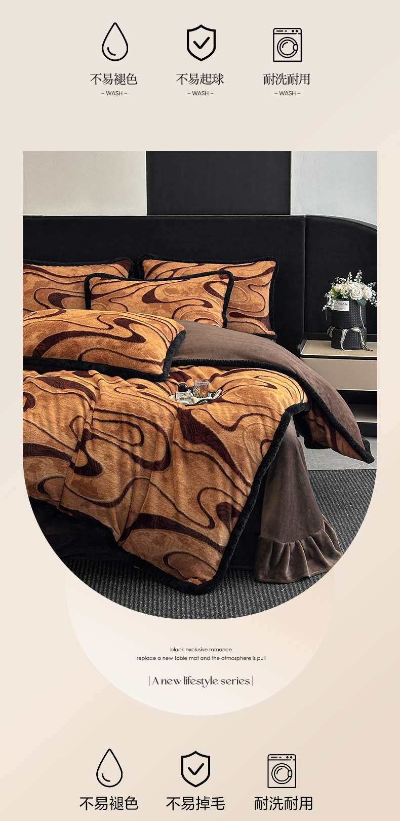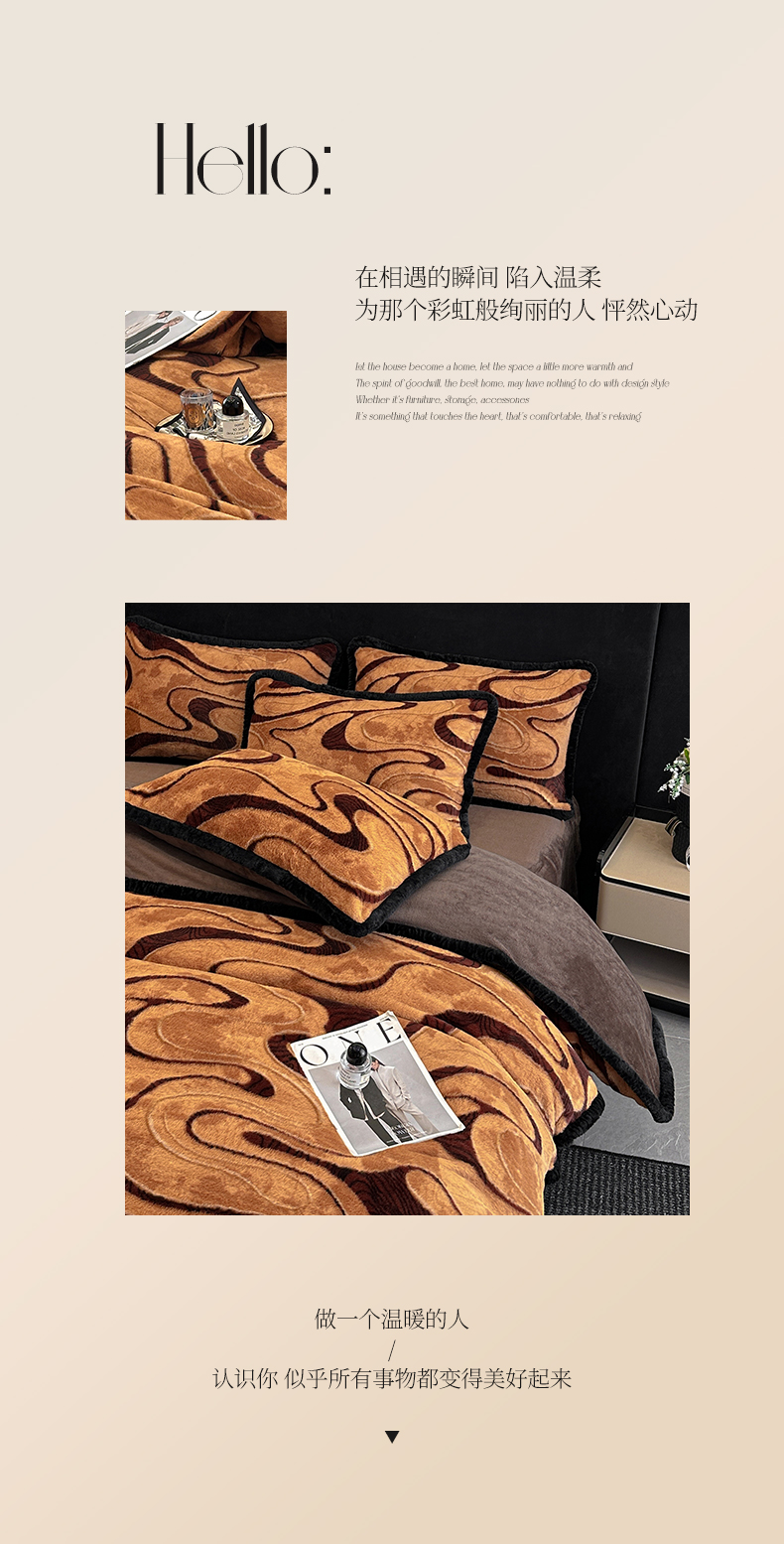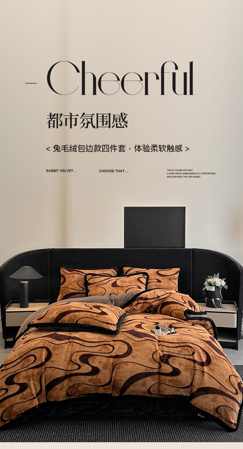 商品名称:民新家纺 2025新款兔毛绒包边款四件套 极简生活