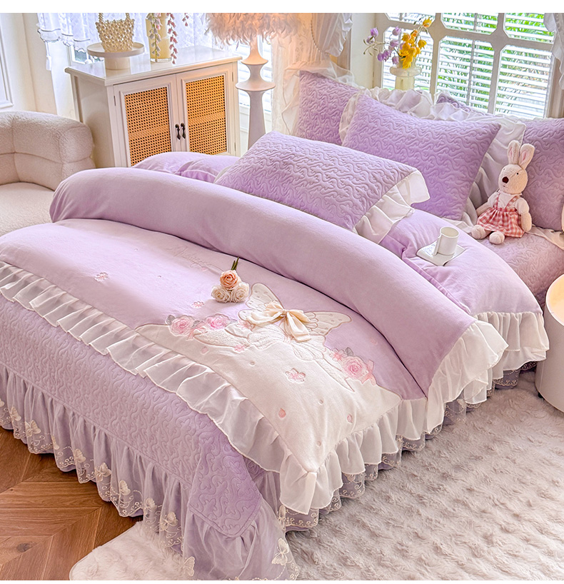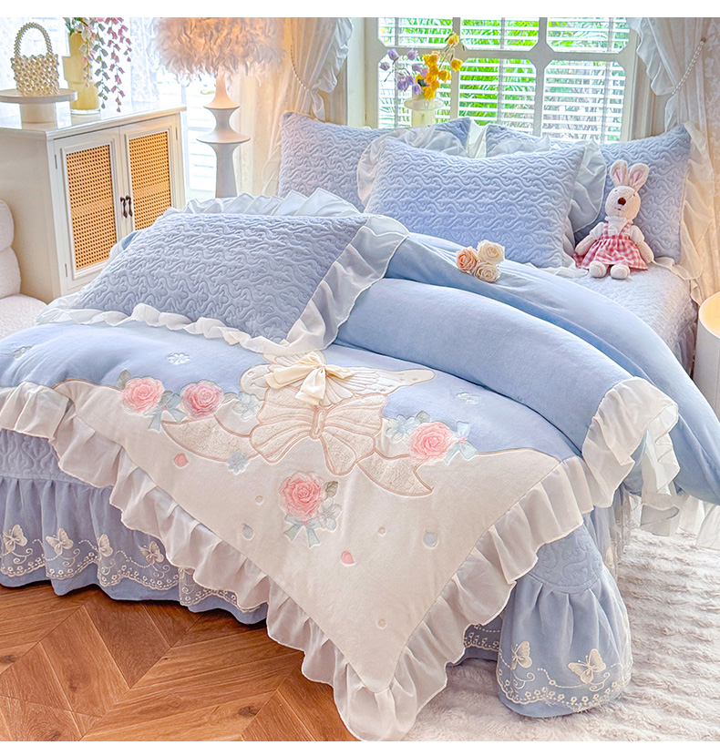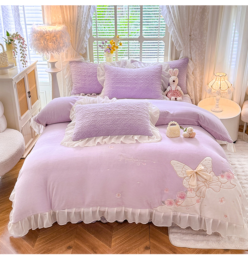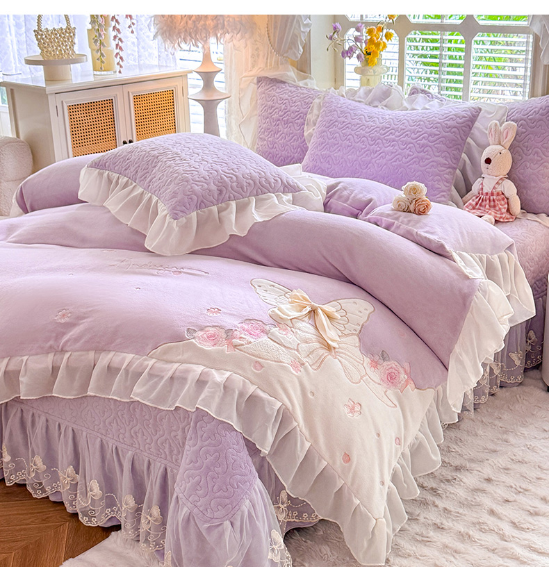 (总)绒棉世家 2025秋冬新款A类加厚牛奶绒花边床盖款床裙四件套-浪漫蝴蝶结,浪漫蝴蝶结-蓝,浪漫蝴蝶结-粉,浪漫蝴蝶结-紫