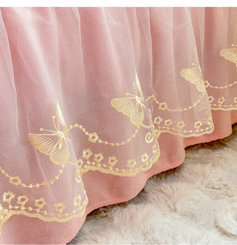 绒棉世家 2025秋冬新款A类加厚牛奶绒花边床盖款床裙四件套-浪漫蝴蝶结 浪漫蝴蝶结-粉