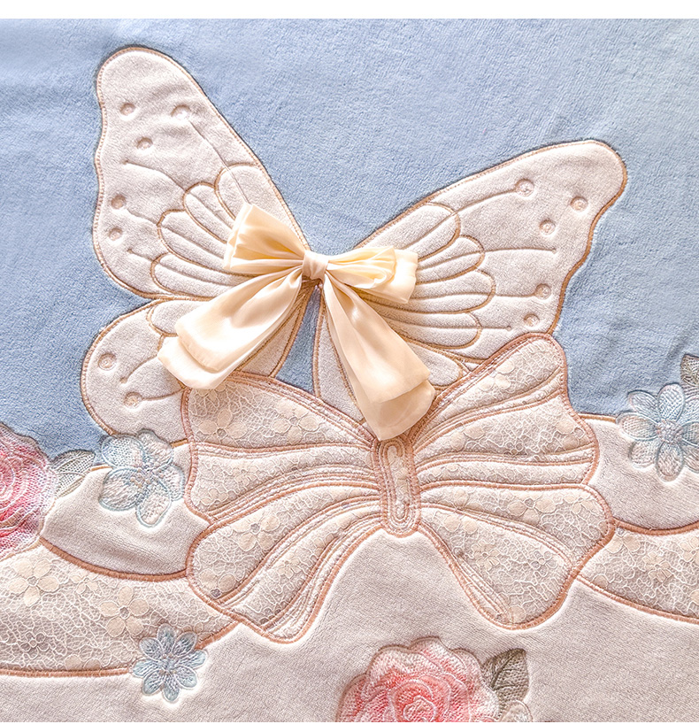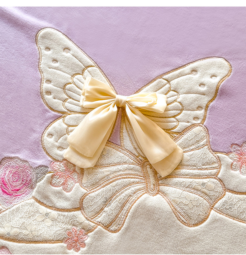 (总)绒棉世家 2025新款独家设计师款牛奶绒贴布绣四件套-甜心蝴蝶结(控价188),蝴蝶结-浅玉