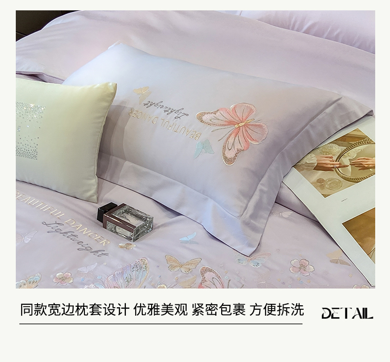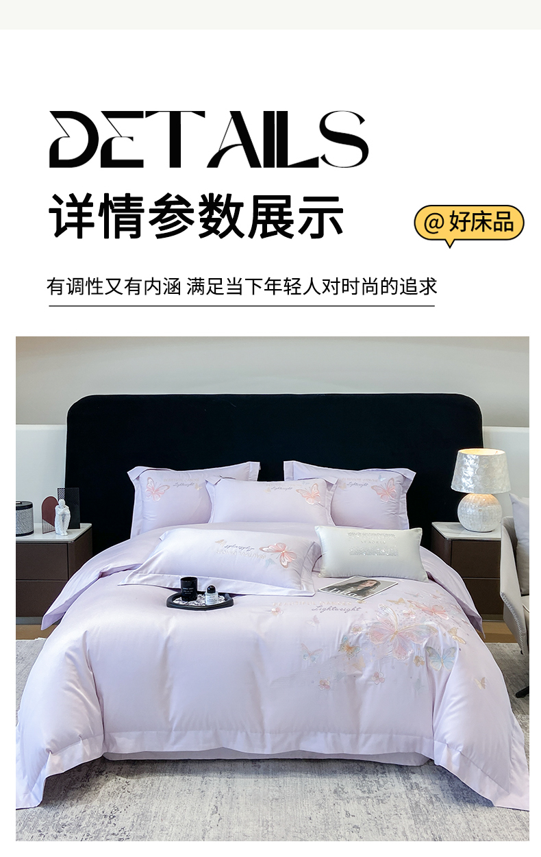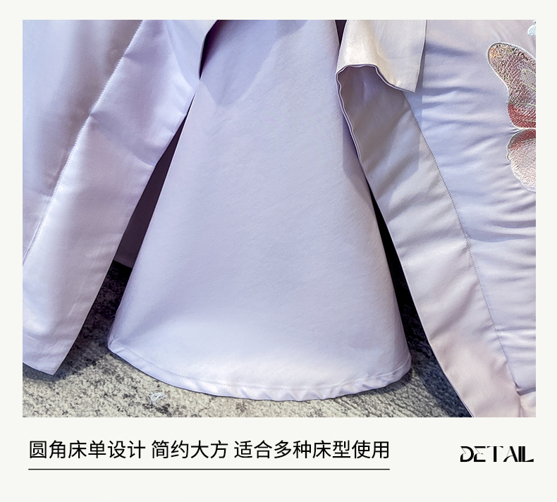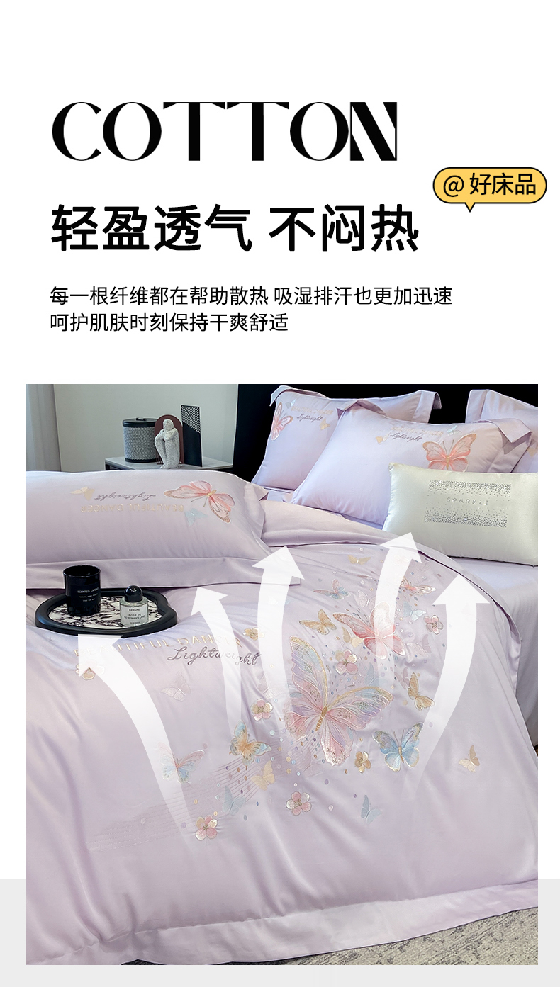 商品名称:丞音家纺 2025新款母婴级A类双面全棉蝴蝶刺绣纯棉长绒棉绣花四件套床单被套 思微-梦幻紫