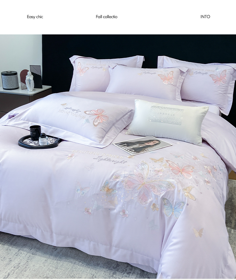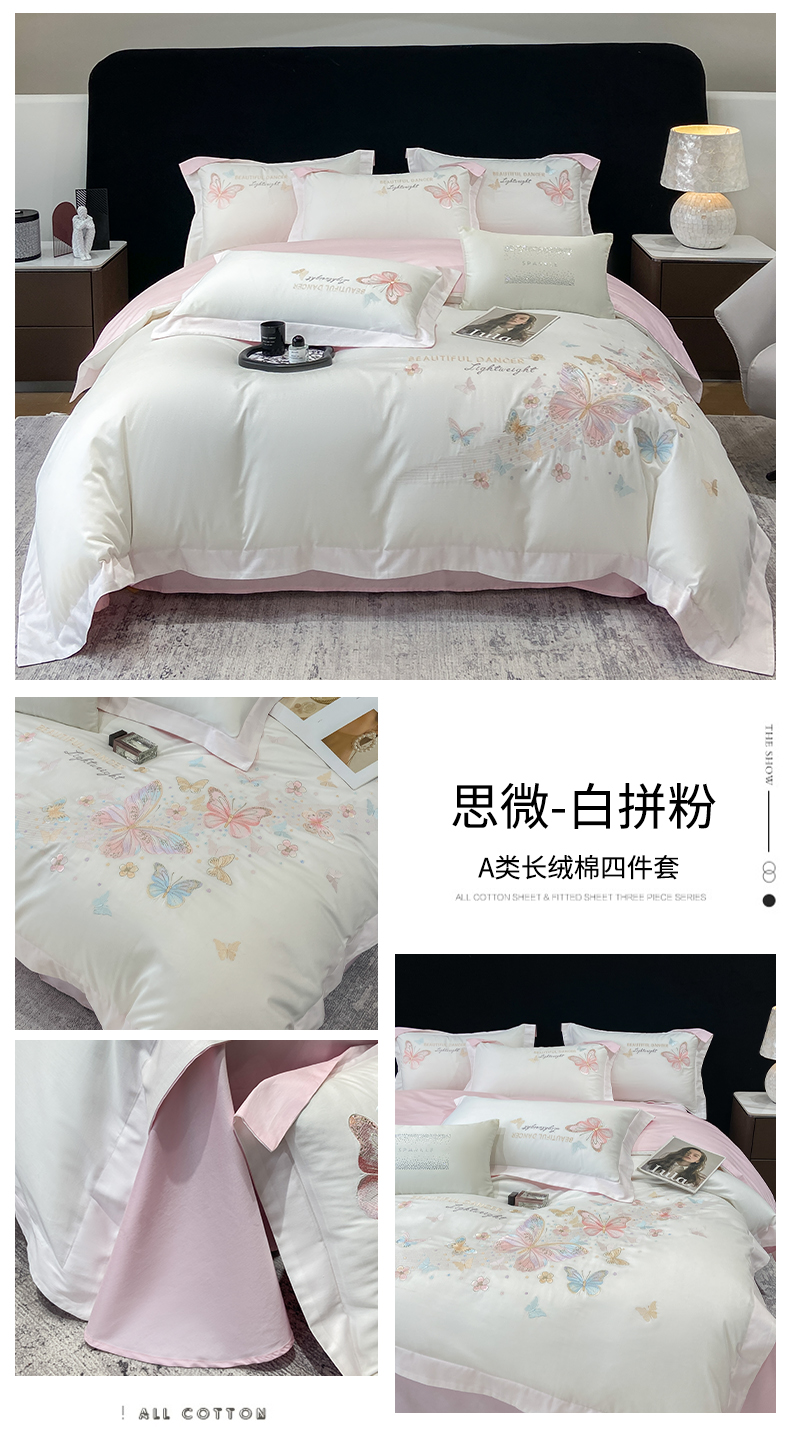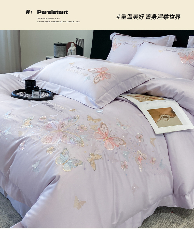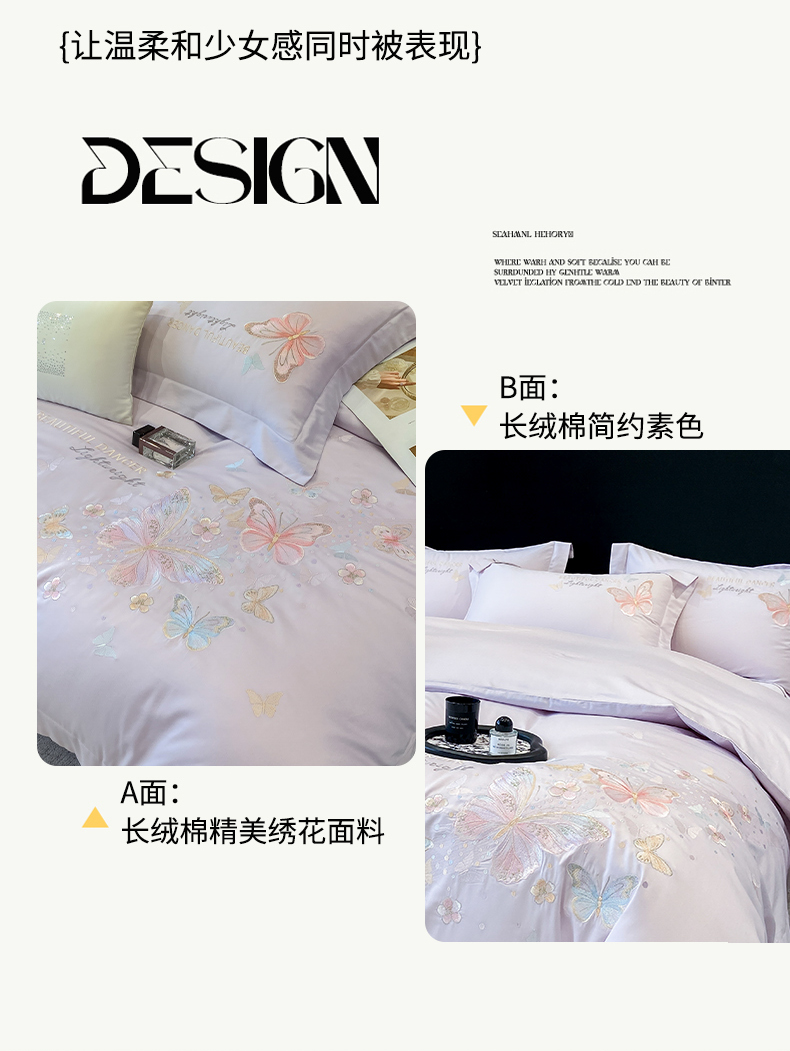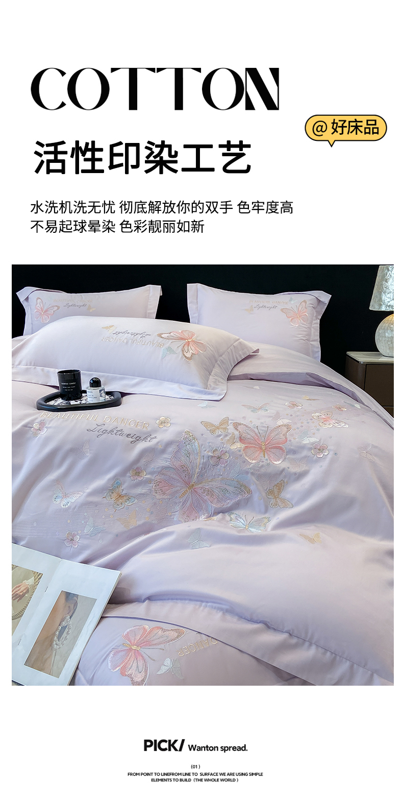 丞音家纺 2025新款母婴级A类双面全棉蝴蝶刺绣纯棉长绒棉绣花四件套床单被套 思微-梦幻紫