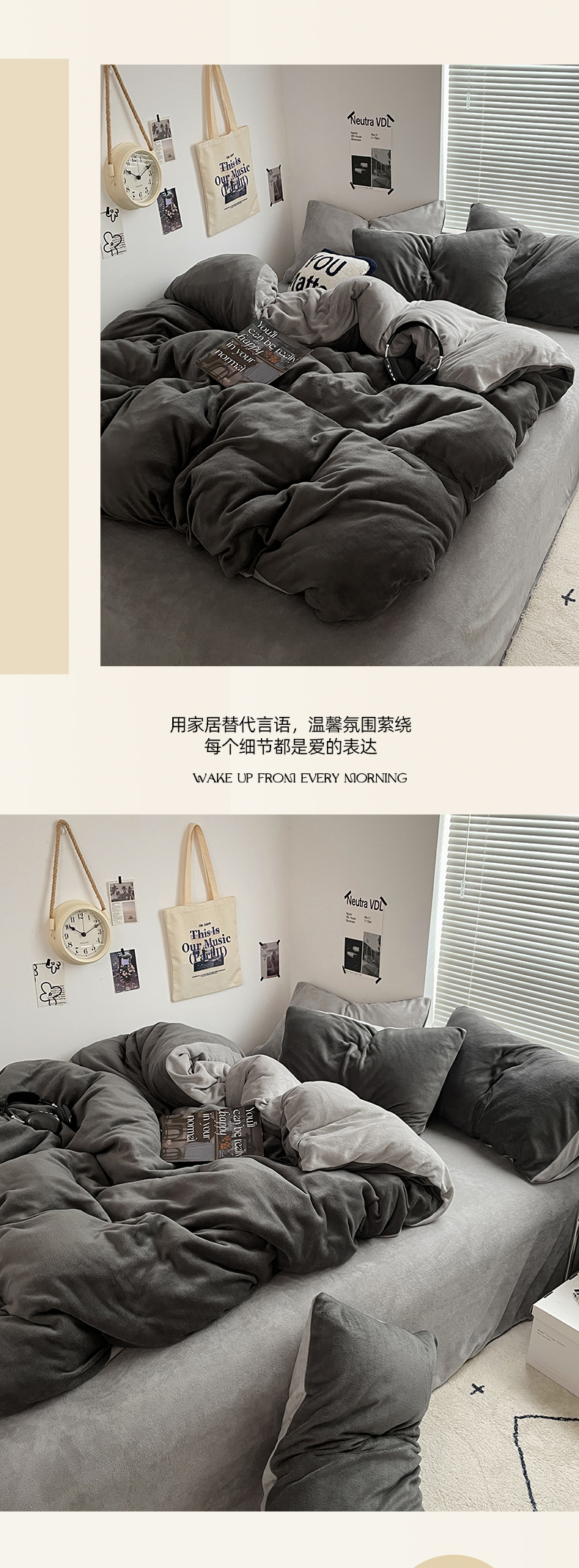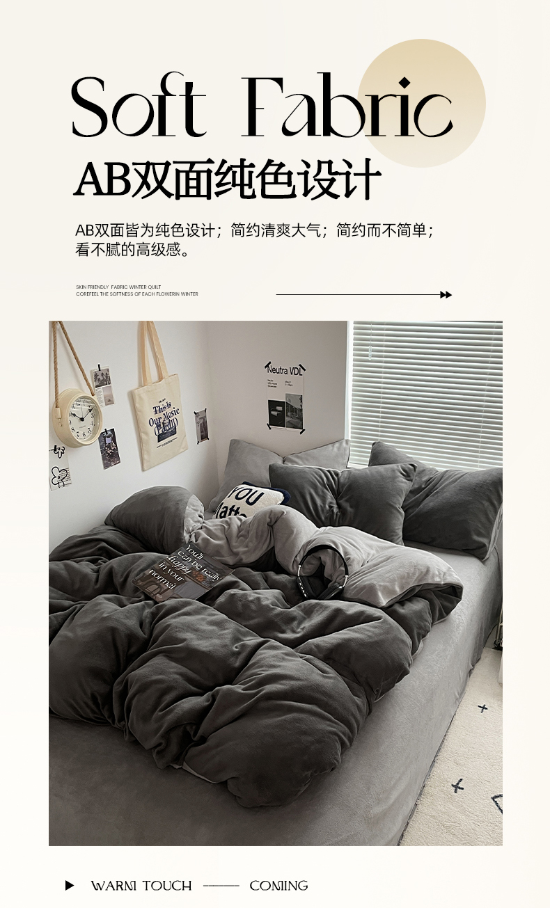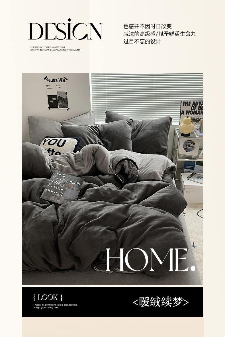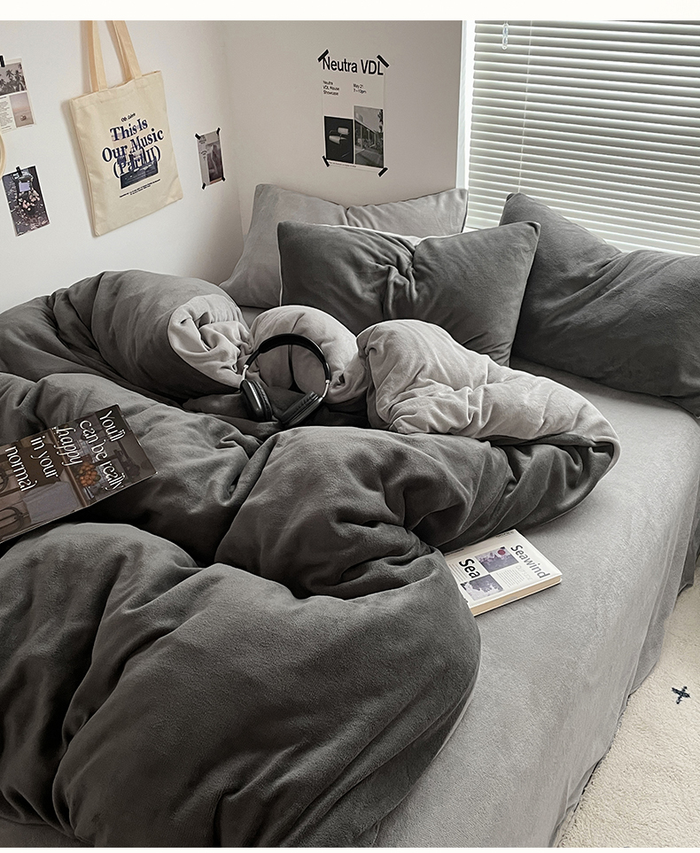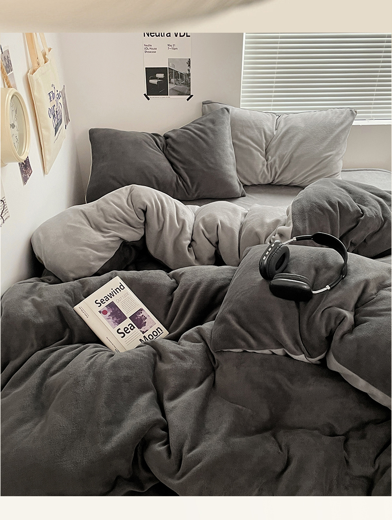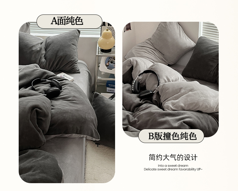 当前位置: 91家纺网 > 商品网购 > 床品套件 > 四件套 > 牛奶绒四件套 > 优卡迪家纺馆 2025新款牛奶绒纯色双拼四件套系列 深灰银灰