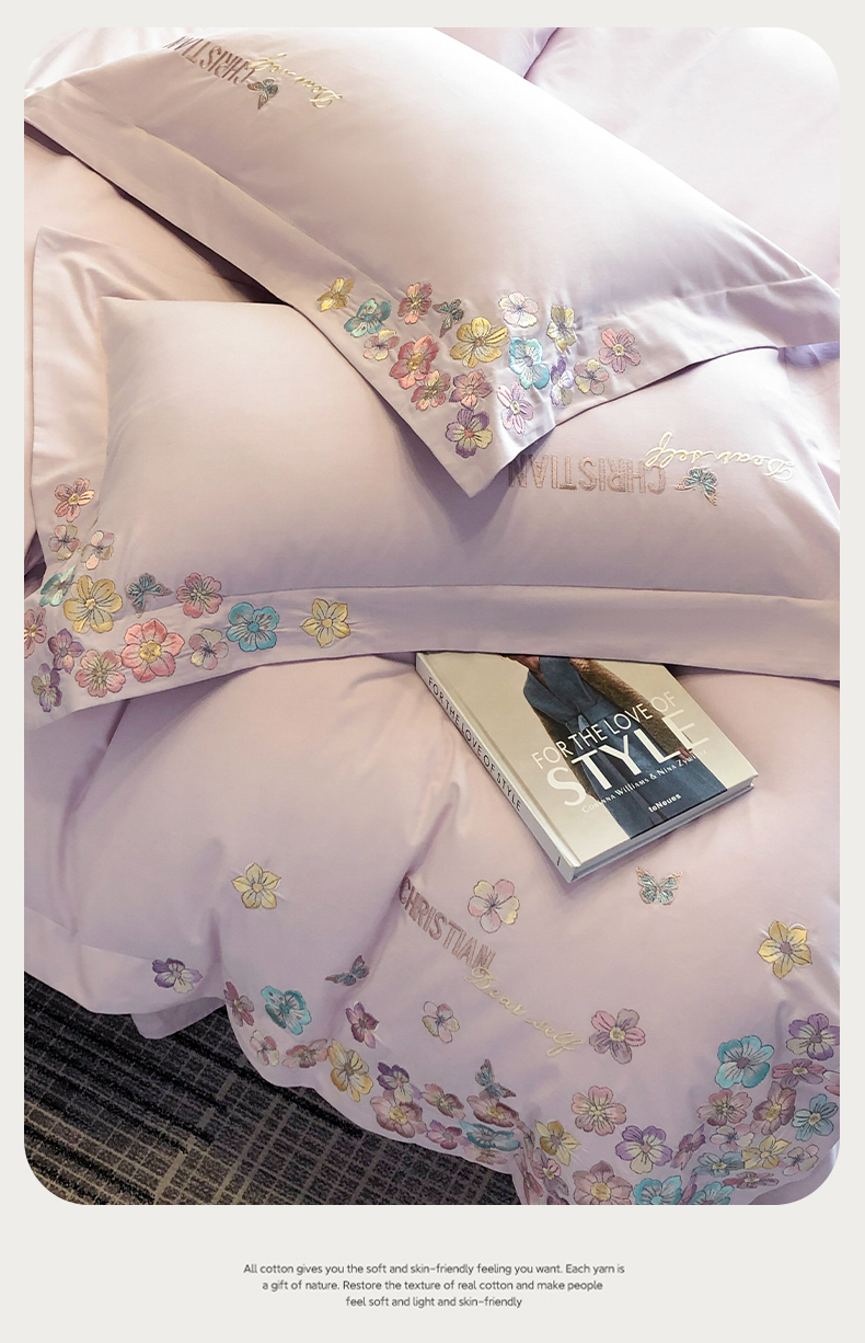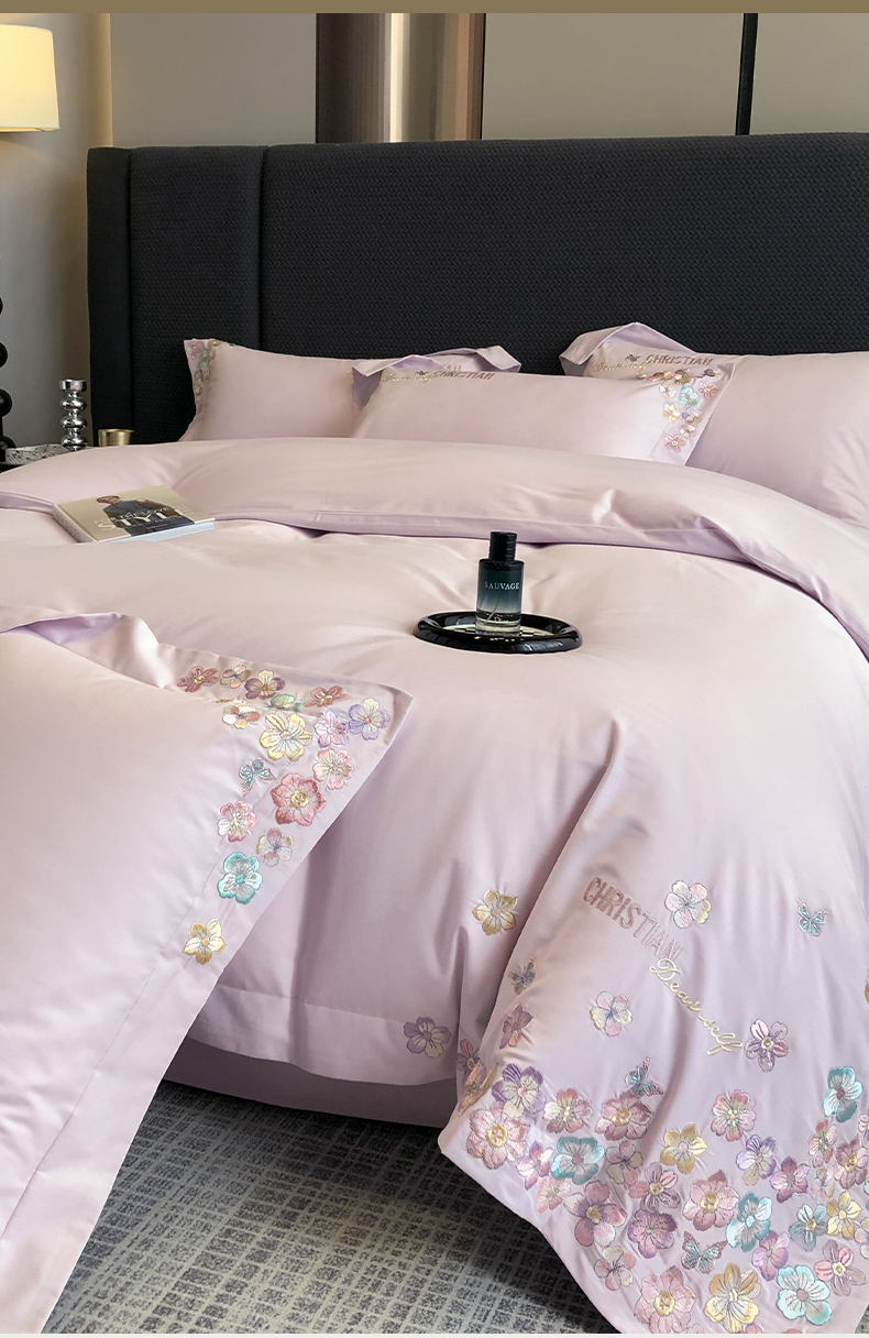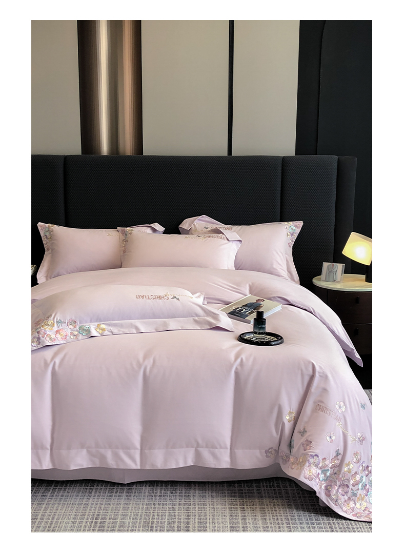丞音家纺 【特价新品】A类100支超柔超细旦长绒棉磨毛保暖绣花四件套纯棉加厚刺绣全棉床单被套-花瑾系列 花瑾-木槿紫