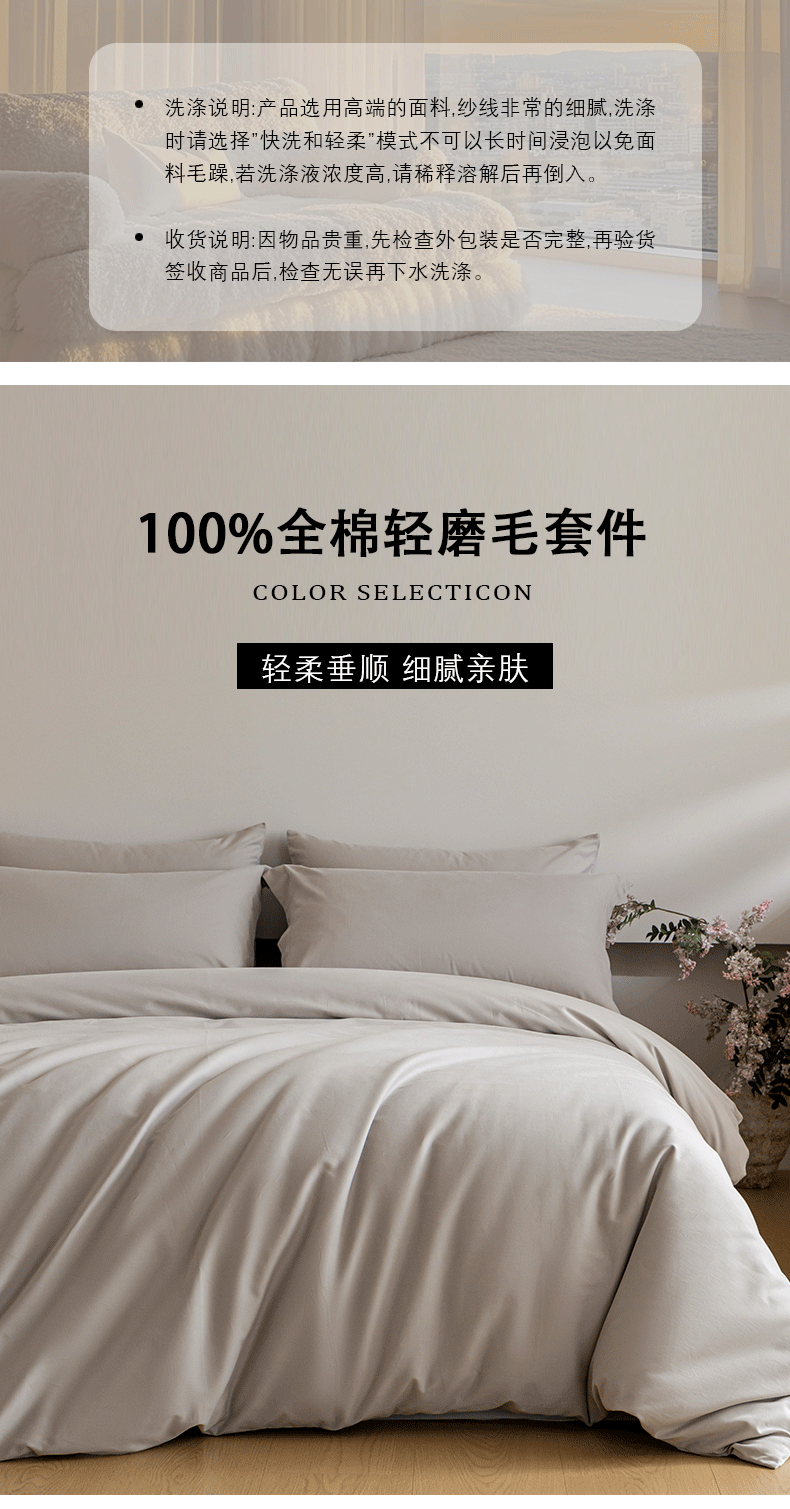 当前位置: 91家纺网 > 商品网购 > 床品套件 > 四件套 > 全棉普通四件套 > 618家纺 2025新款全棉100支磨毛单品四件套系列-四件套 月光灰