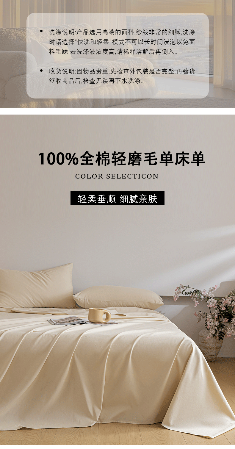 商品名称:618家纺 2025新款全棉100支磨毛单品四件套系列-单床单 雪咖