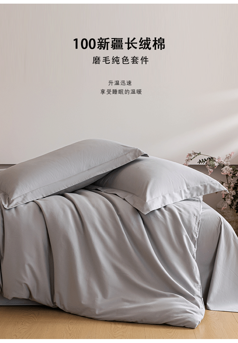 商品名称:618家纺 2025新款全棉100支磨毛单品四件套系列-单枕套 火山灰