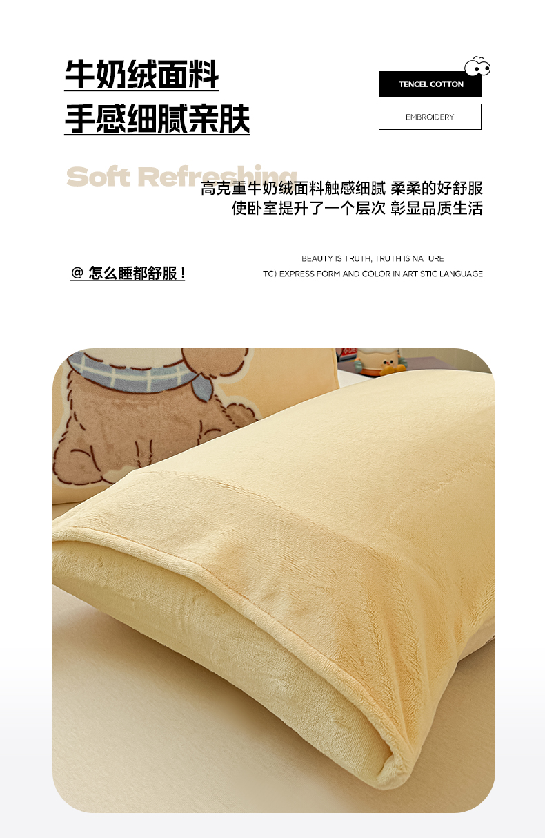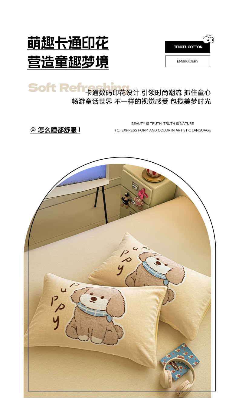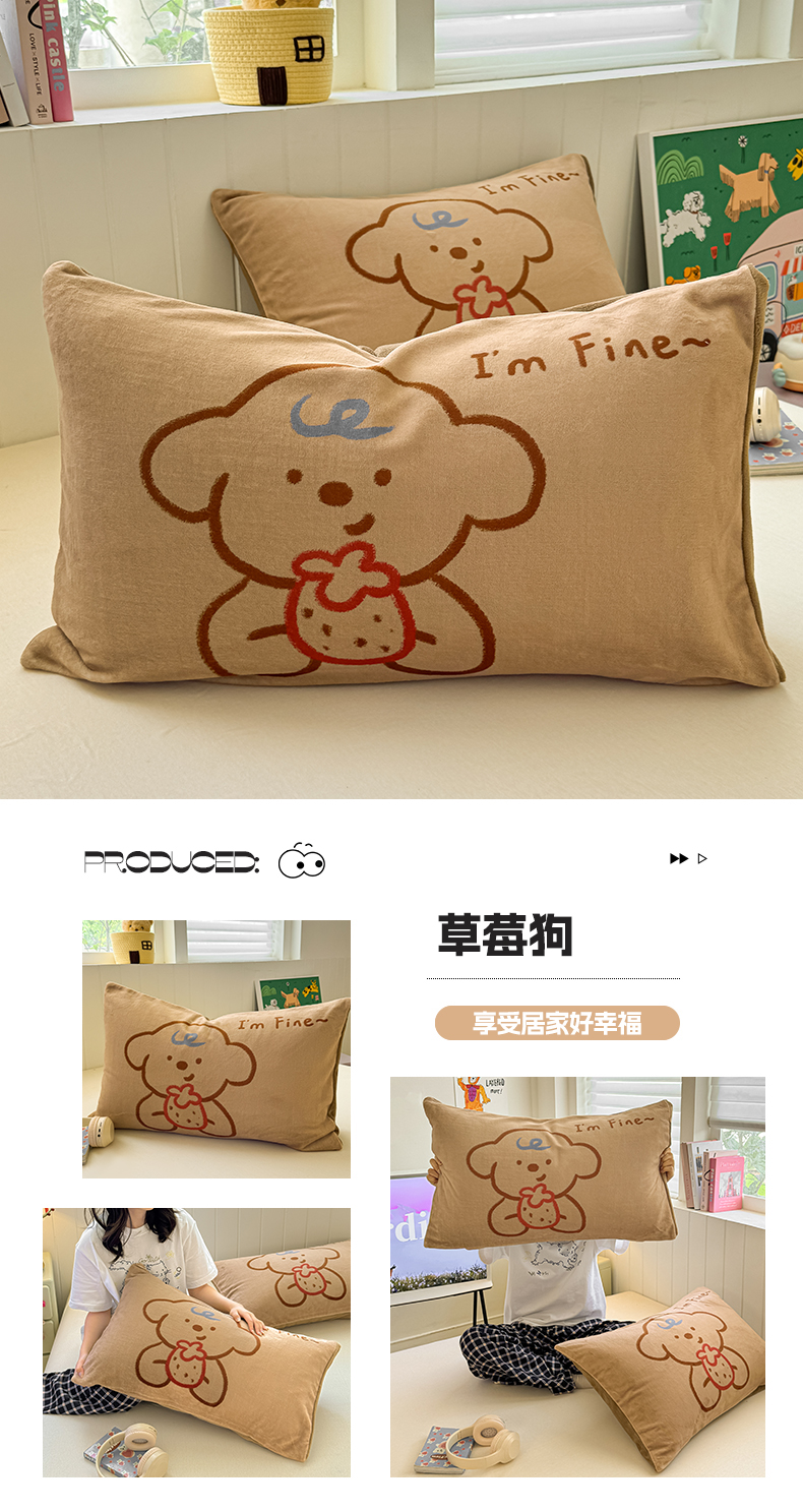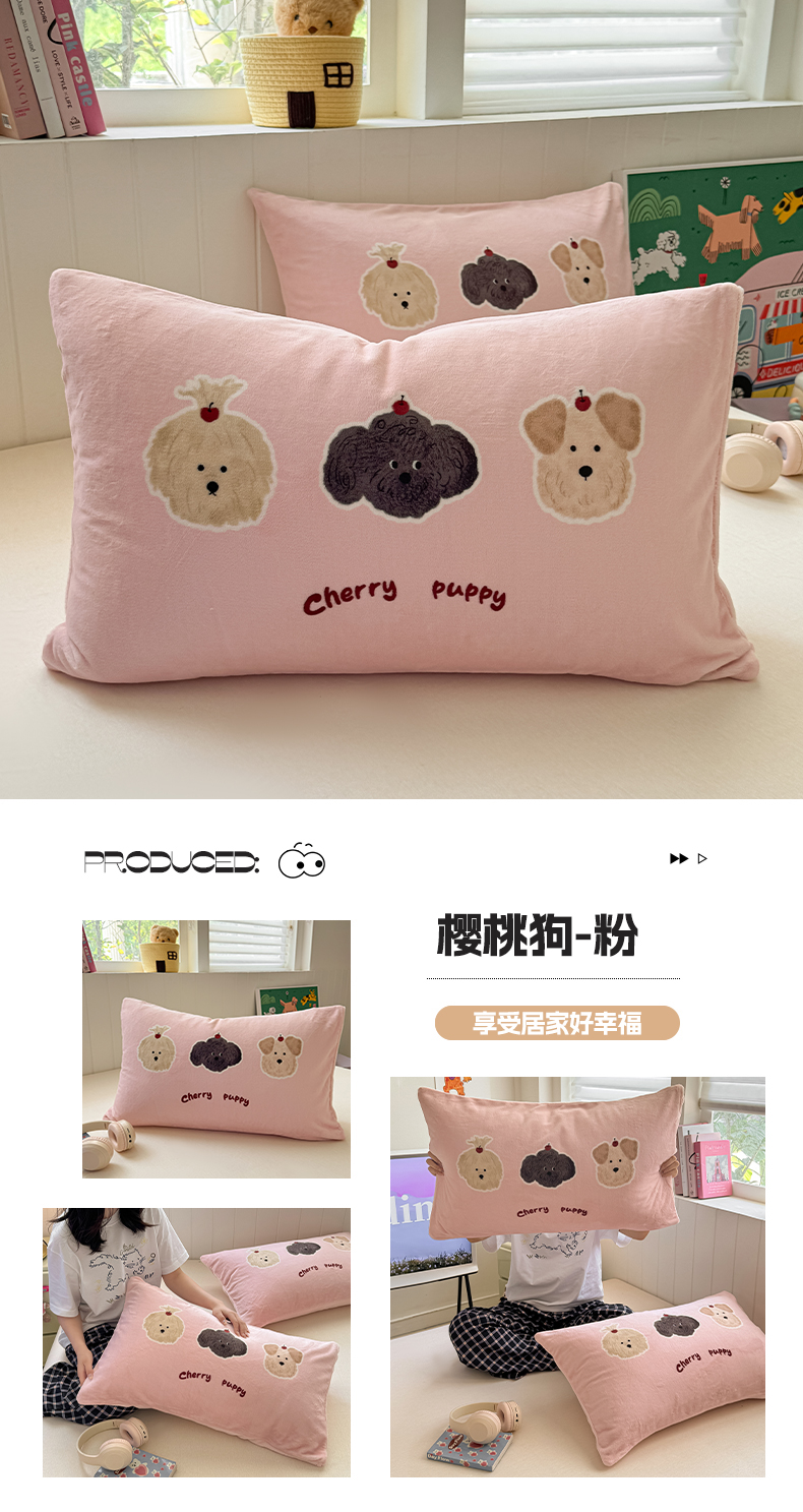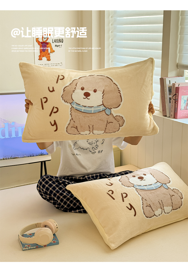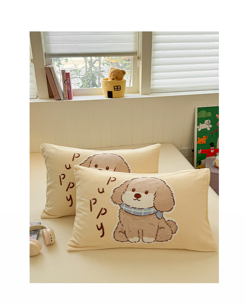 佳汐蓝家纺 2025新款牛奶绒卡通大版枕套 萌犬