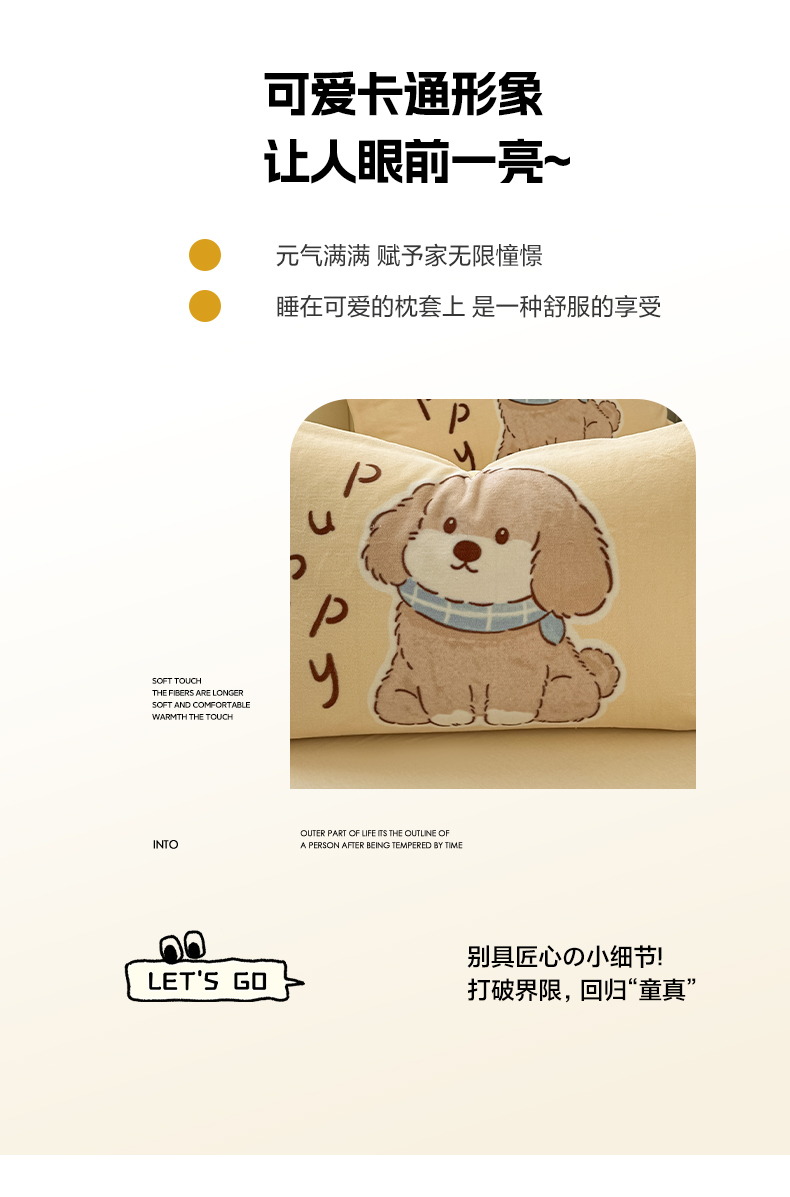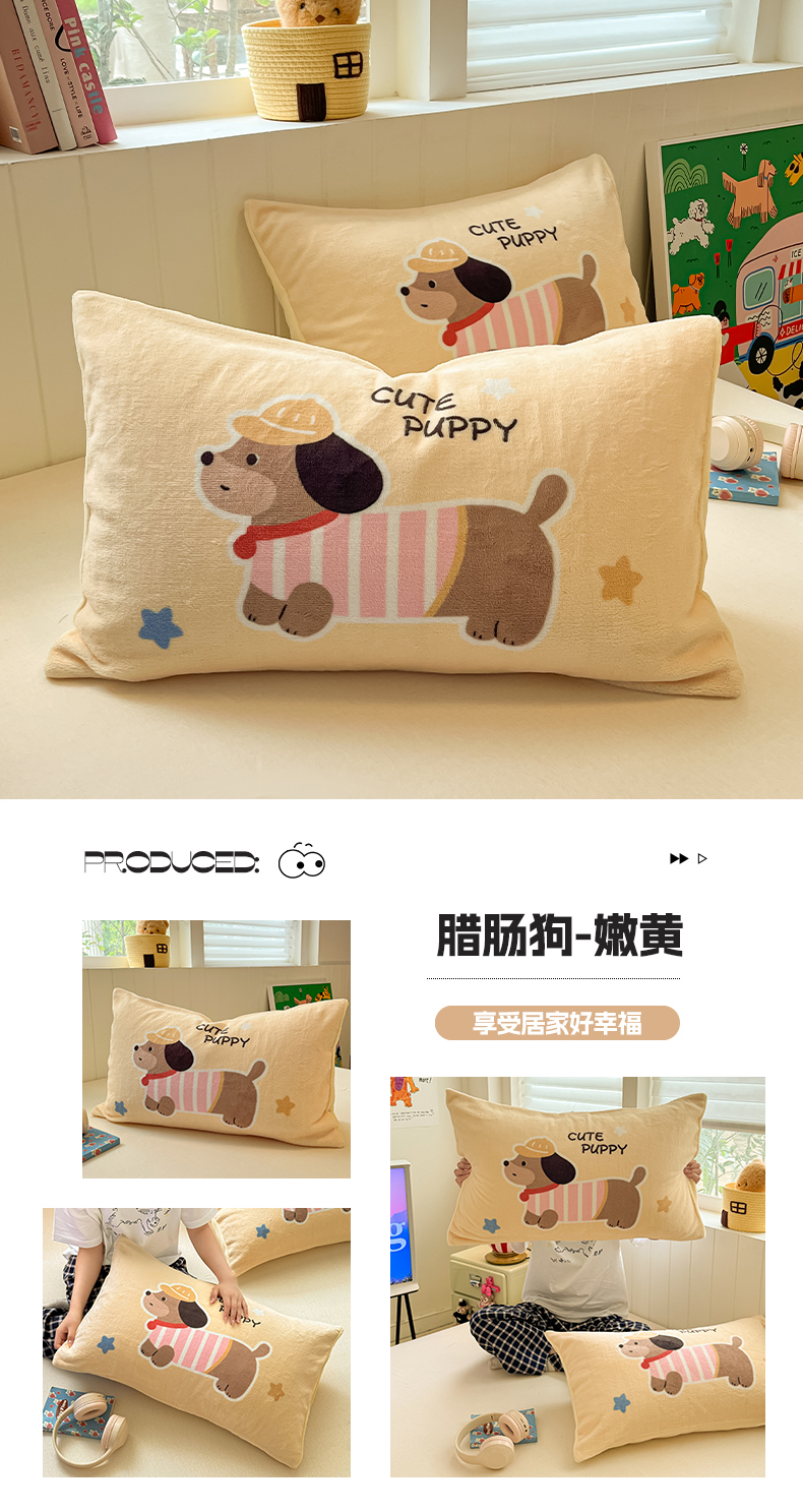 商品名称:佳汐蓝家纺 2025新款牛奶绒卡通大版枕套 萌犬