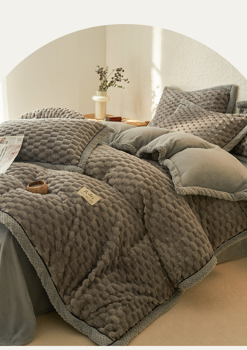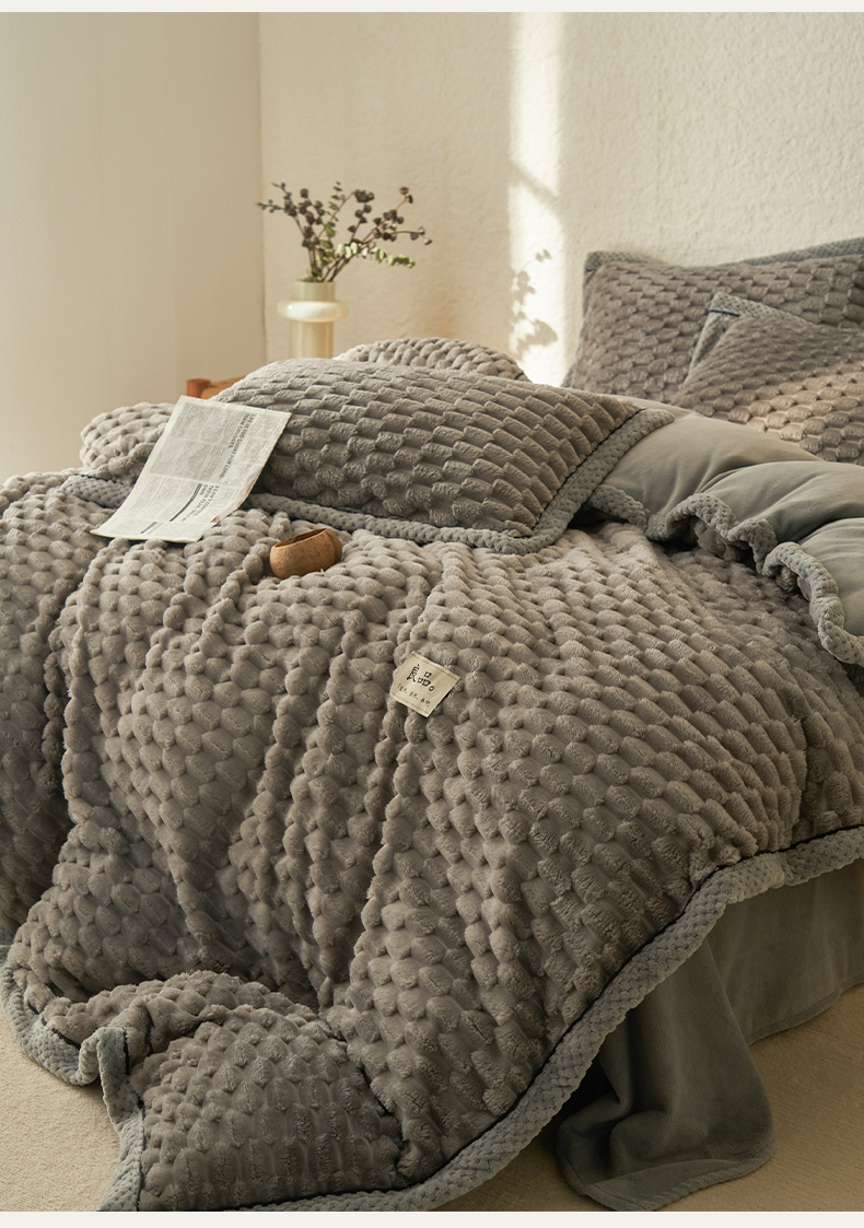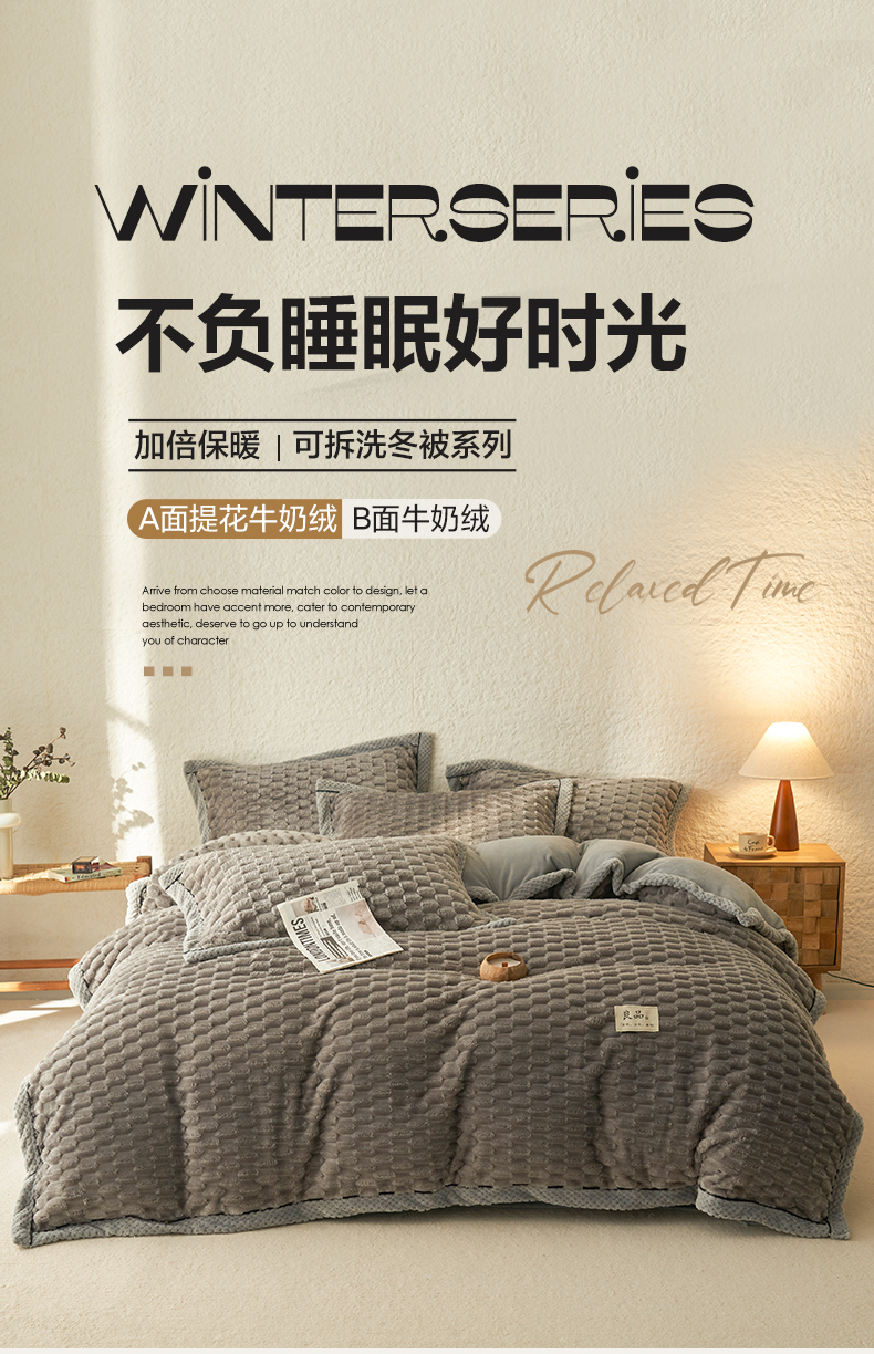 • 91家纺网 家纺一手货源 找家纺 早晨家纺 2025新款金贵款牛奶绒提花-可拆卸冬被 金贵-浅灰