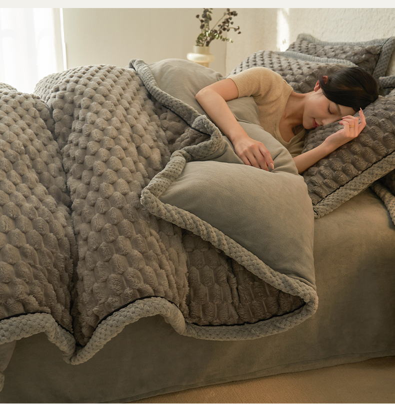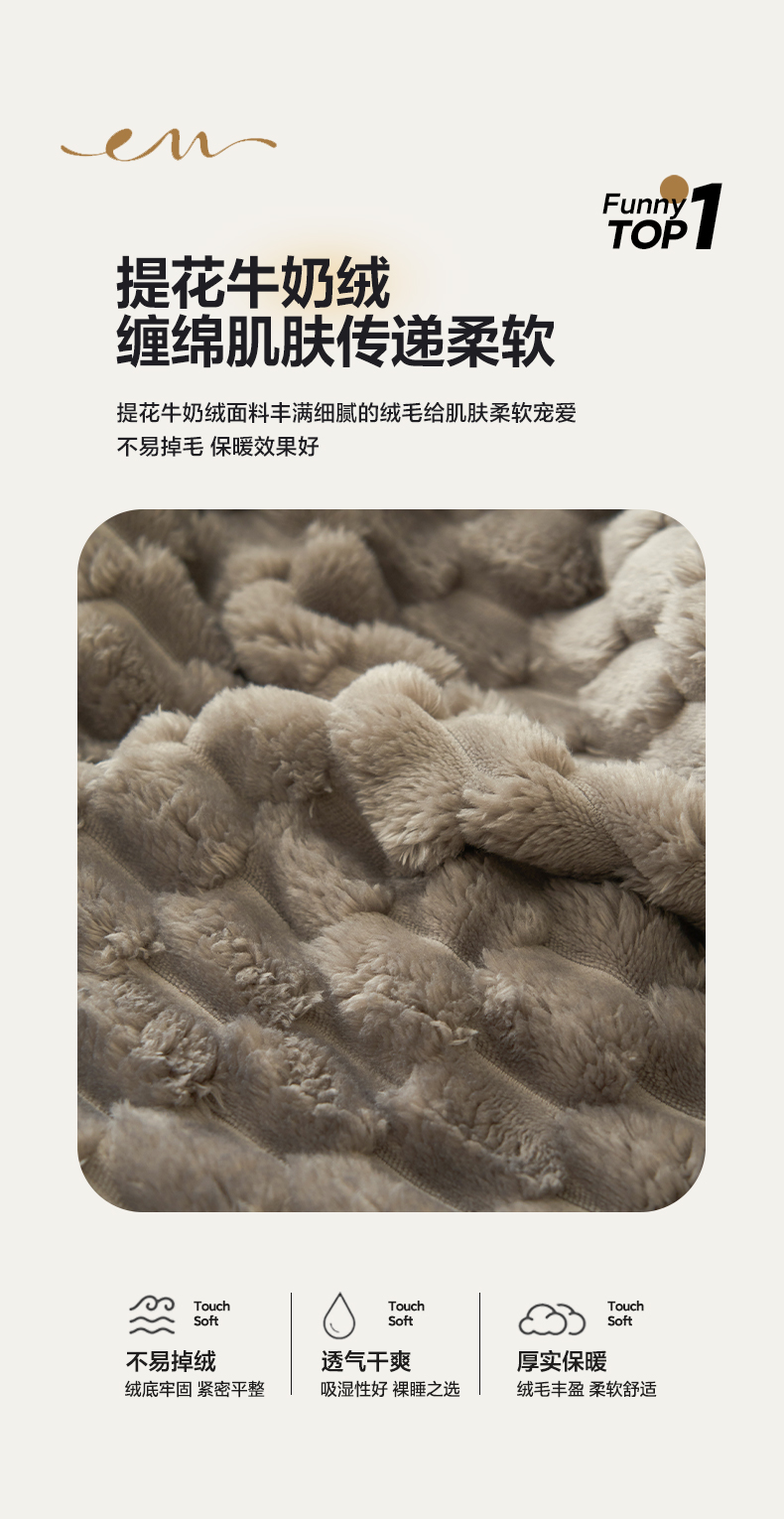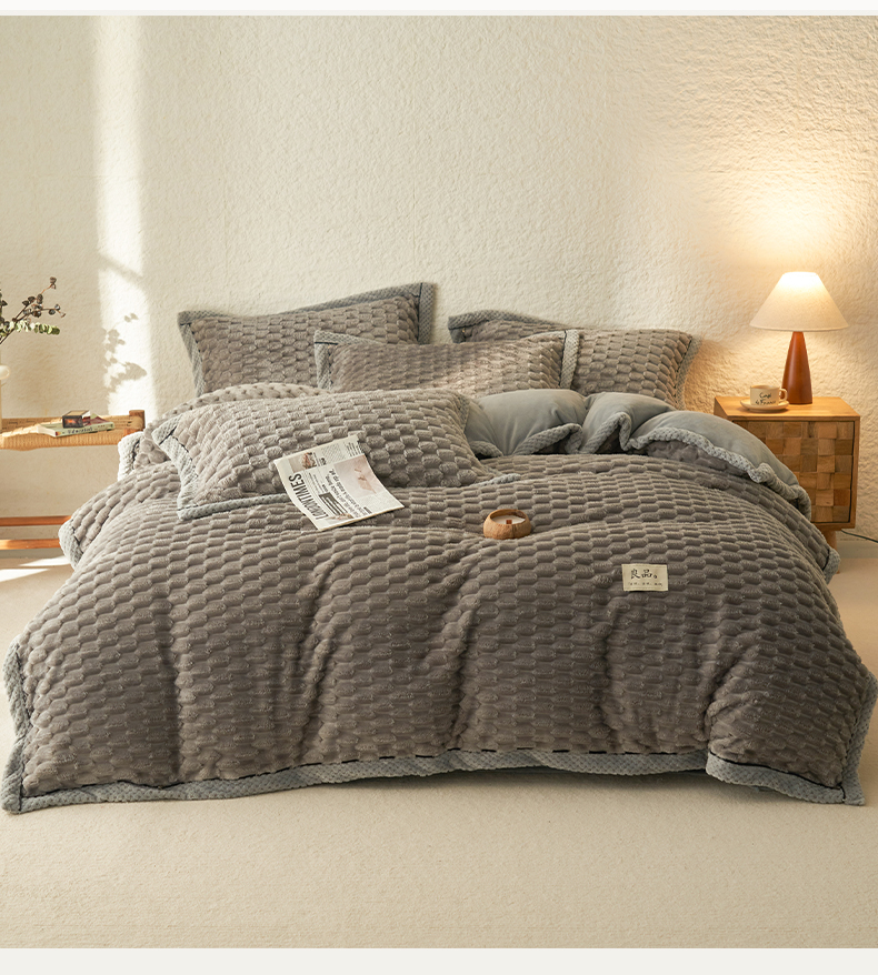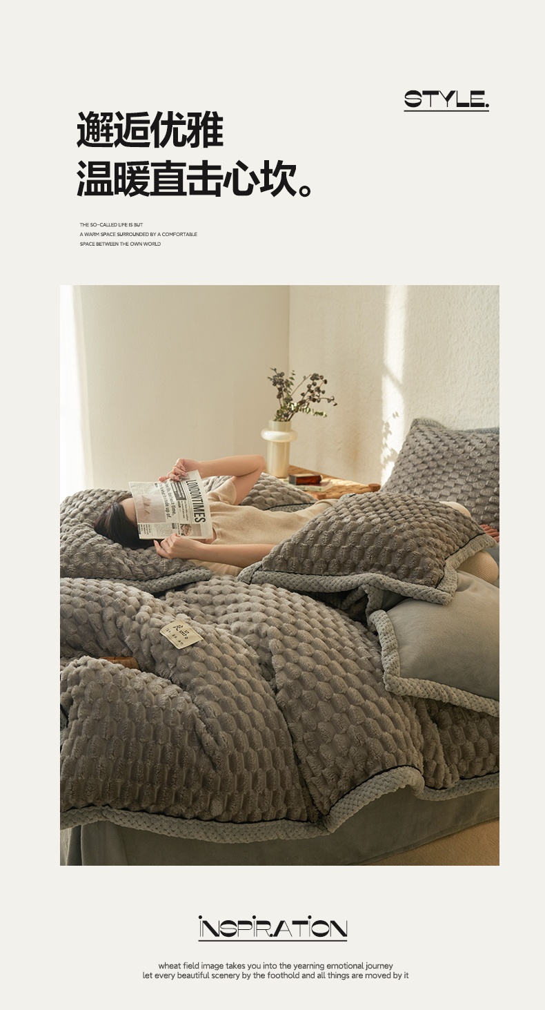 • 91家纺网 家纺一手货源 找家纺 早晨家纺 2025新款金贵款牛奶绒提花-可拆卸冬被 金贵-浅灰