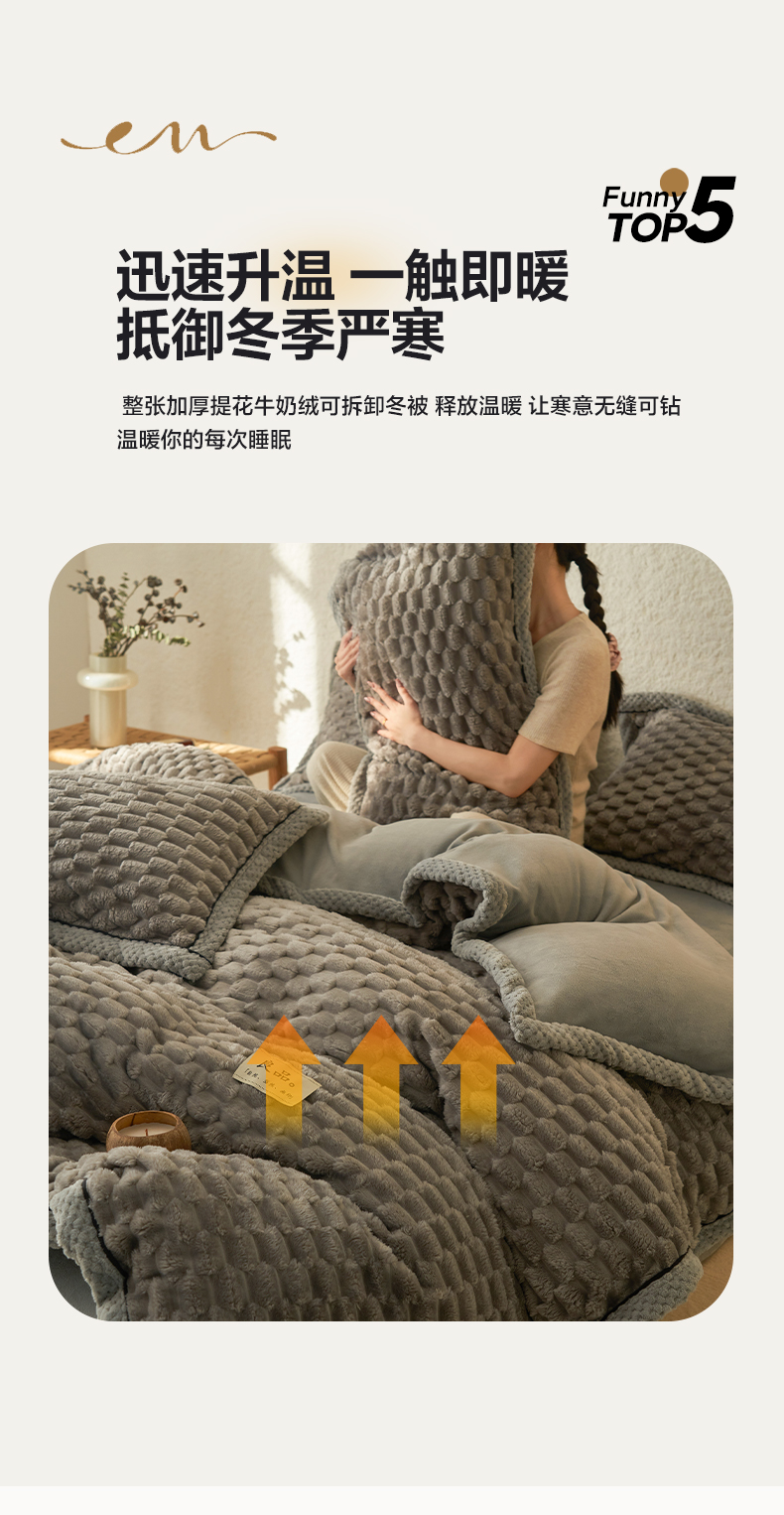 早晨家纺 2025新款金贵款牛奶绒提花-可拆卸冬被 金贵-浅灰