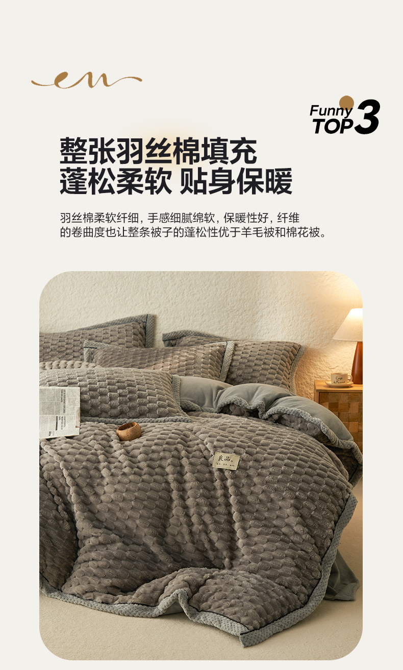 当前位置: 91家纺网 > 商品网购 > 被子 > 冬被 > 早晨家纺 2025新款金贵款牛奶绒提花-可拆卸冬被 金贵-浅灰