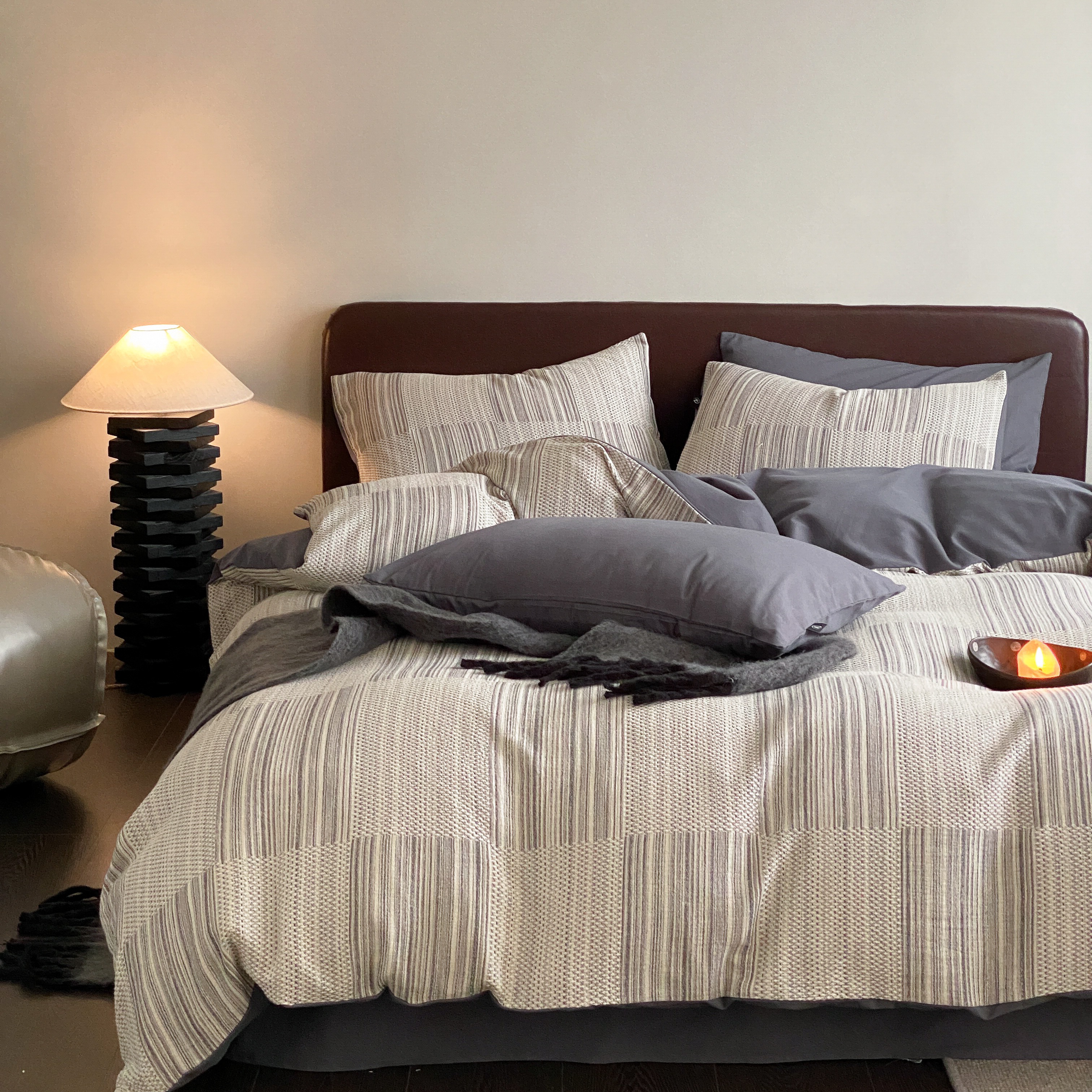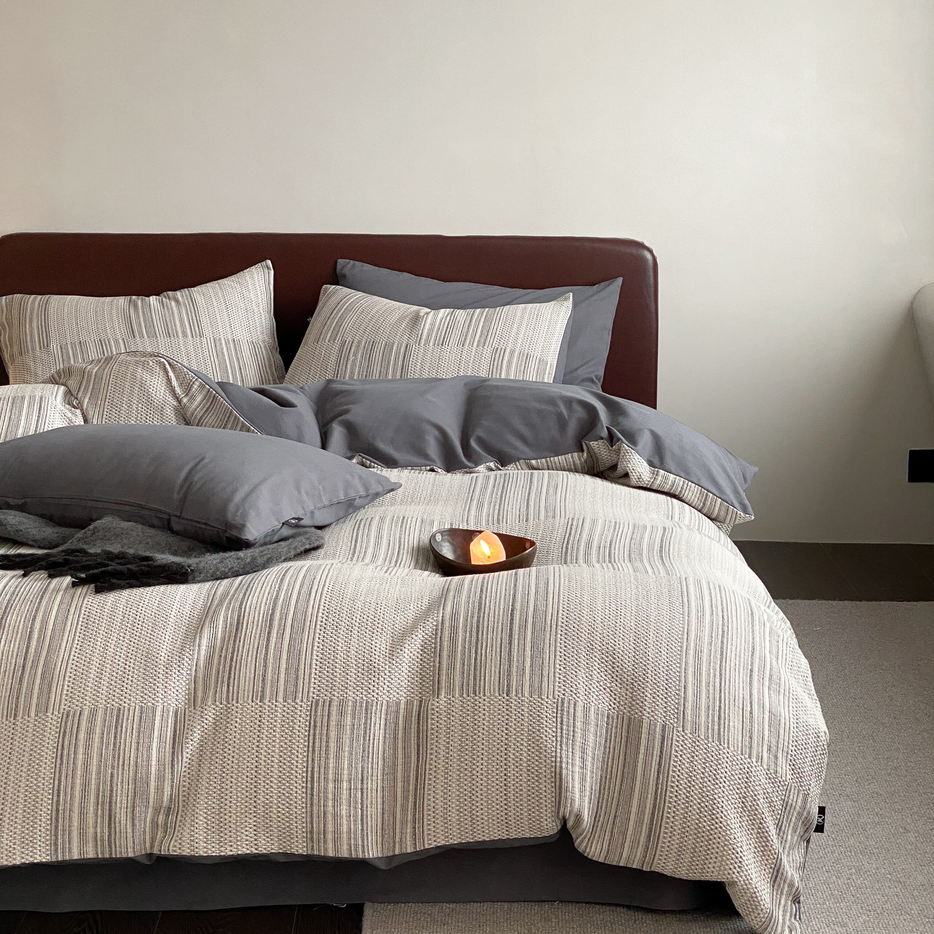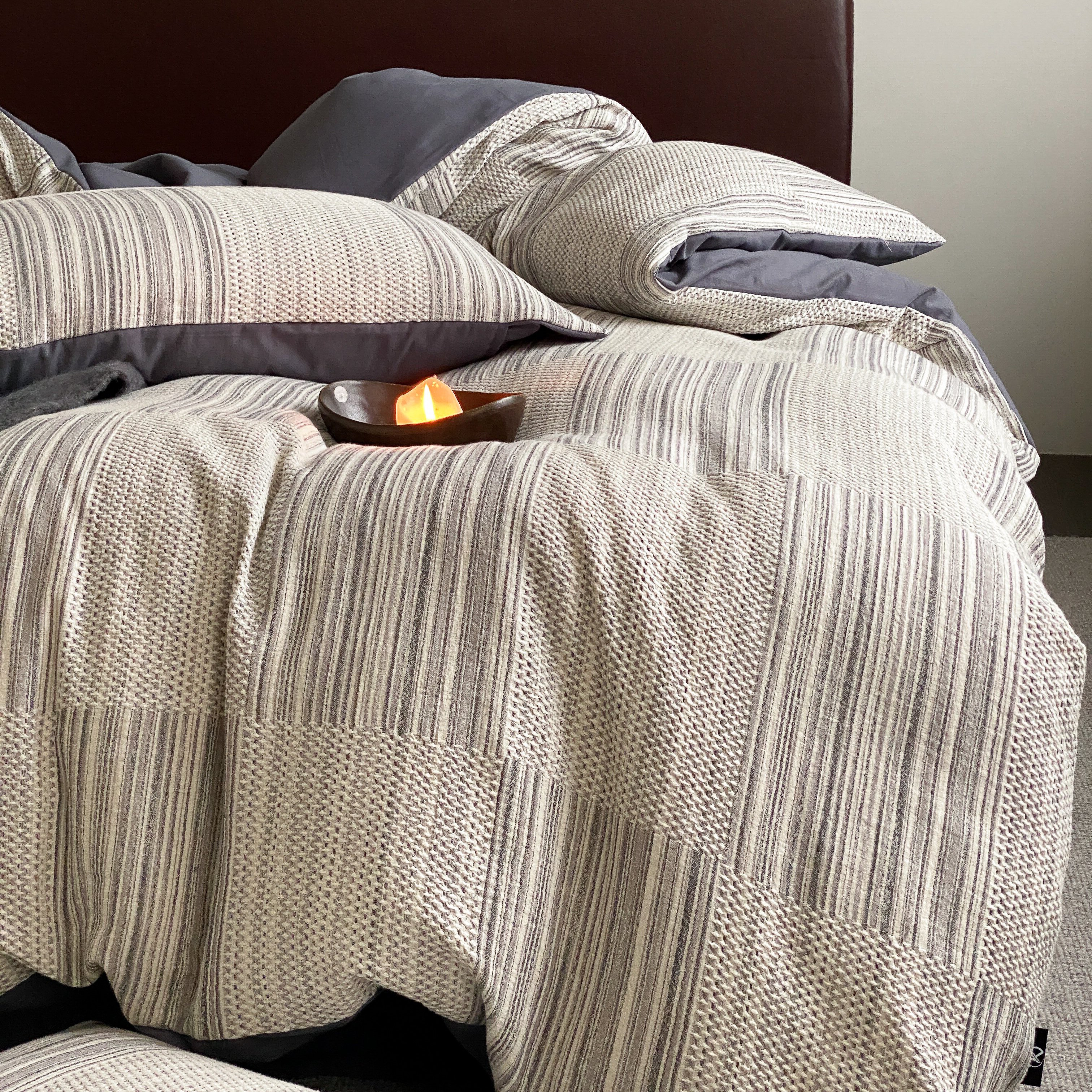 旷野 2025新款全棉华夫格提花磨毛四件套 吉野-巴黎灰