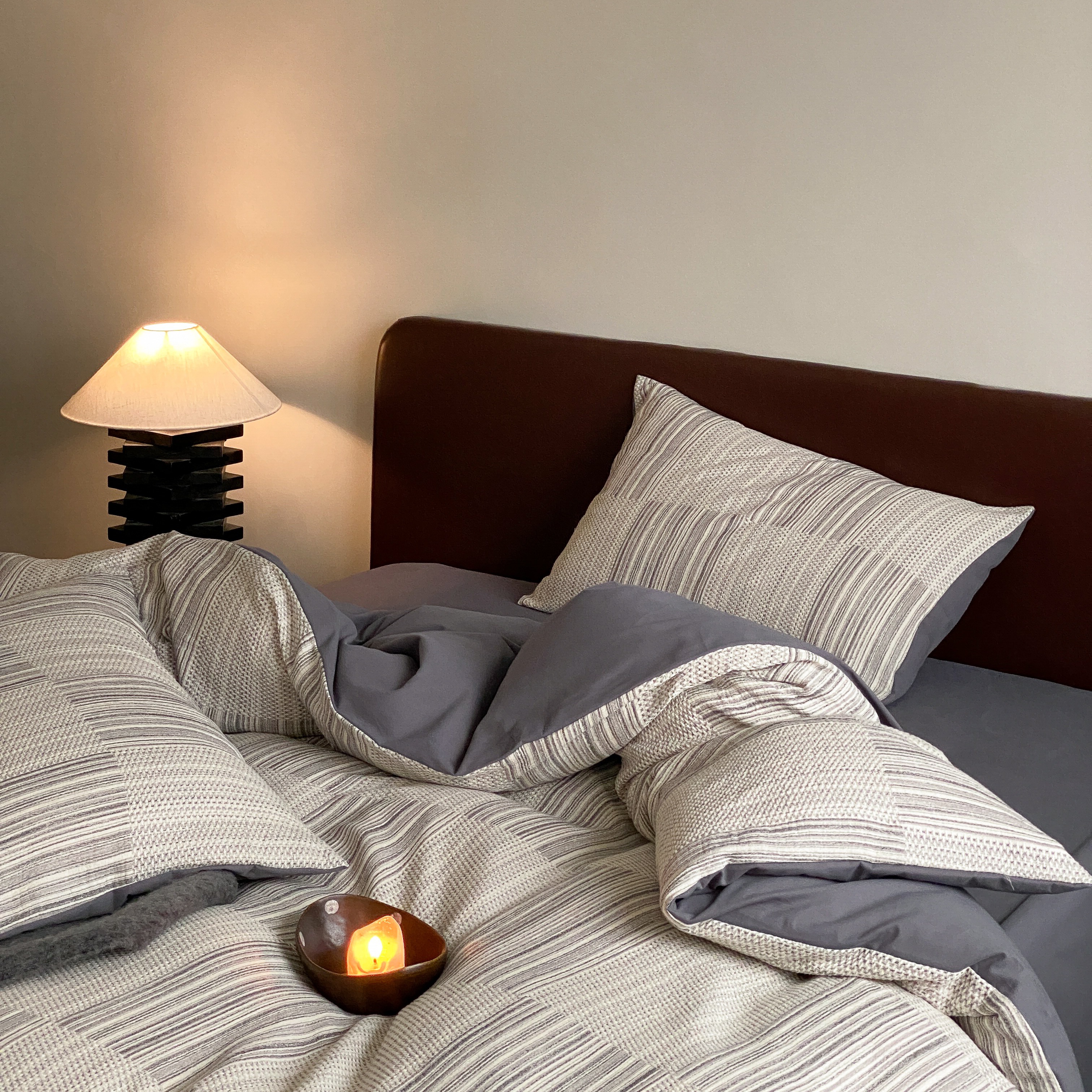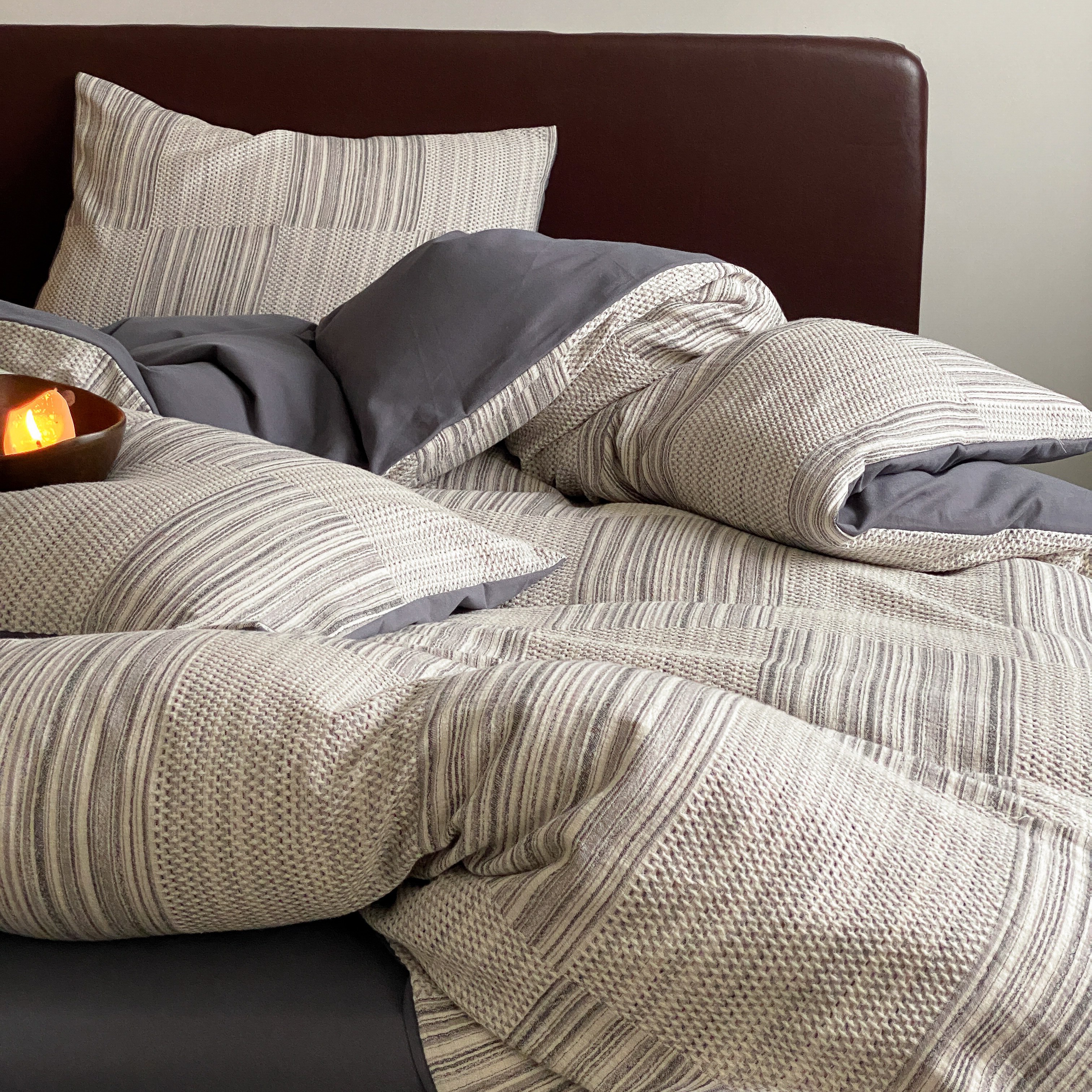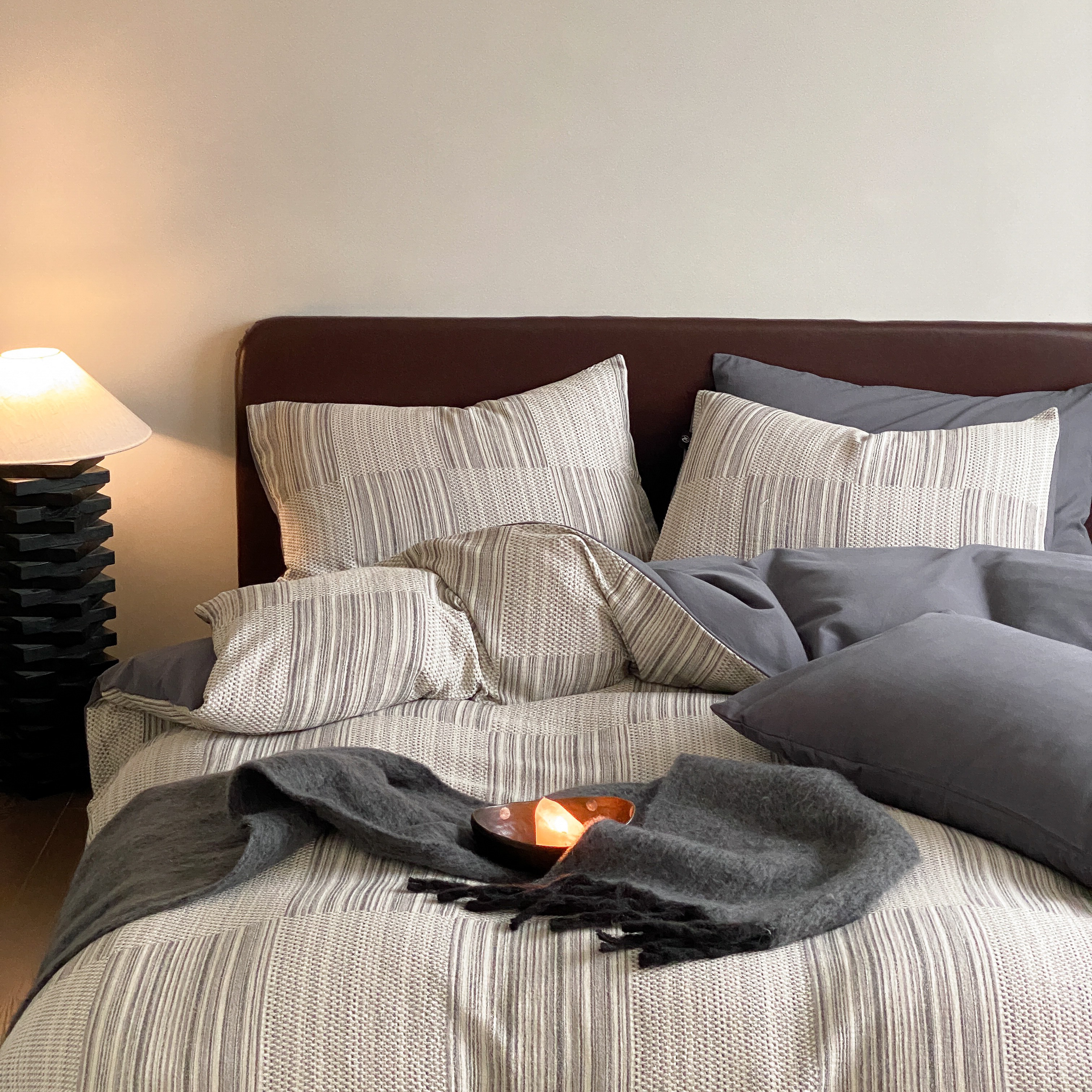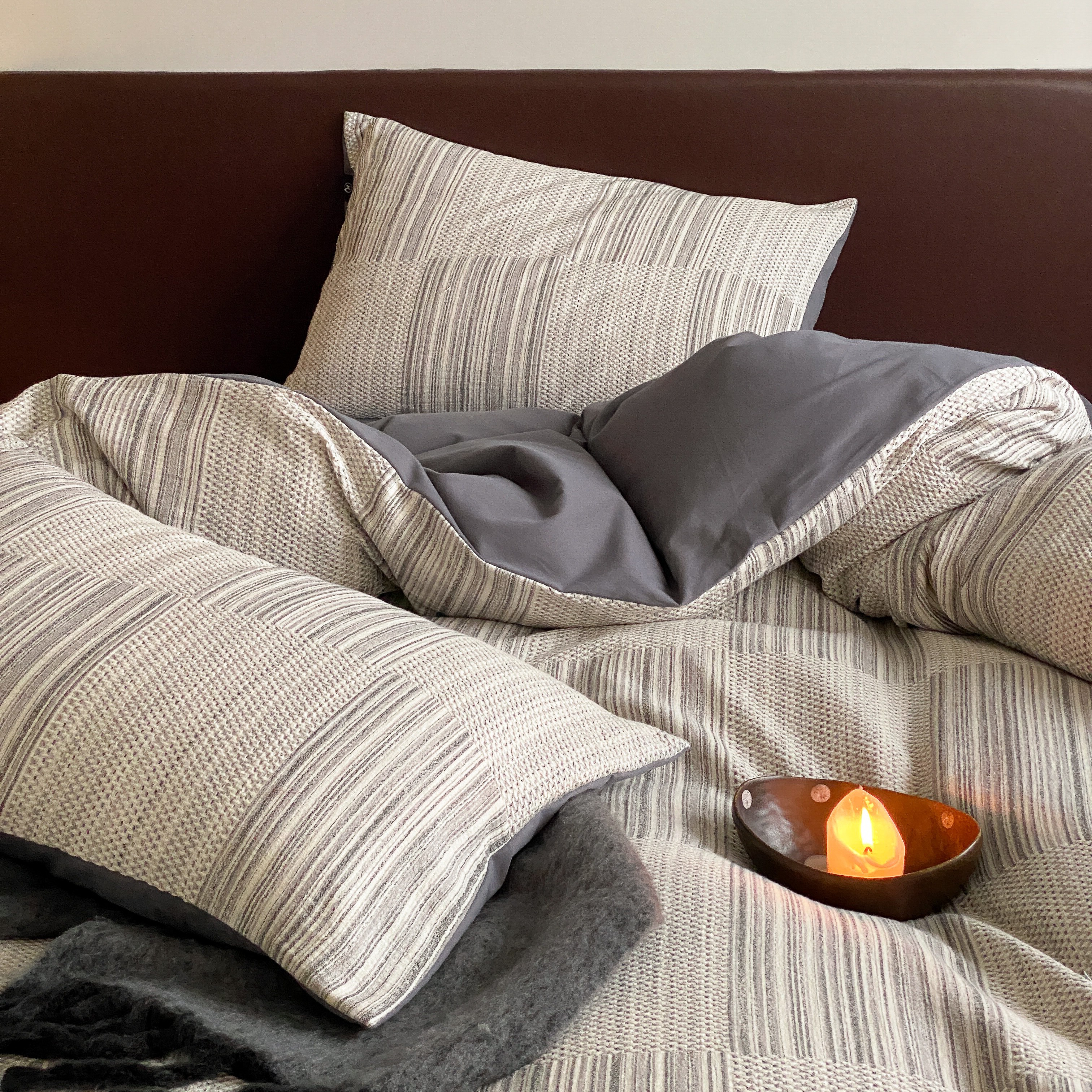 旷野 2025新款全棉华夫格提花磨毛四件套 吉野-巴黎灰