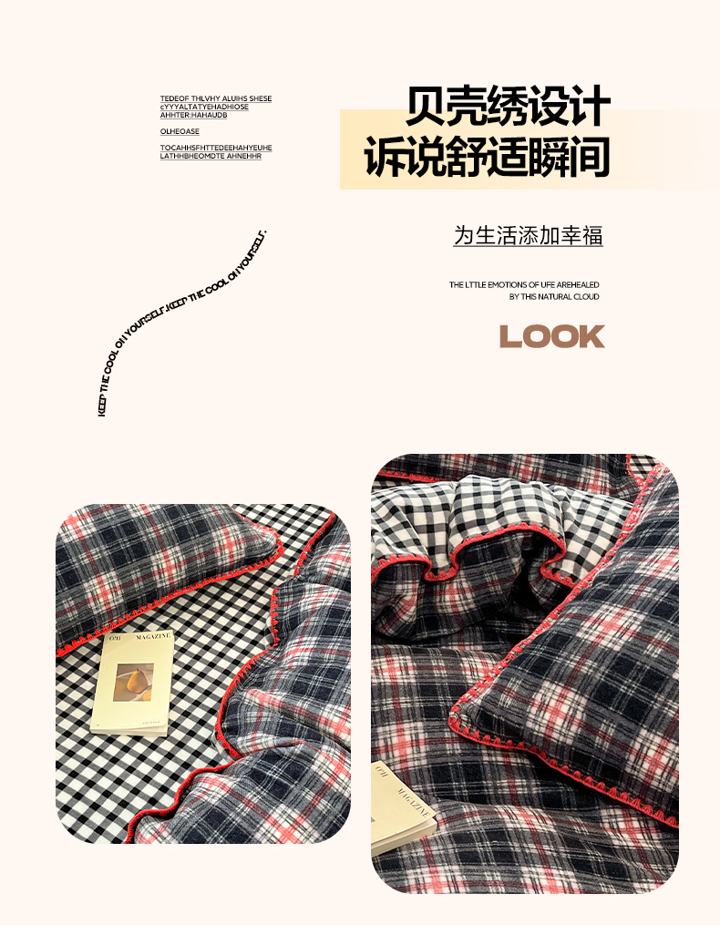 (总)格真 2025新款无印风贝壳绣三角针牛奶绒床盖三件套大眼萌枕套,休闲时光,拉菲-黄,米黄小格,粉小格,凯瑟琳红格,蓝小格,维系驼格,黑白小格