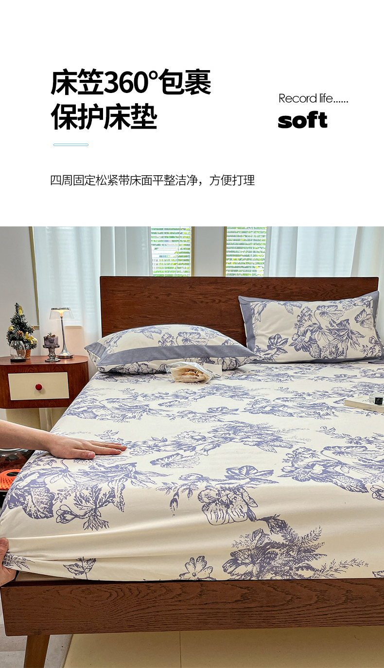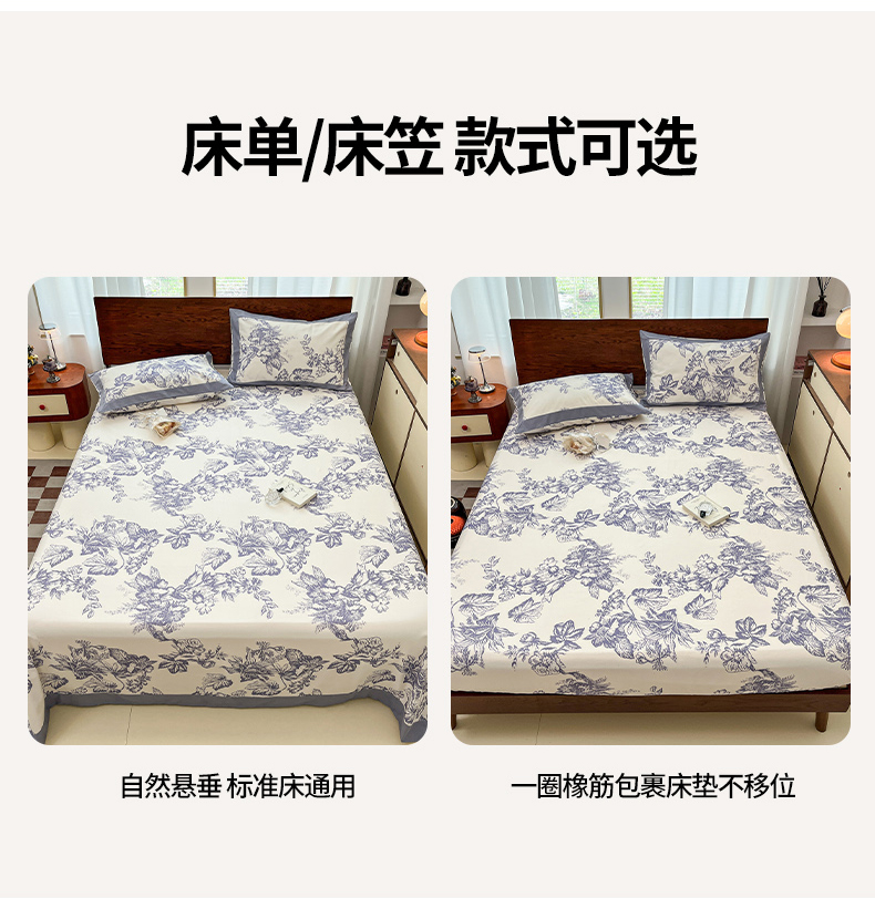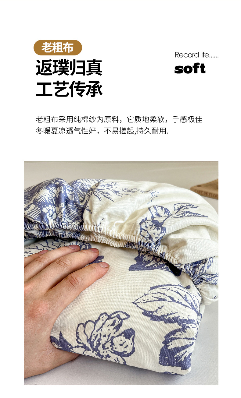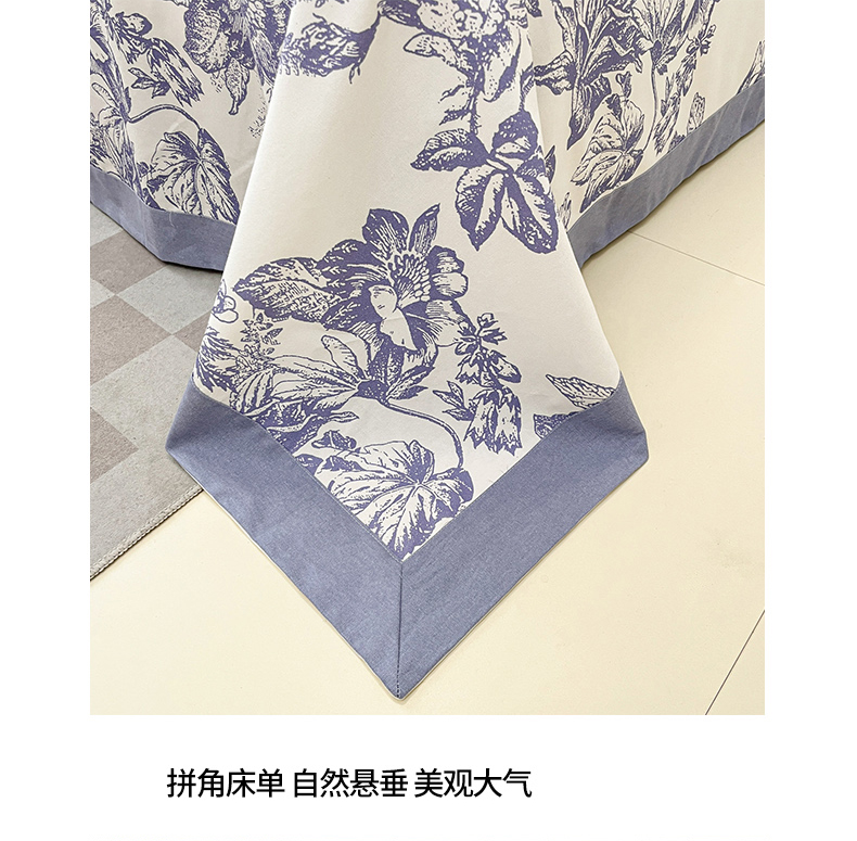 商品名称:宜代光年 2025新款全棉老粗布数码印花拼角工艺床单床笠 床单-似锦