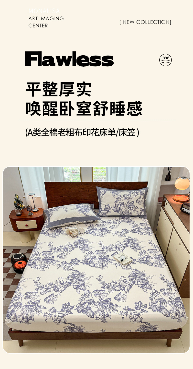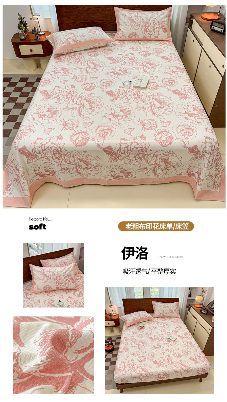 宜代光年 2025新款全棉老粗布数码印花拼角工艺床单床笠 床单-似锦