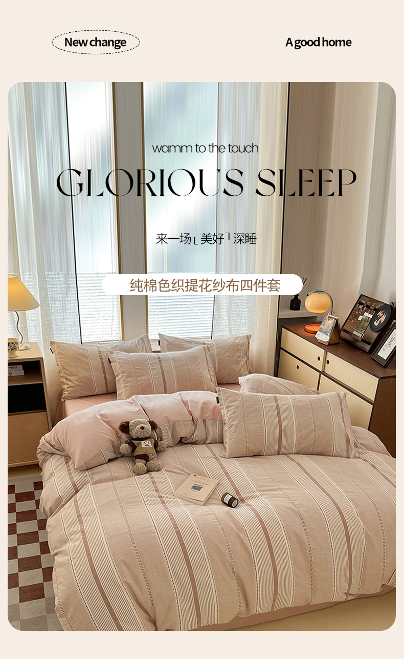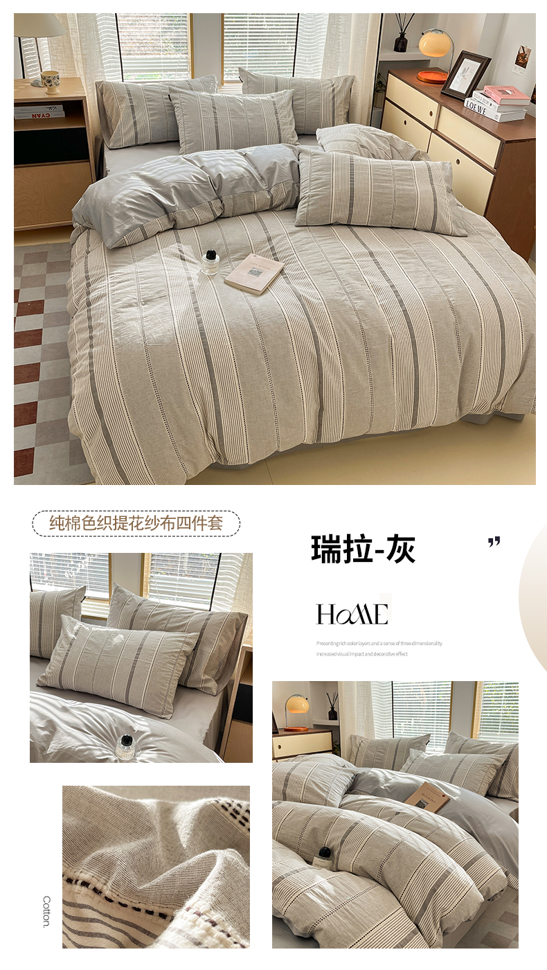 (总)宜代光年 2024新款开学季60支全棉水洗棉色织提花四件套,岸提-蓝灰,岸提-米,繁花-粉,繁花-绿,牡丹-粉,牡丹-咖,温差-灰,温差-米,雪花片-灰,雪片花-暖橘,枝繁叶茂-橘