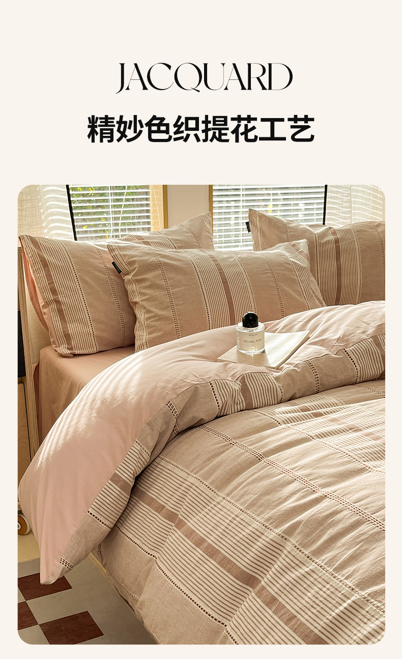 (总)宜代光年 2026新款60S水洗棉全棉纯棉三层纱色织提花夏被四件套系列,繁花-粉,繁花-灰,繁花-咖,繁花-绿,繁花-紫,海棠,林逾静-灰,林逾静-橘,牡丹-粉,牡丹-咖,执笔水墨-灰,执笔水墨-咖