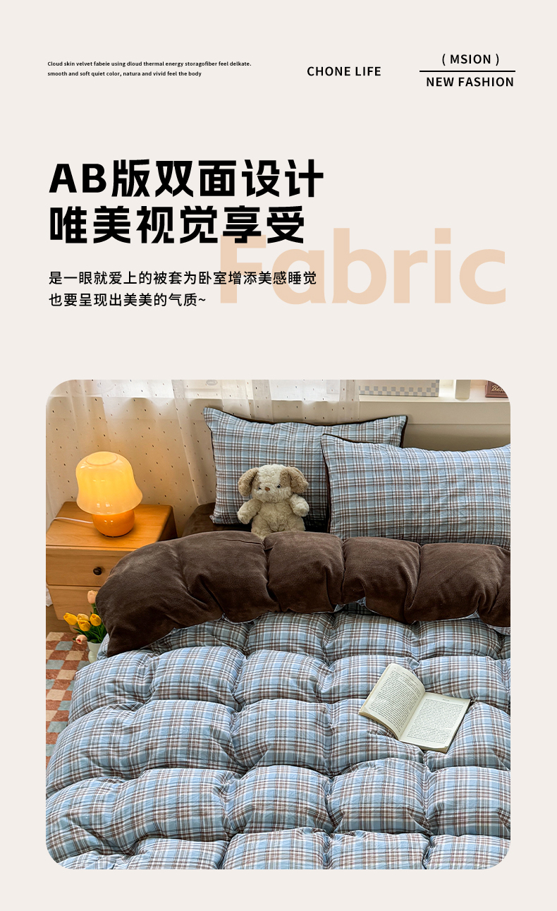 商品名称:十一家居 2025年新款A类云斜棉+牛奶绒春秋冬正反两用四件套—星漾系列 星漾-美式沙棕