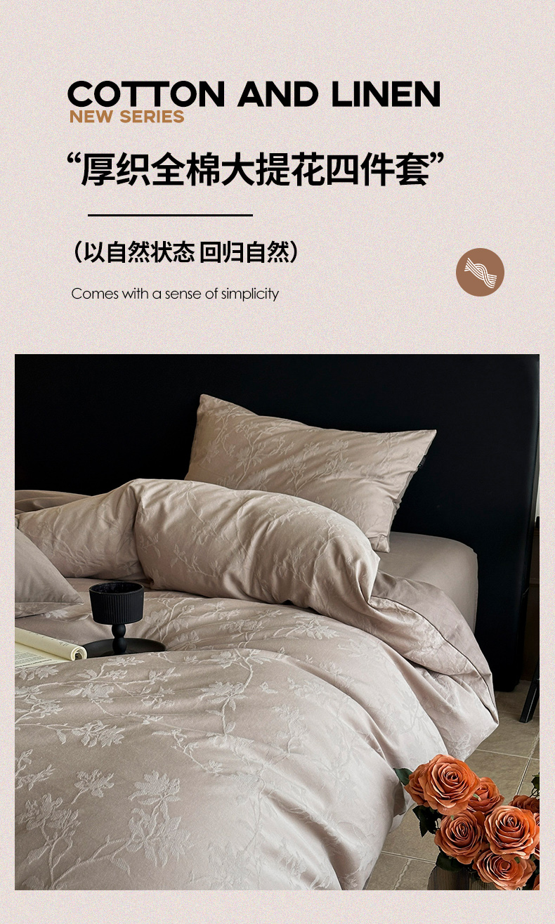 商品名称:宜代光年 2025新款厚织全棉大提花系列四件套 西塔-深咖