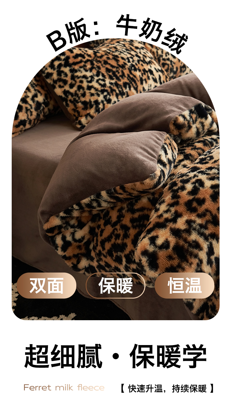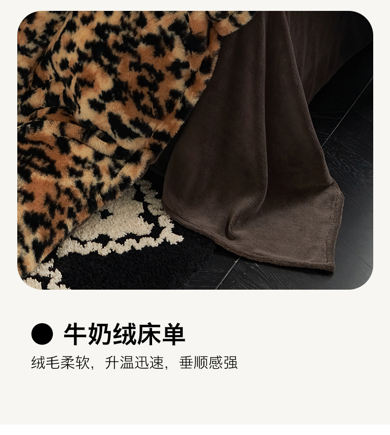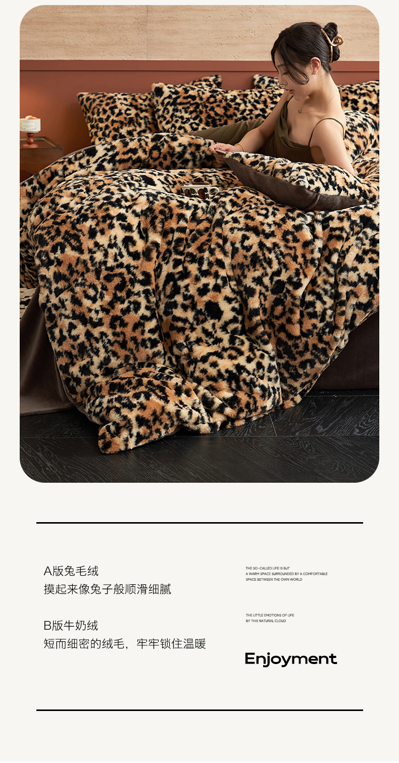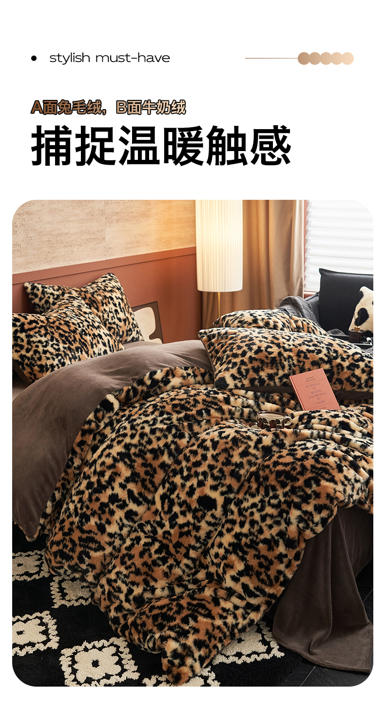 商品名称:金鹰 2025新款暖肤兔毛绒四件套牛奶绒四件套 豹纹