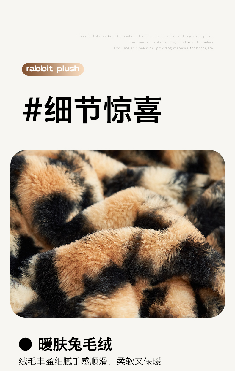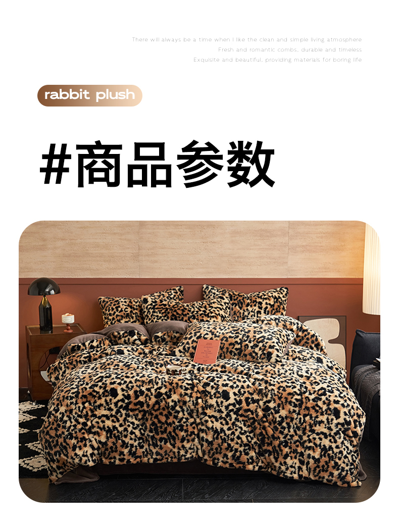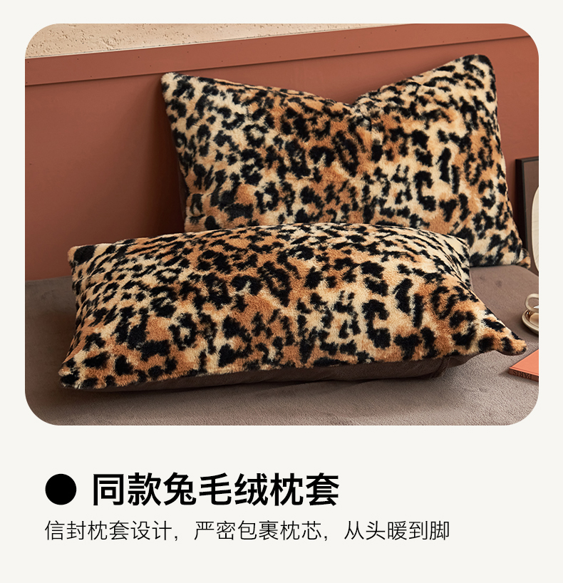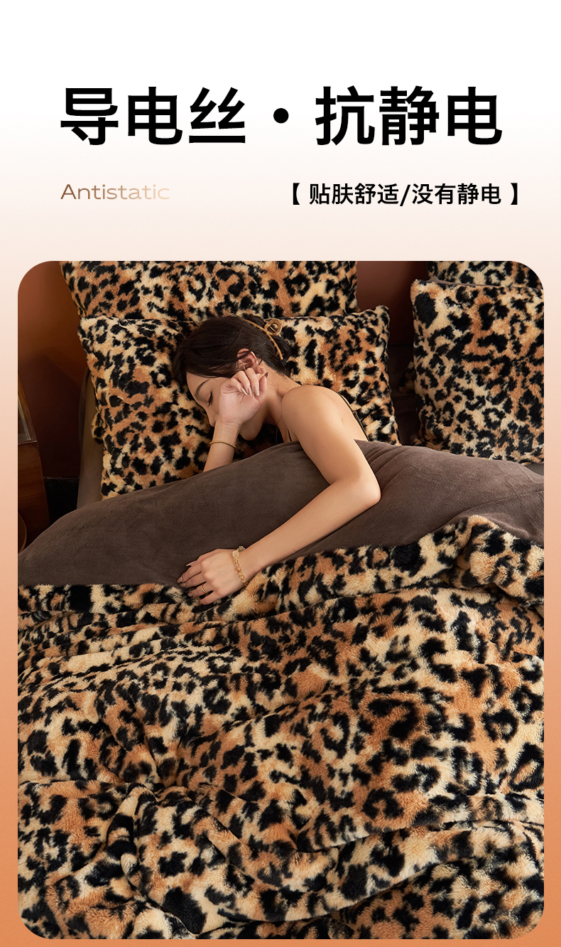 商品名称:金鹰 2025新款暖肤兔毛绒四件套牛奶绒四件套 豹纹