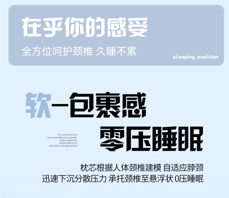 当前位置: 91家纺网 > 商品网购 > 枕头/枕芯/保健枕/颈椎枕 > 枕头枕芯 > 纳斯顿家纺 2025新款记忆棉玩睡枕软硬两用记忆棉枕头多姿势护颈枕卧室靠枕侧睡可拆洗 天真蓝