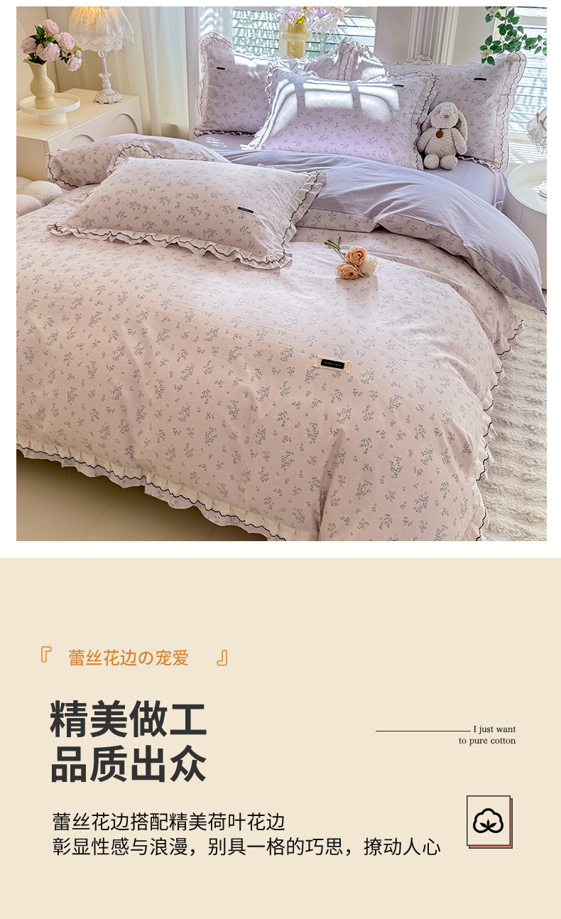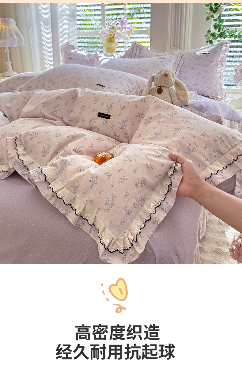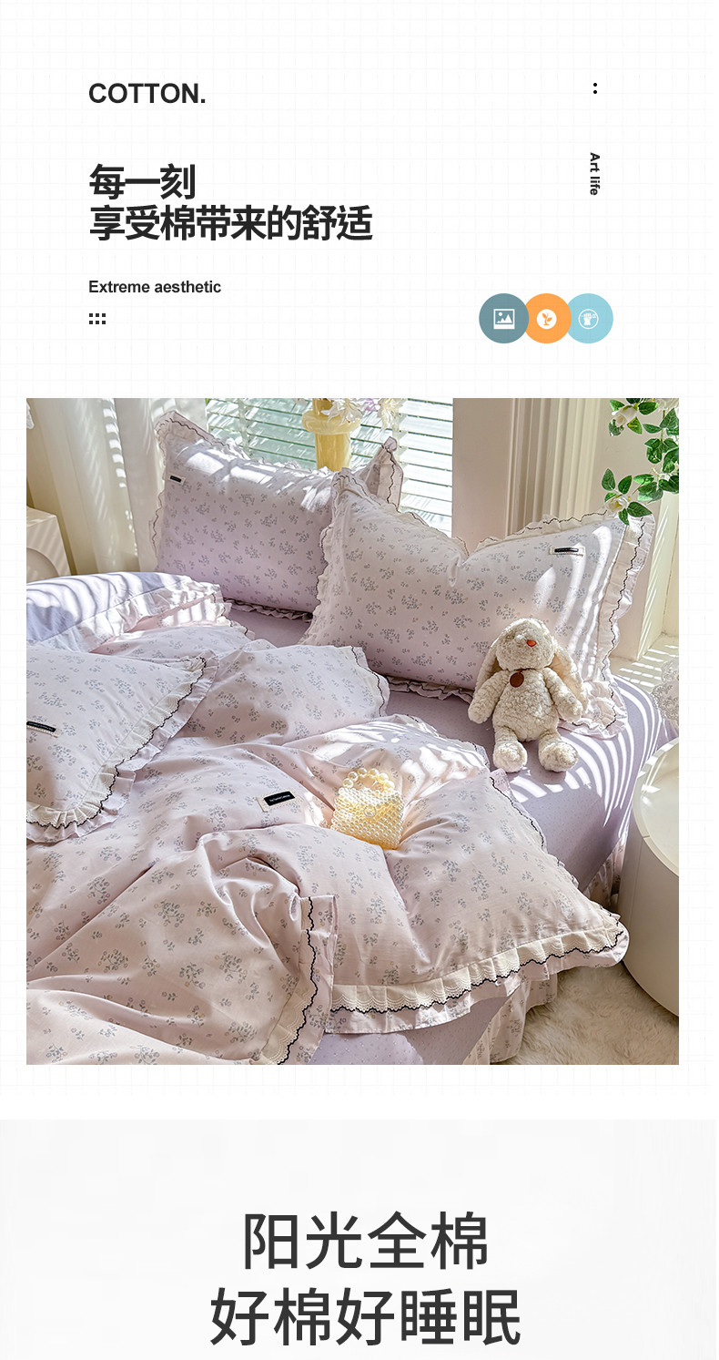 商品名称:(总)艾唯希家纺 2025新款全棉双层花边四件套纯棉小碎花10个花型-花边系列