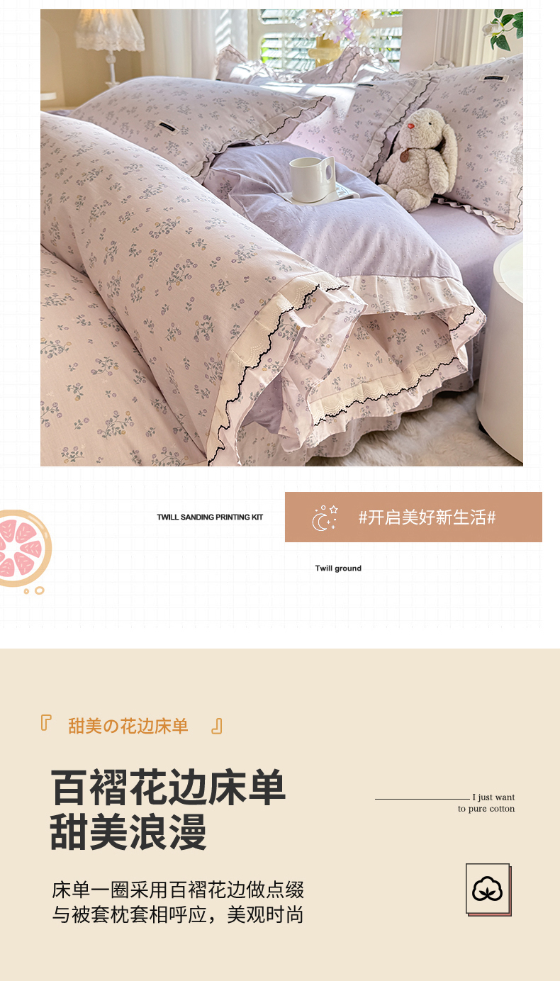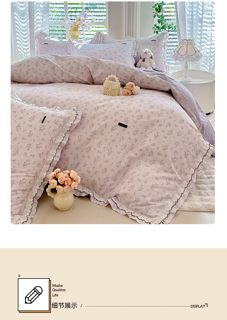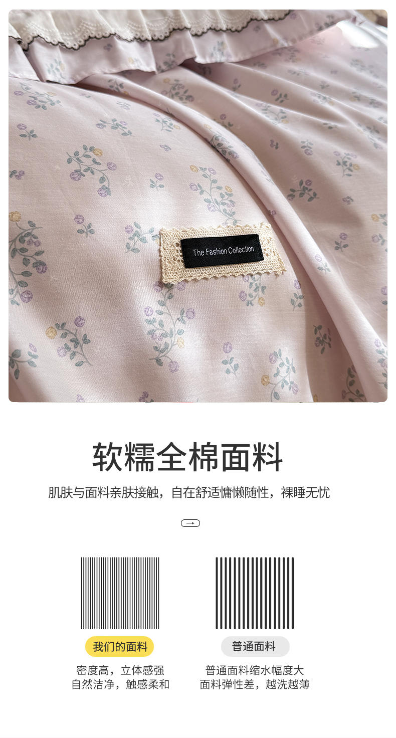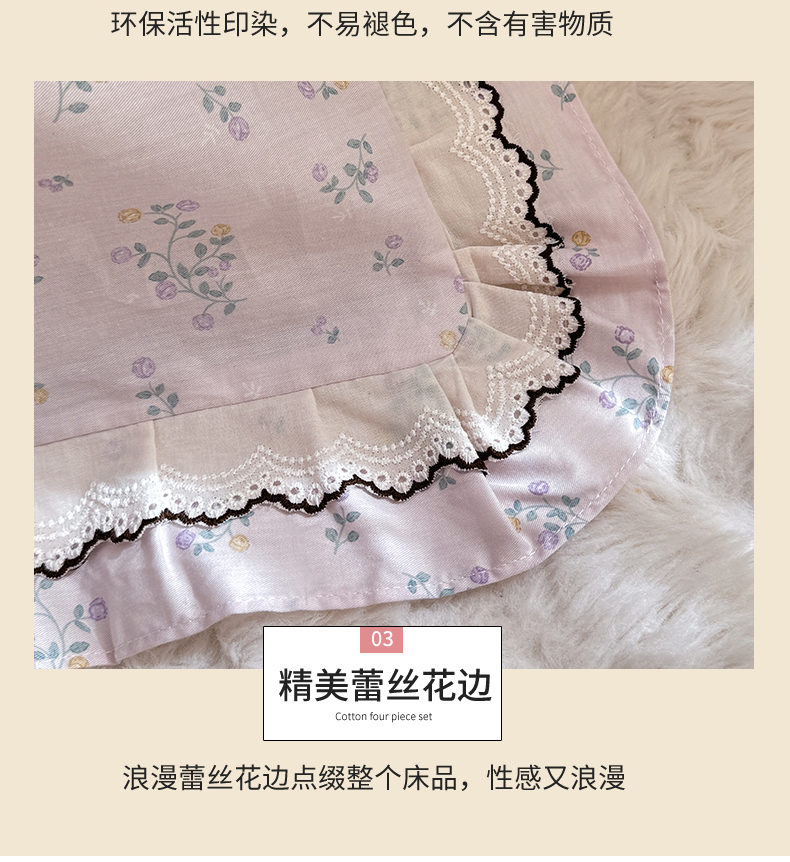 商品名称:(总)艾唯希家纺 2025新款全棉双层花边四件套纯棉小碎花10个花型-花边系列