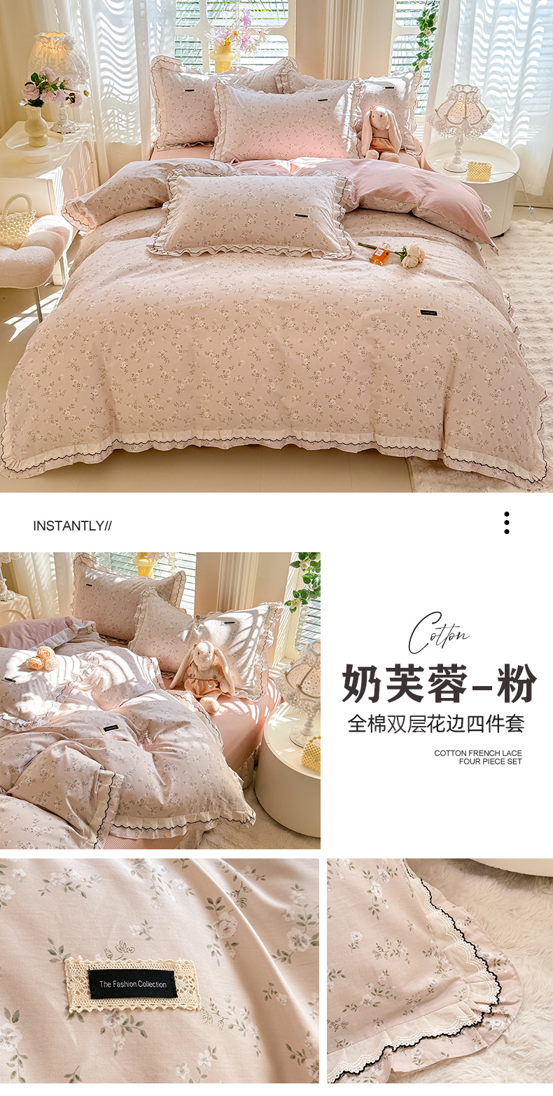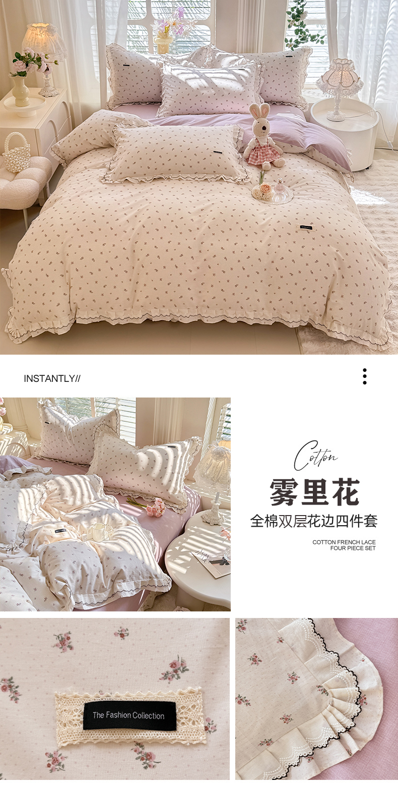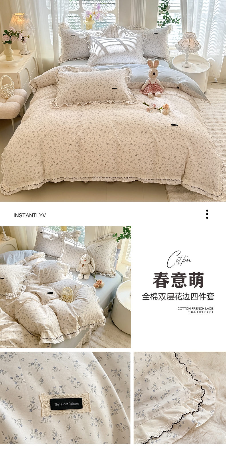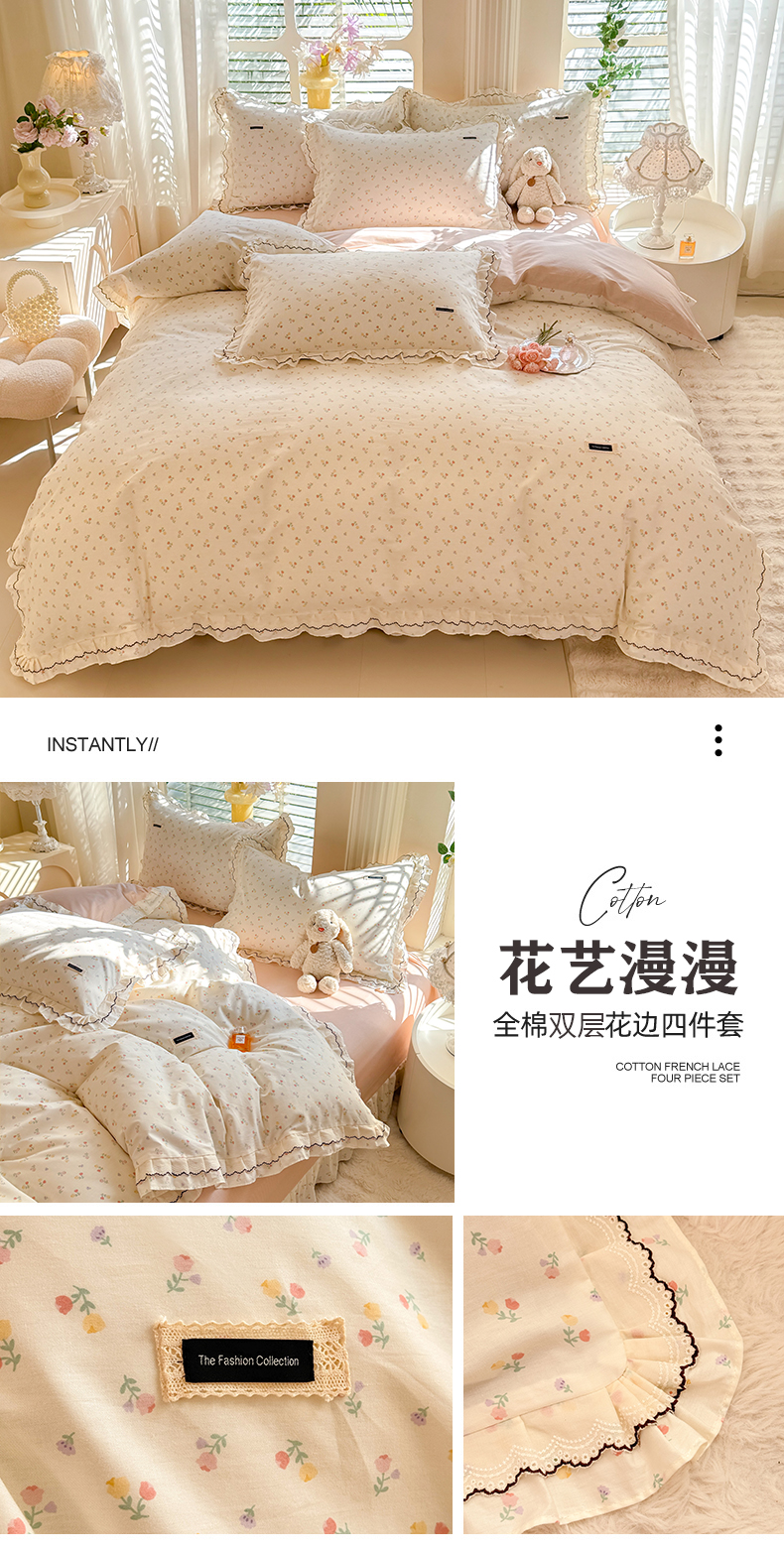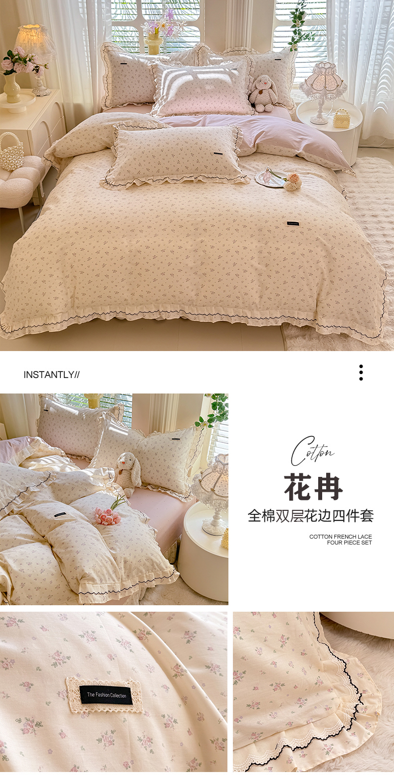 (总)艾唯希家纺 2025新款全棉双层花边四件套纯棉小碎花10个花型-花边系列
